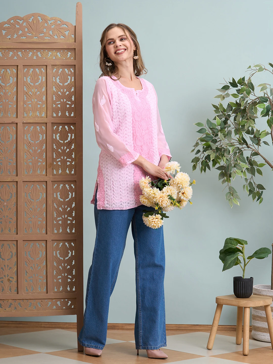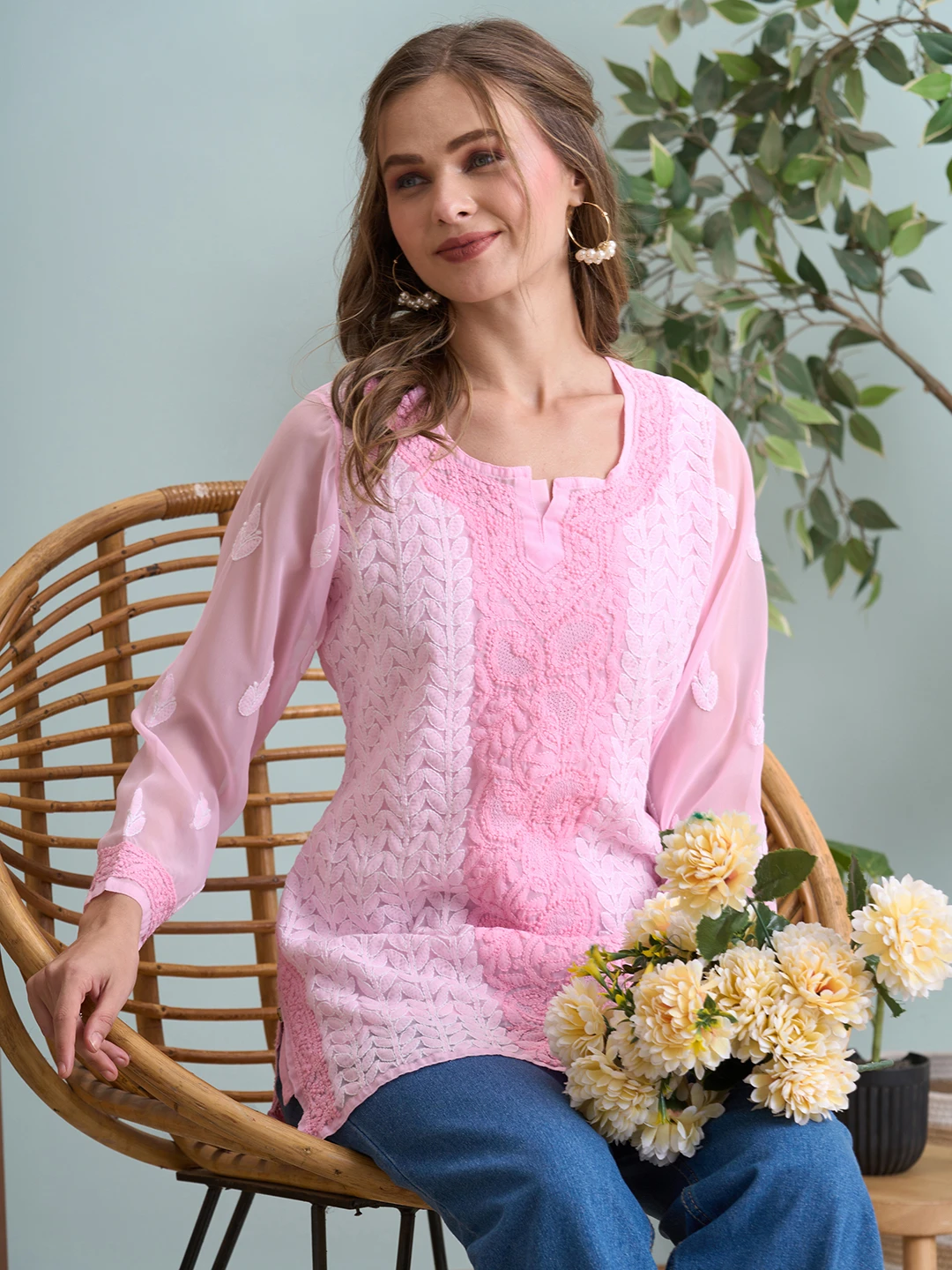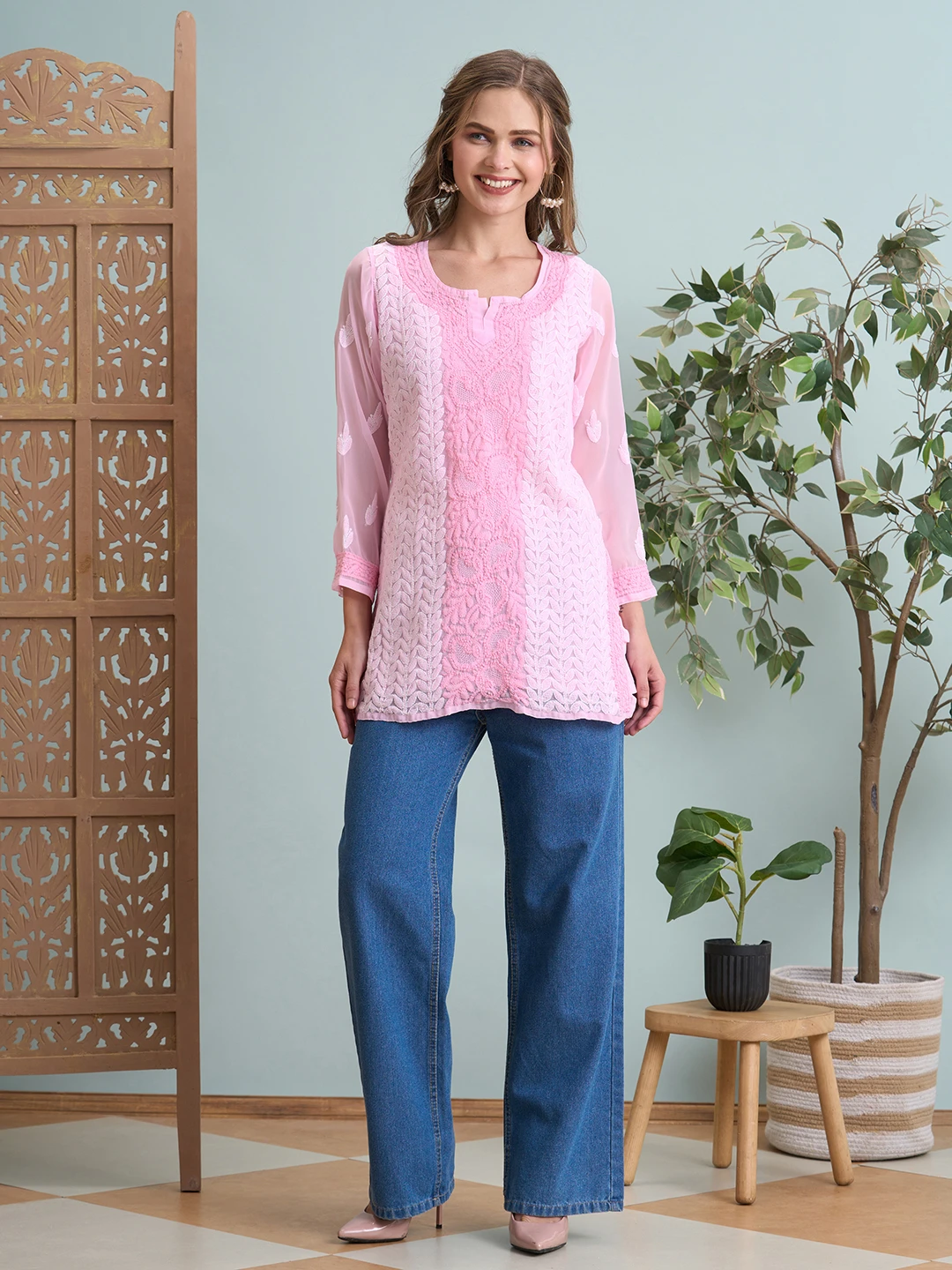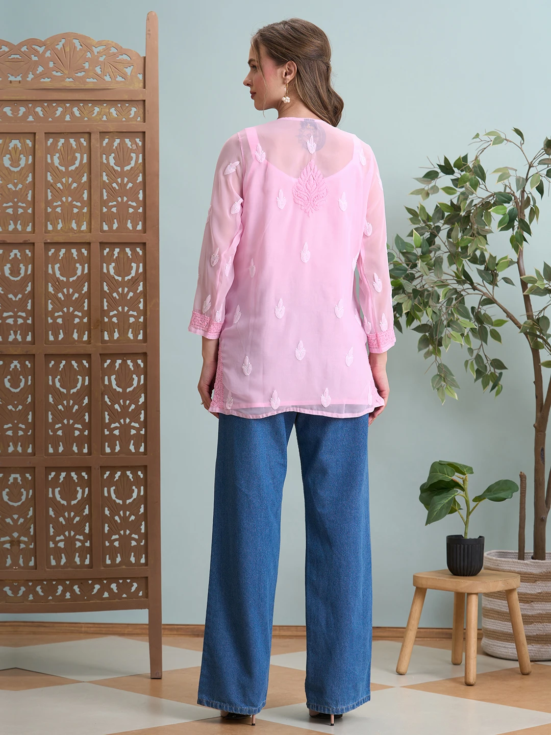 Ada Hand Embroidered Pink Georgette Lucknowi Chikankari Short Kurti A911515