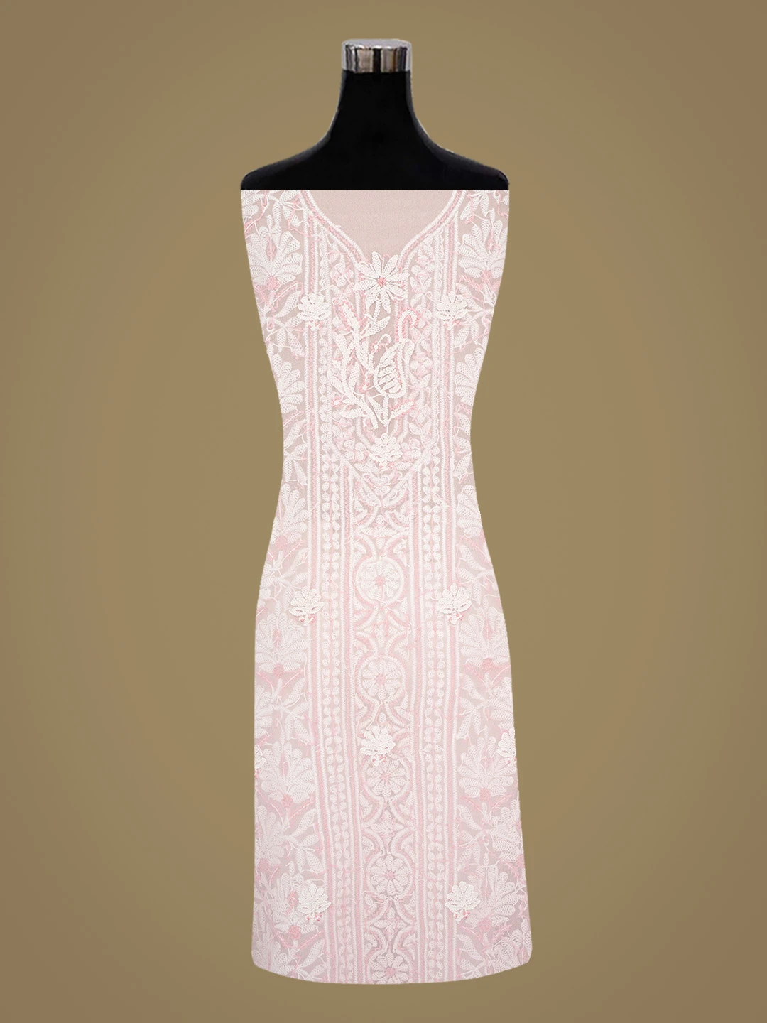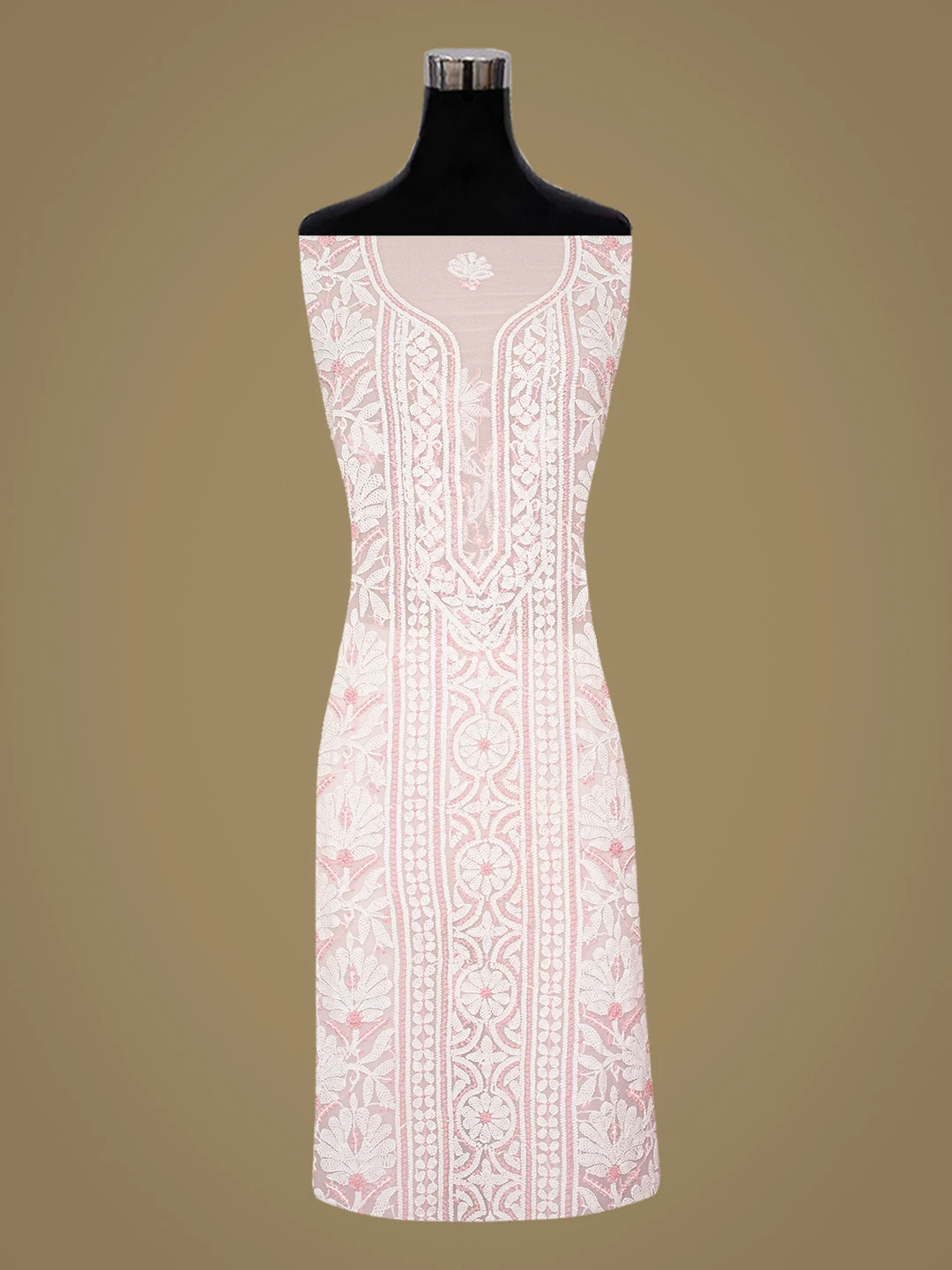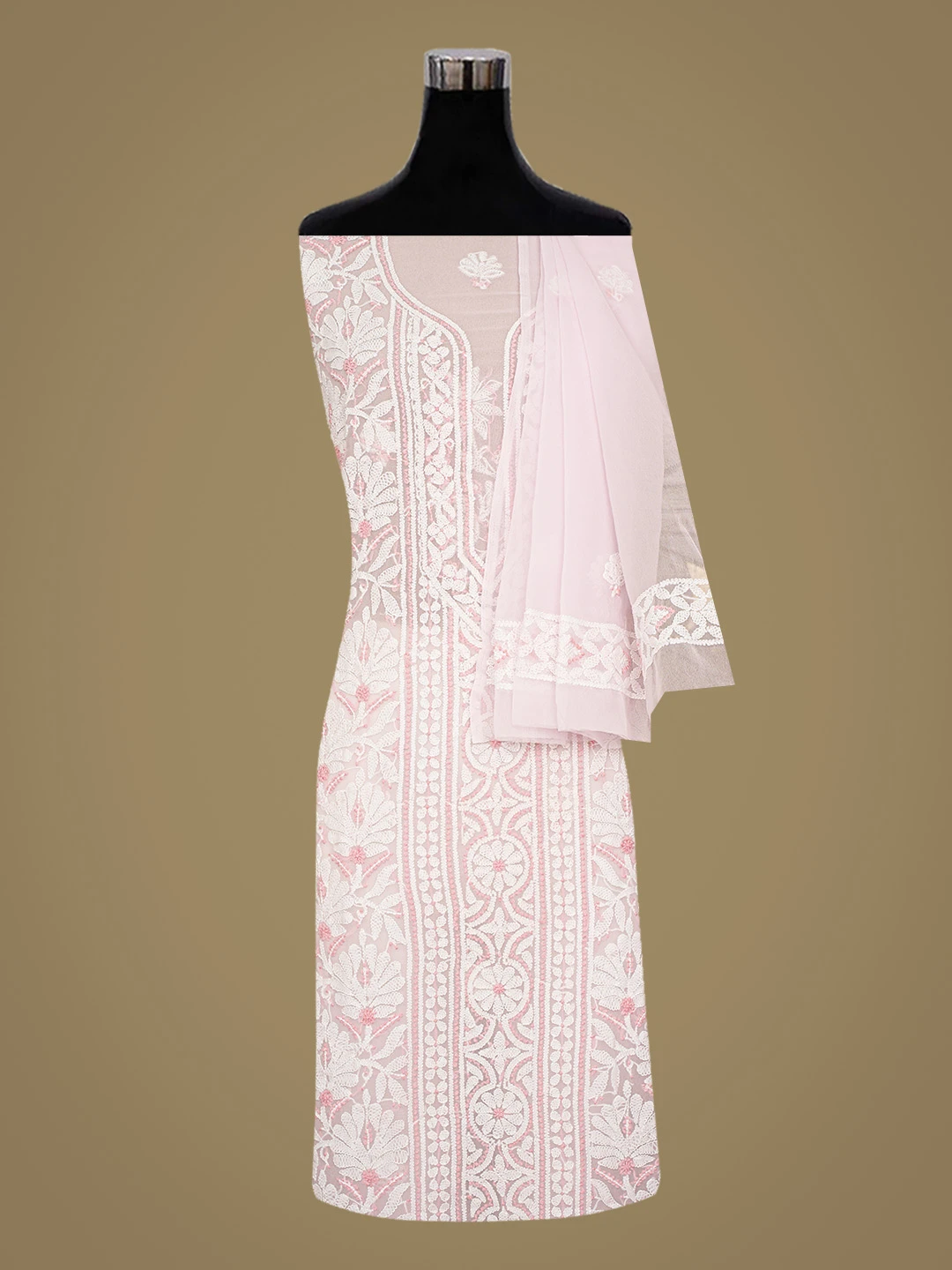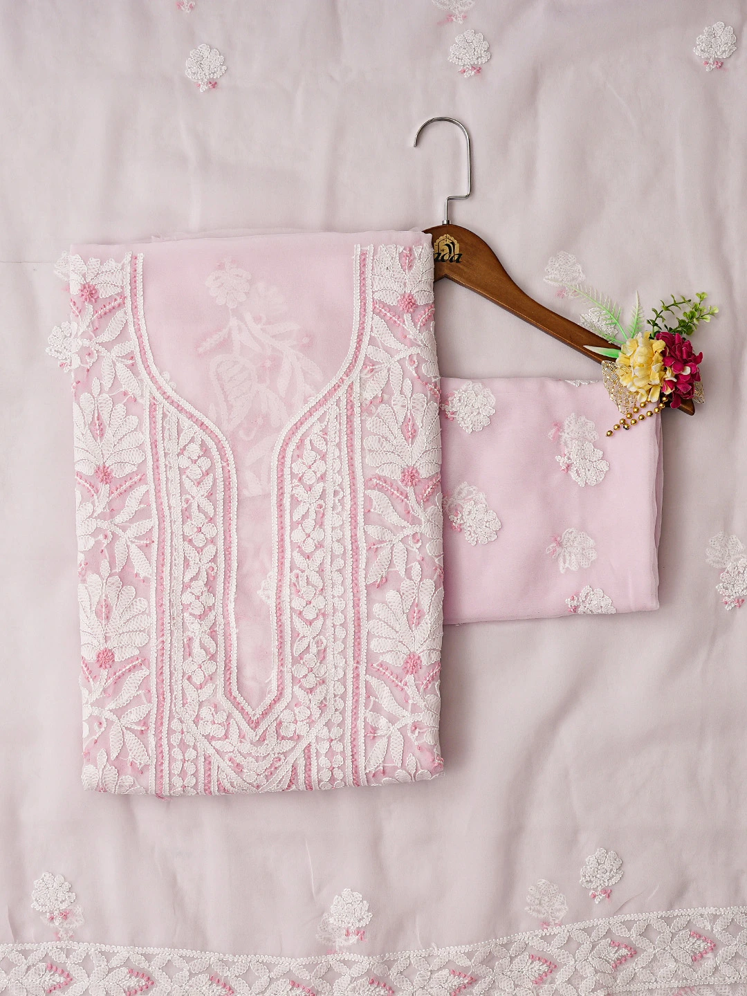 Ada Hand Embroidered Pink Georgette Lucknowi Chikankari Unstitched Suit Piece 01A867582