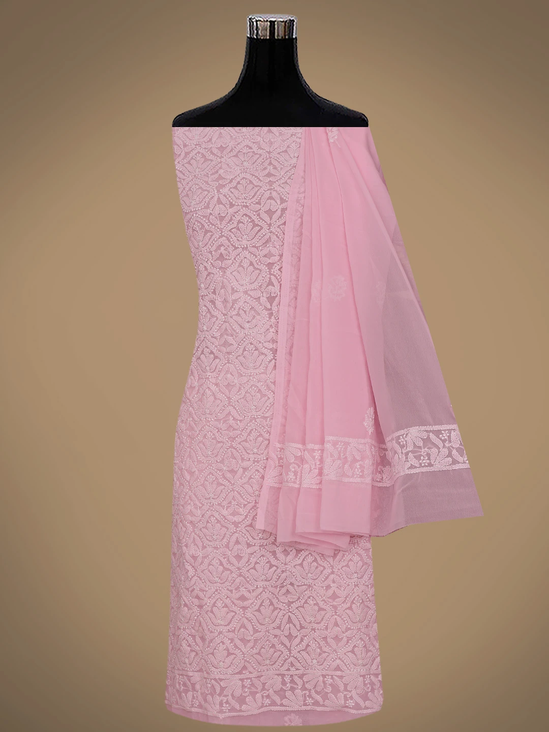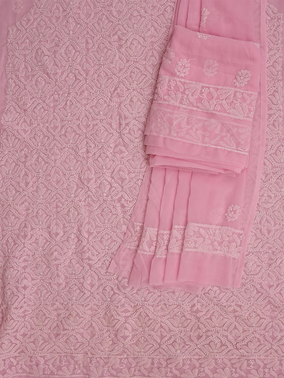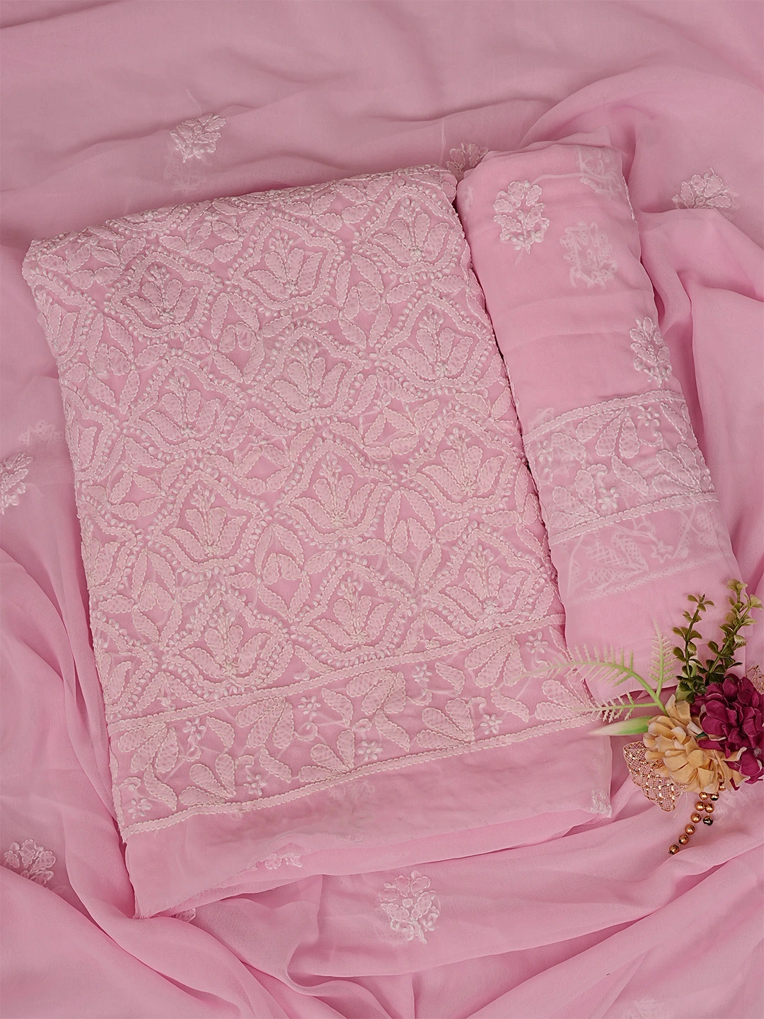 Ada Hand Embroidered Pink Georgette Lucknowi Chikankari Unstitched Suit Piece 01A867784