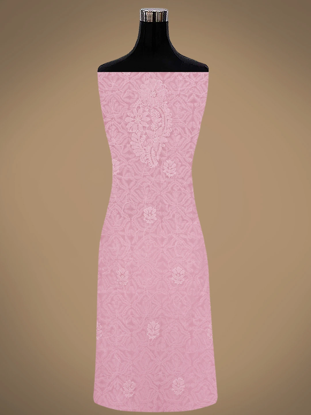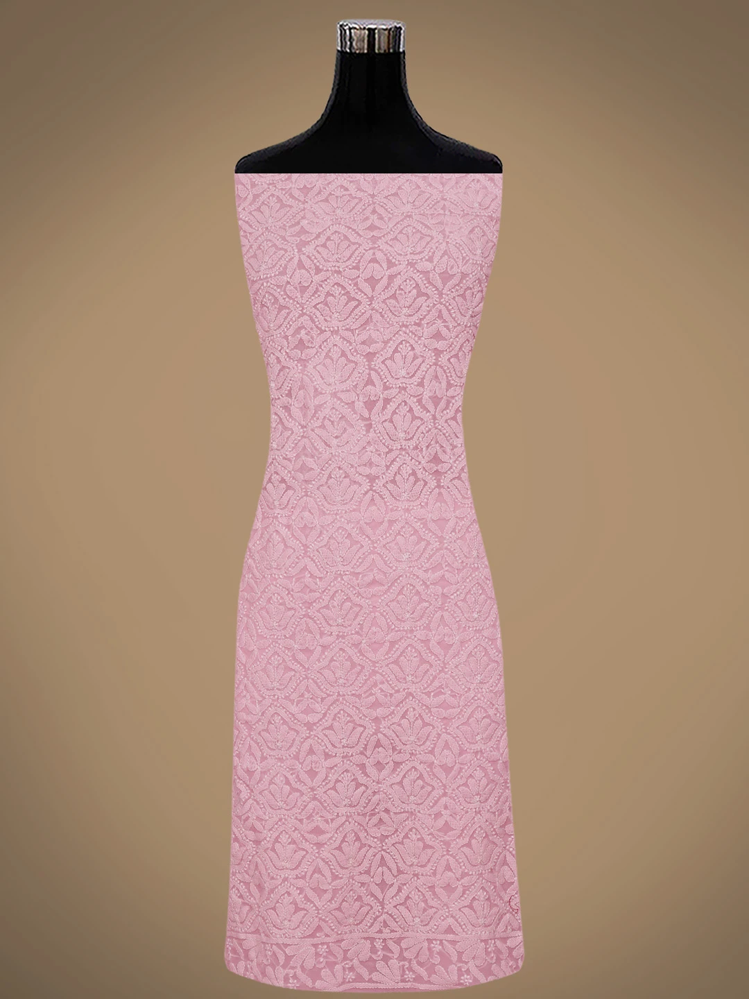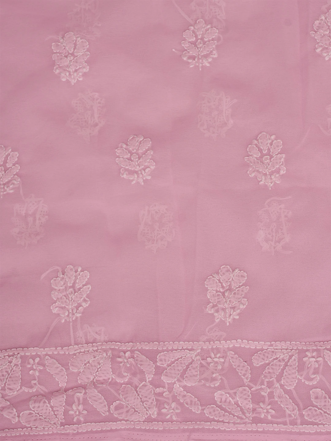 Ada Hand Embroidered Pink Georgette Lucknowi Chikankari Unstitched Suit Piece 01A867784