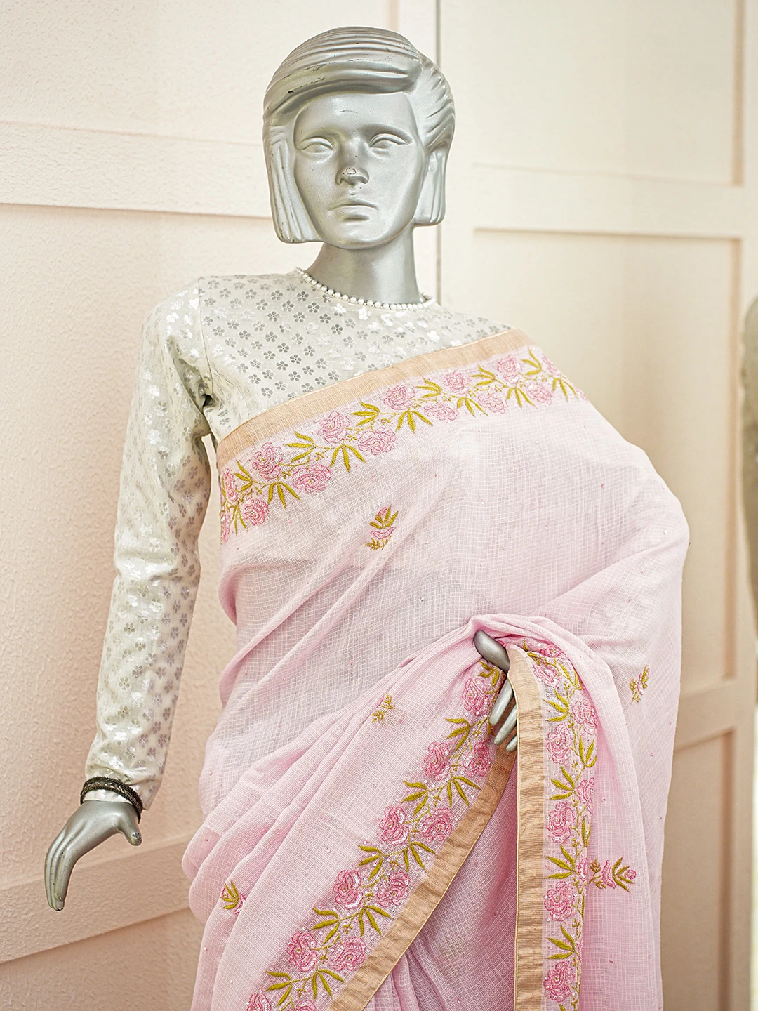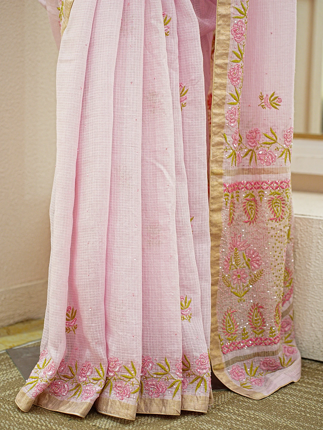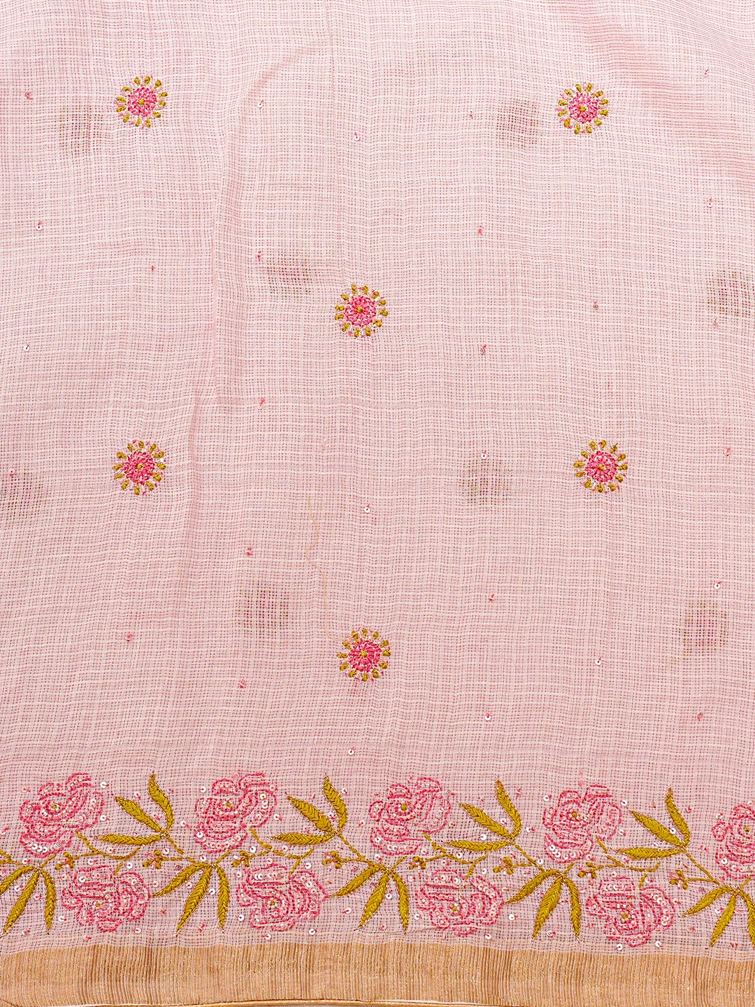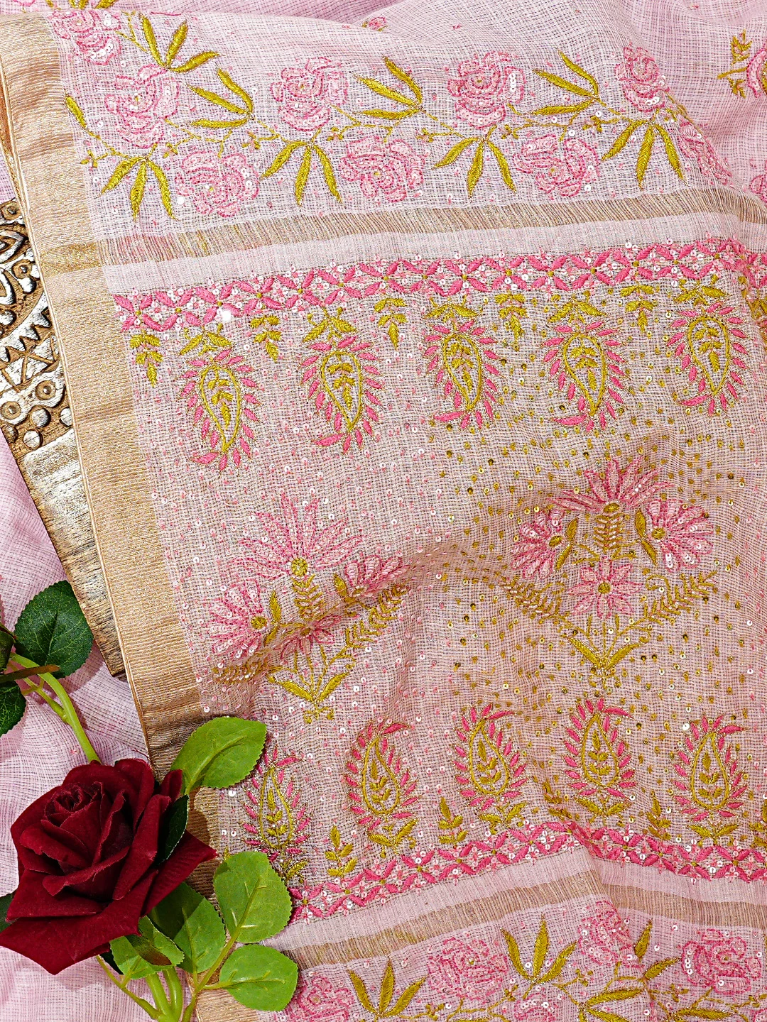 Ada Hand Embroidered Pink Kota Moonga Lucknowi Chikankari Saree With Blouse With Cutdana Work 01A719338