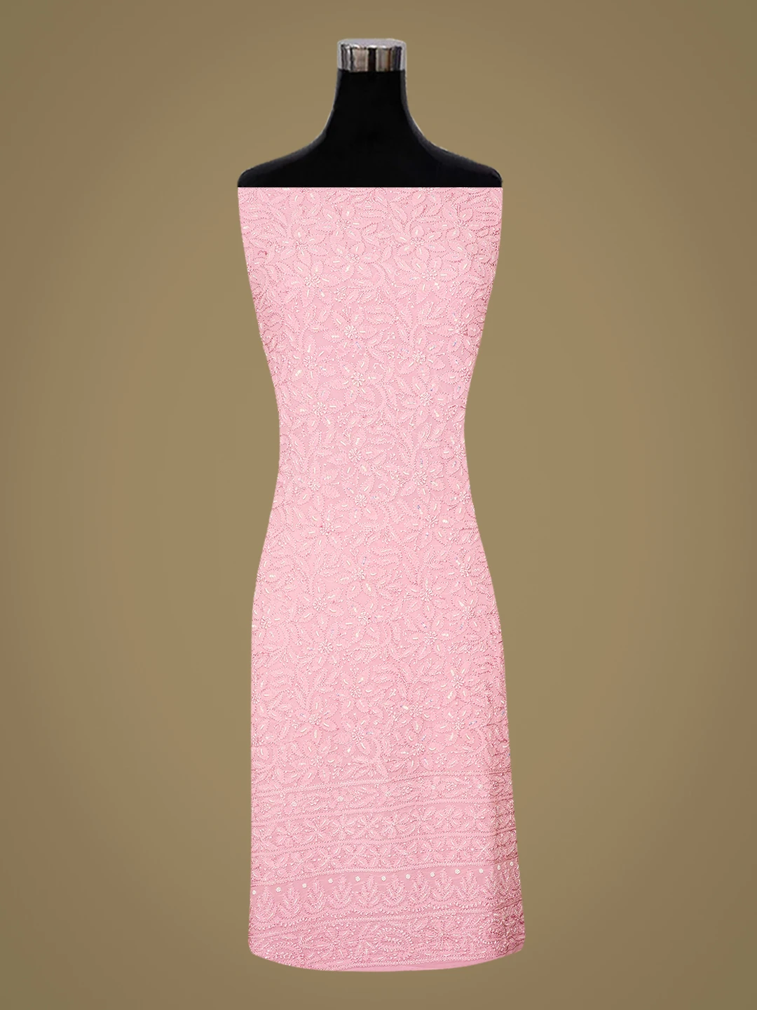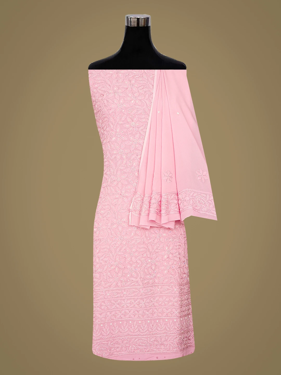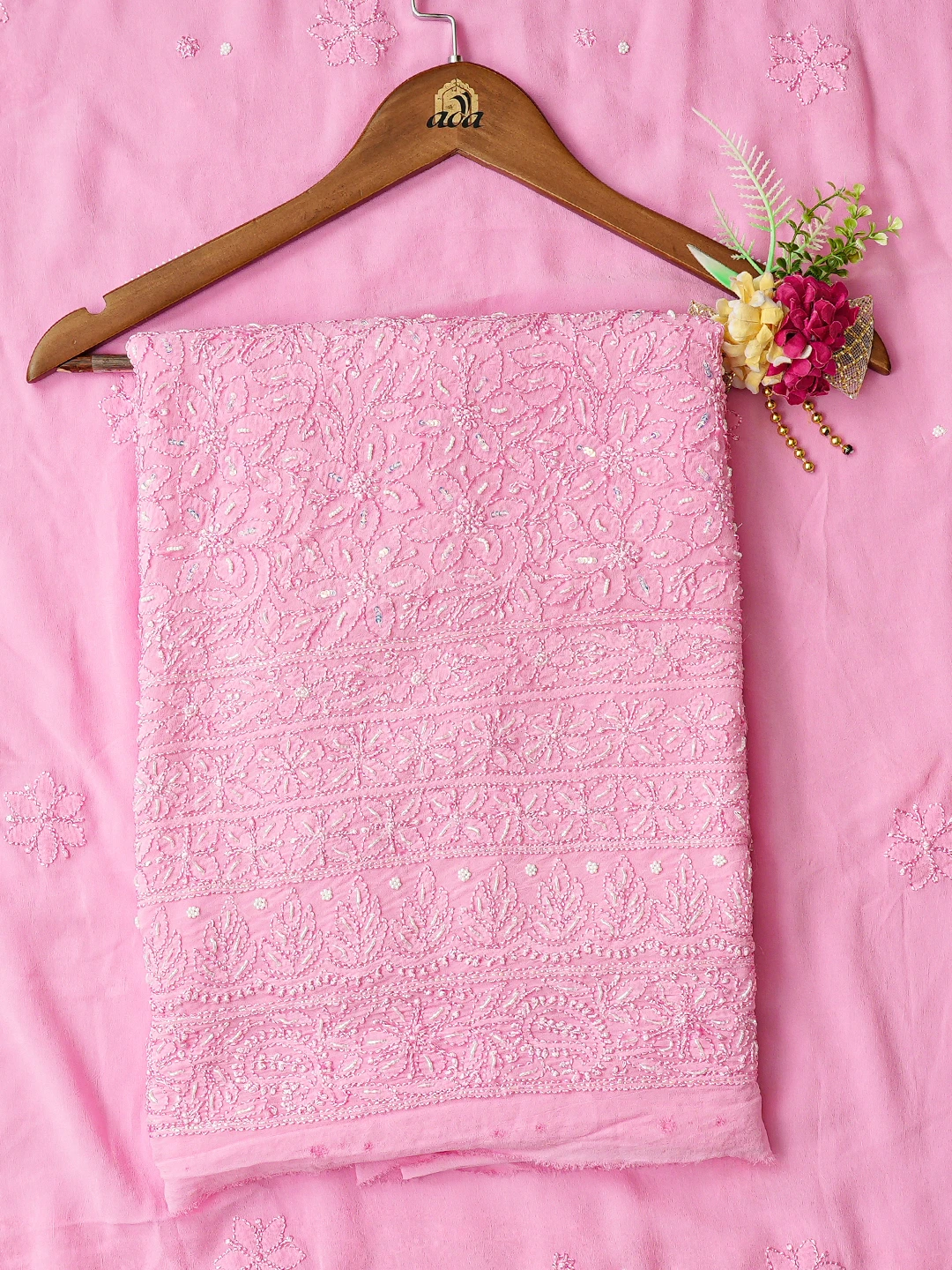 Ada Hand Embroidered Pink Viscose Georgette Lucknowi Chikankari Unstitched Kurta Dupatta Set With Cutdana Work 01A724460