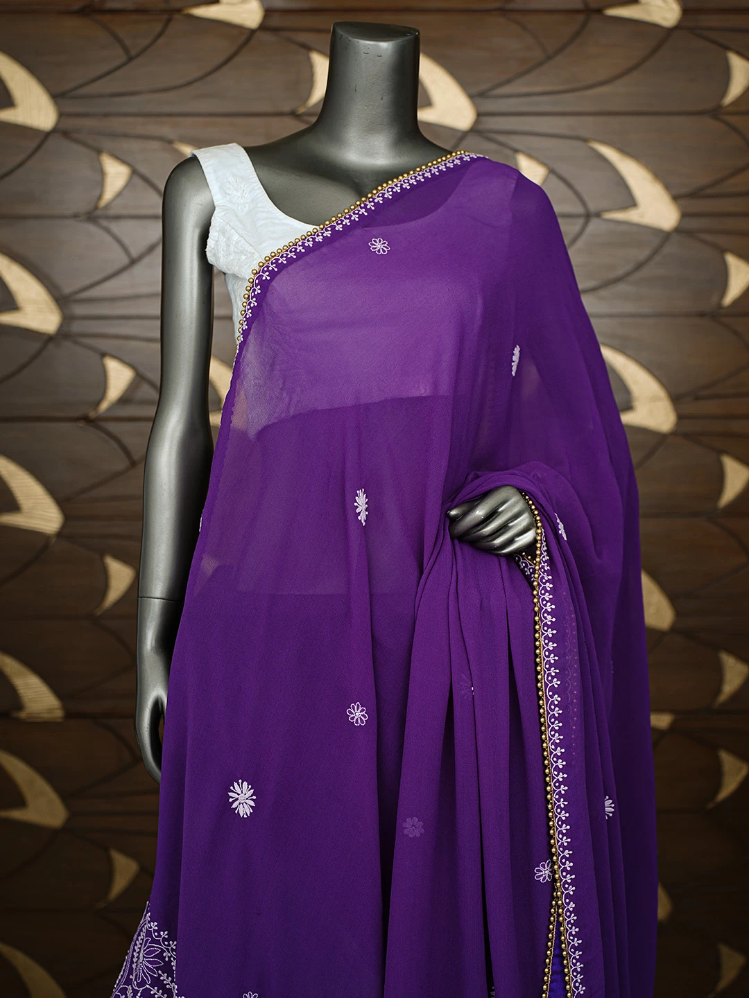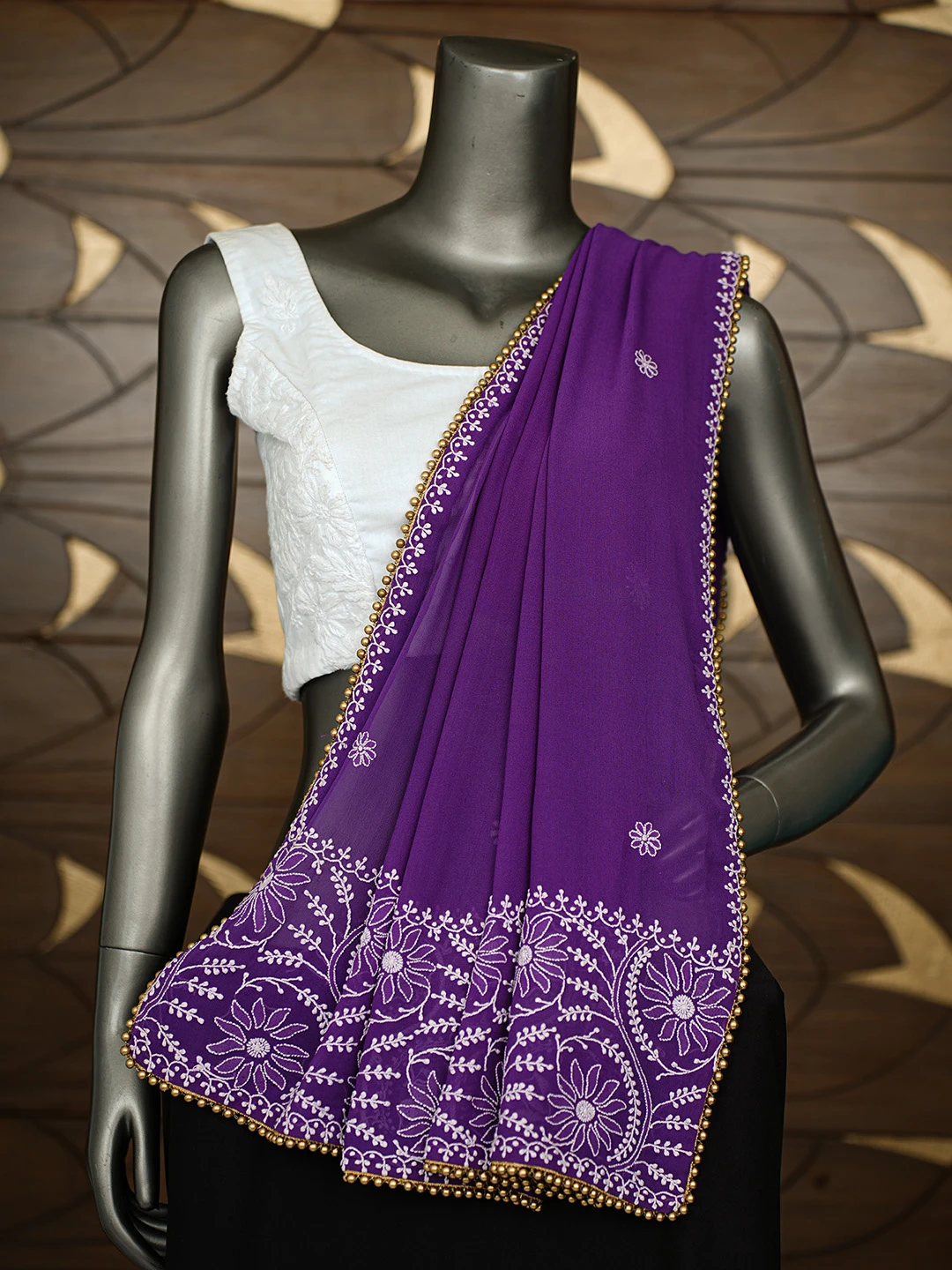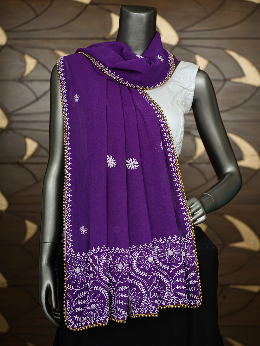 Ada Hand Embroidered Purple Pure Georgette Lucknowi Chikankari Dupatta 01A825149