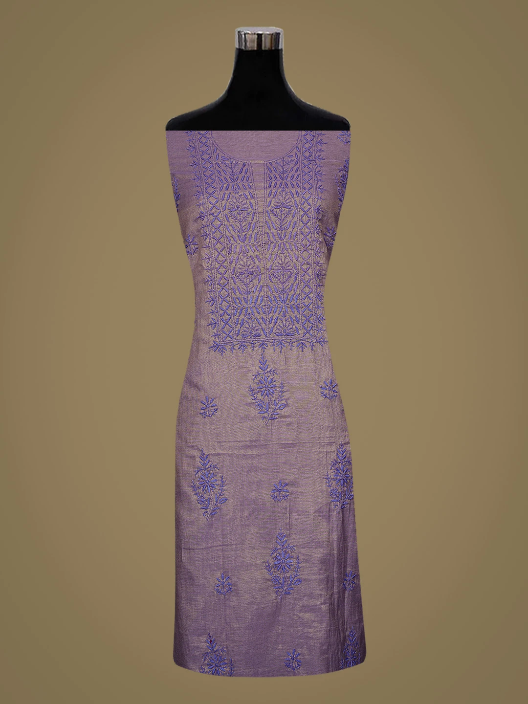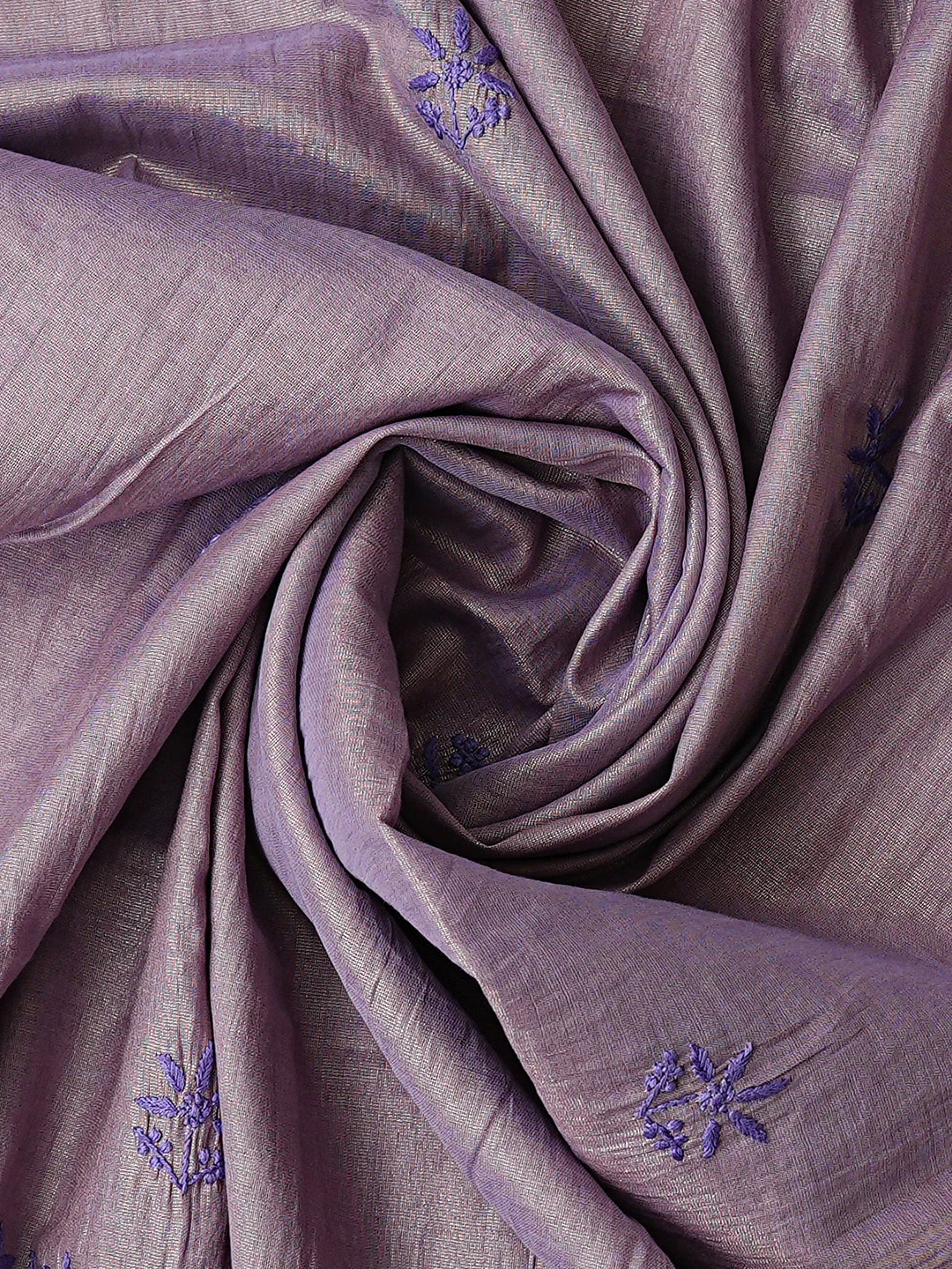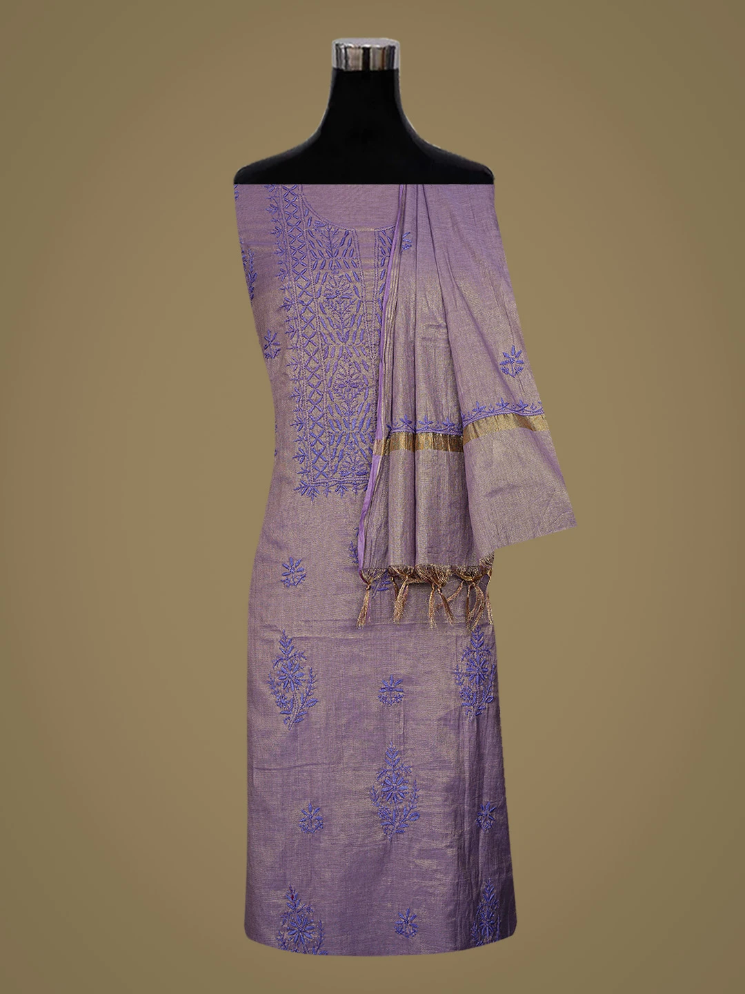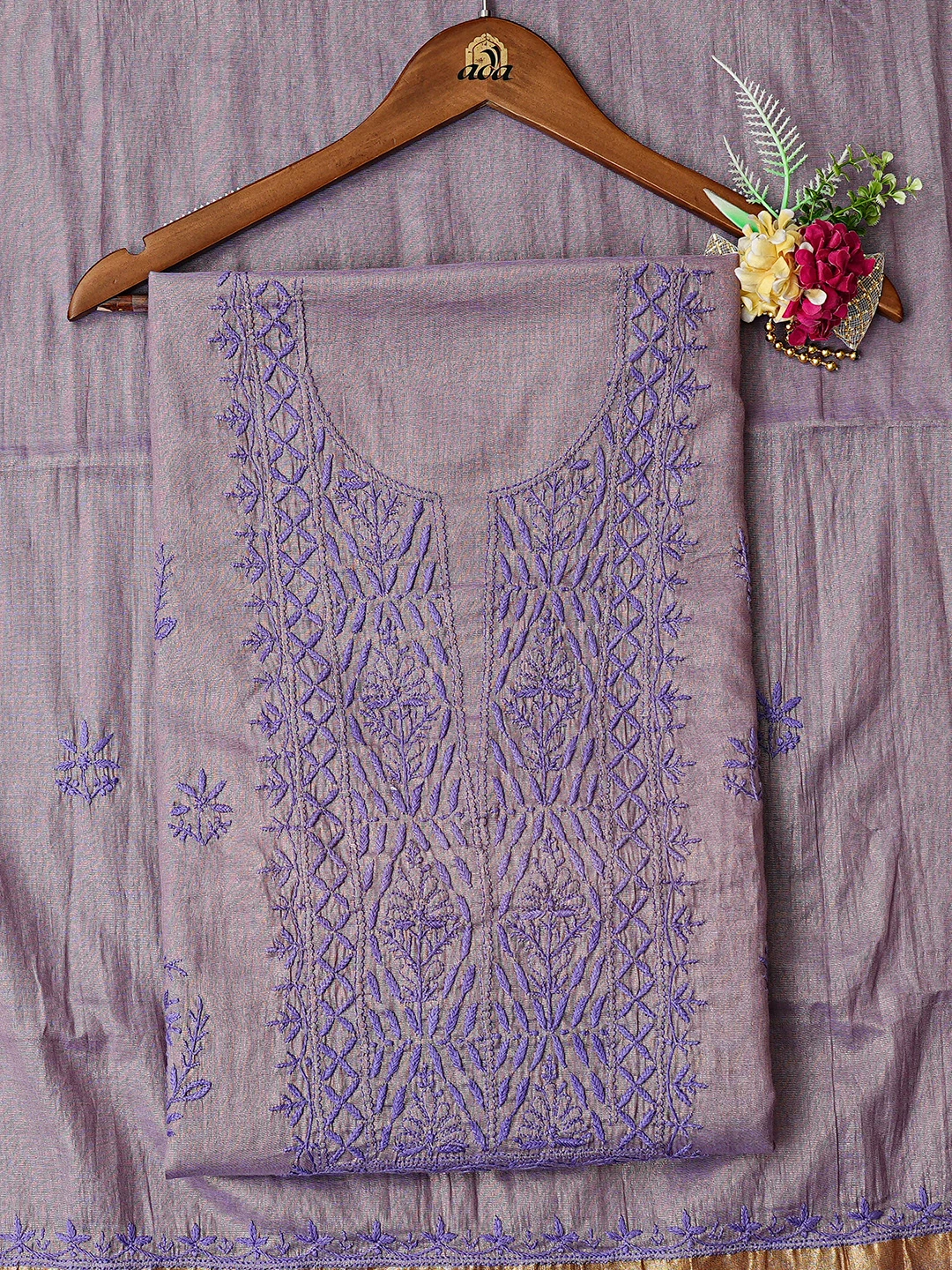 Ada Hand Embroidered Purple Tissue Lucknowi Chikankari Unstitched Kurta Dupatta Set 01A779565