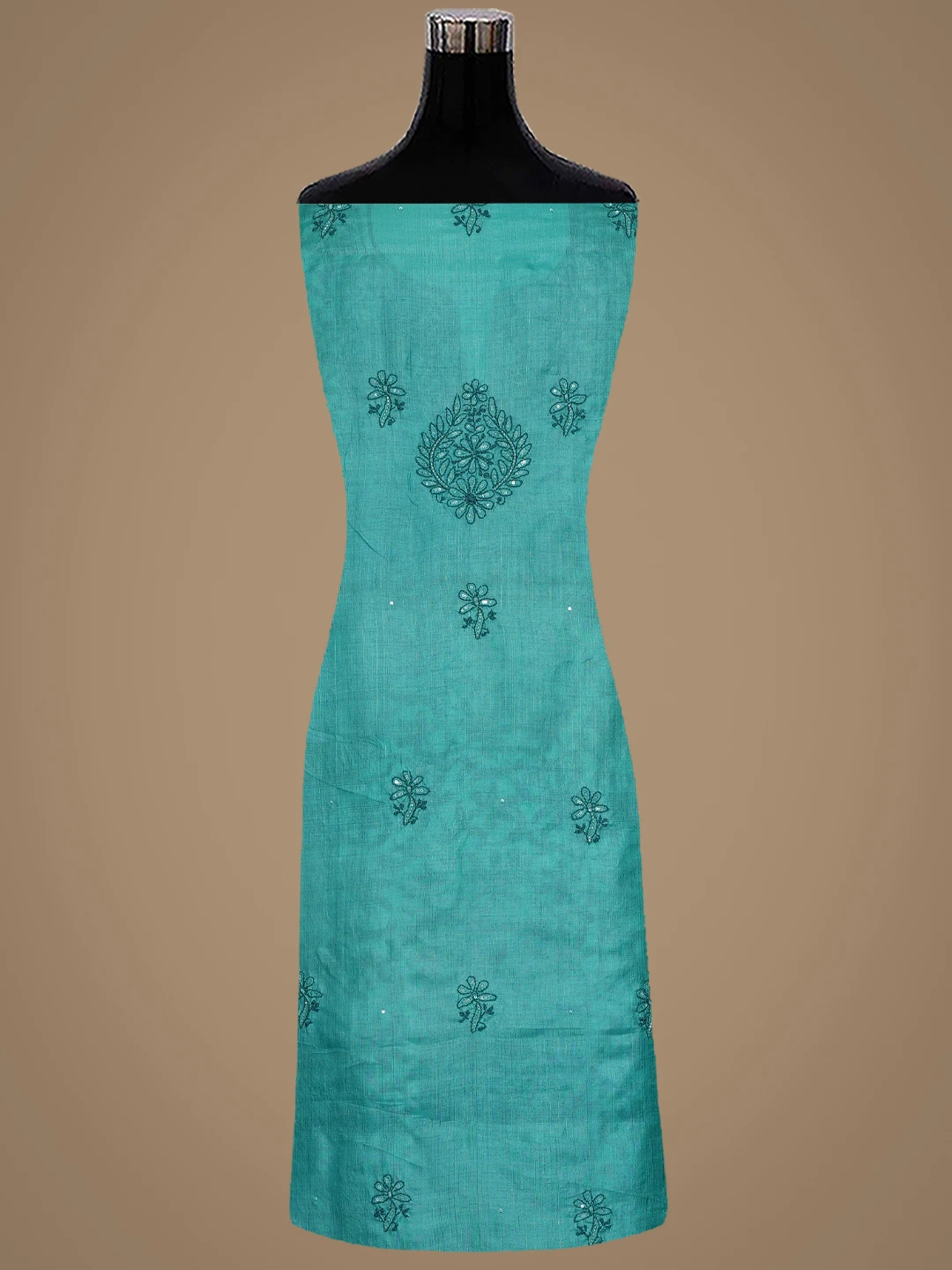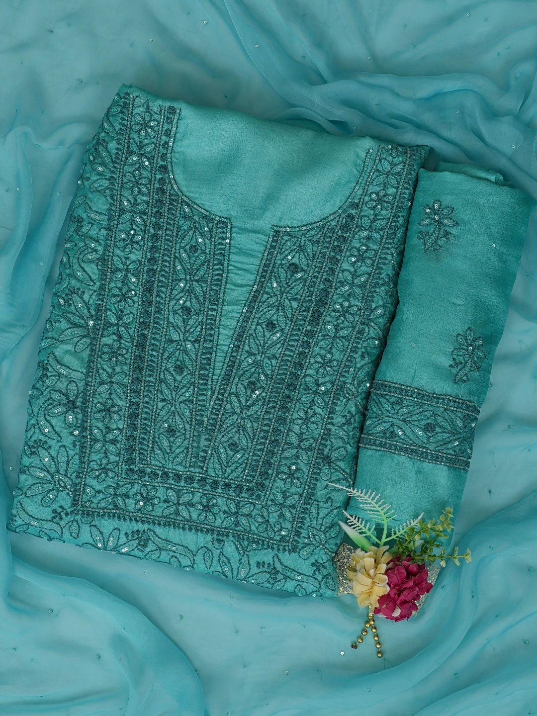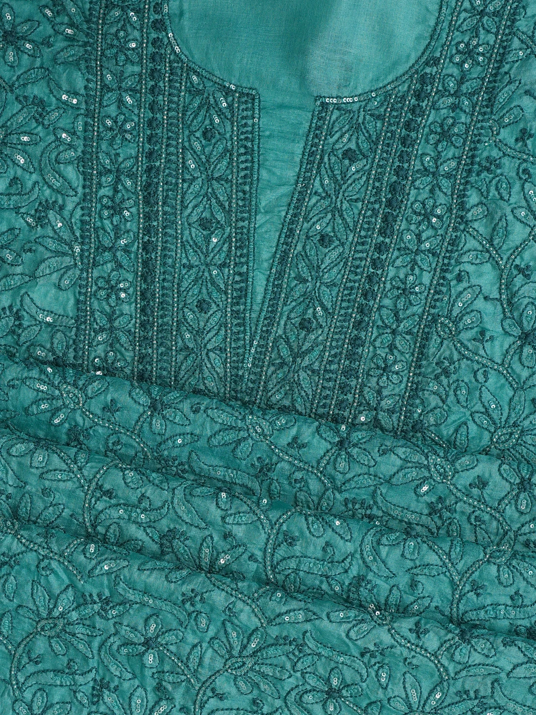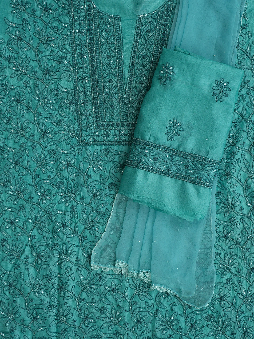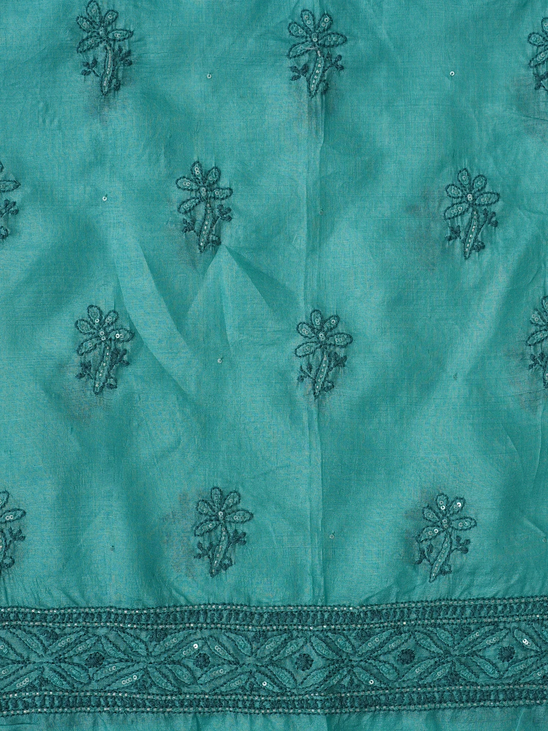 Ada Hand Embroidered Rama Green Tussar Silk Lucknowi Chikankari Unstitched Suit Piece With Cutdana Work 01A763492
