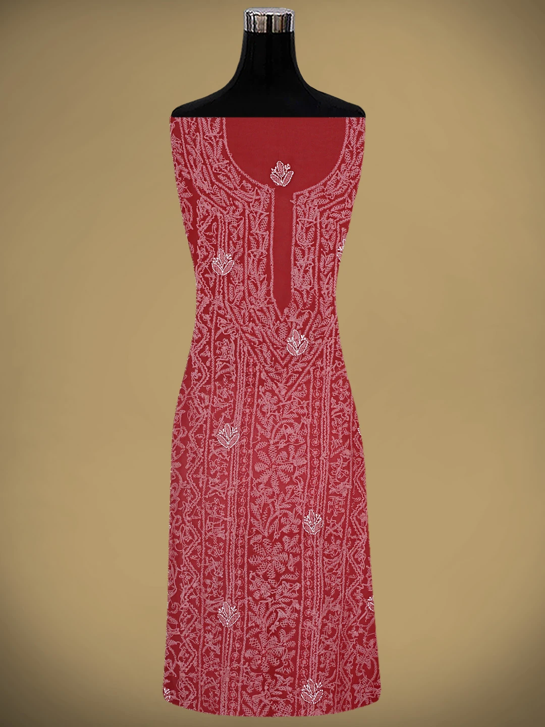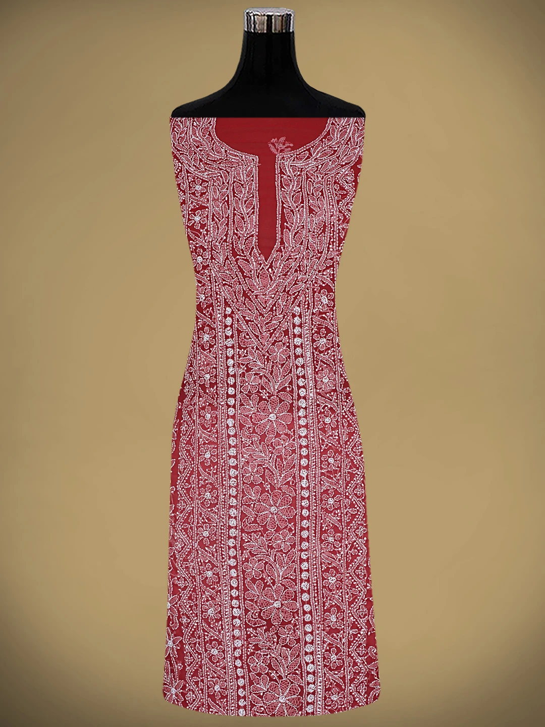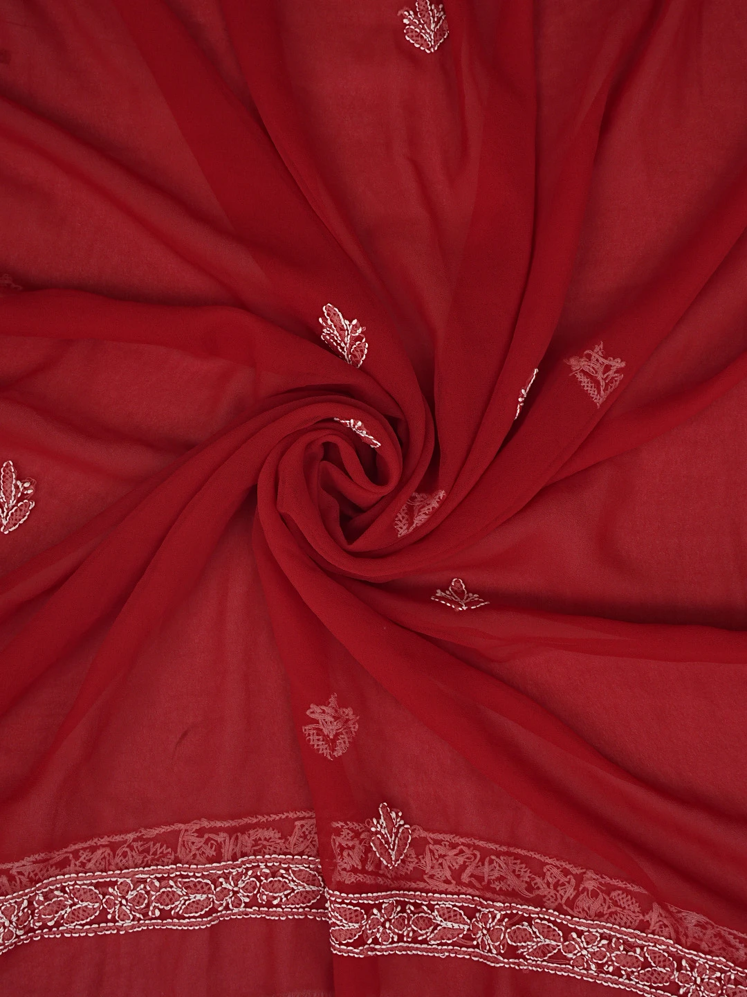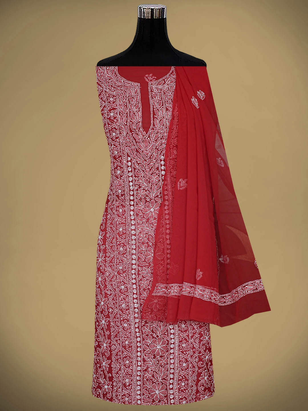 Ada Hand Embroidered Red Georgette Lucknowi Chikankari Unstitched Suit Piece 01A873546