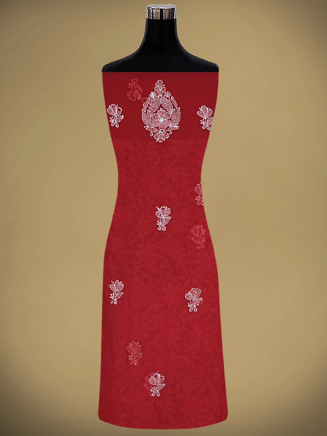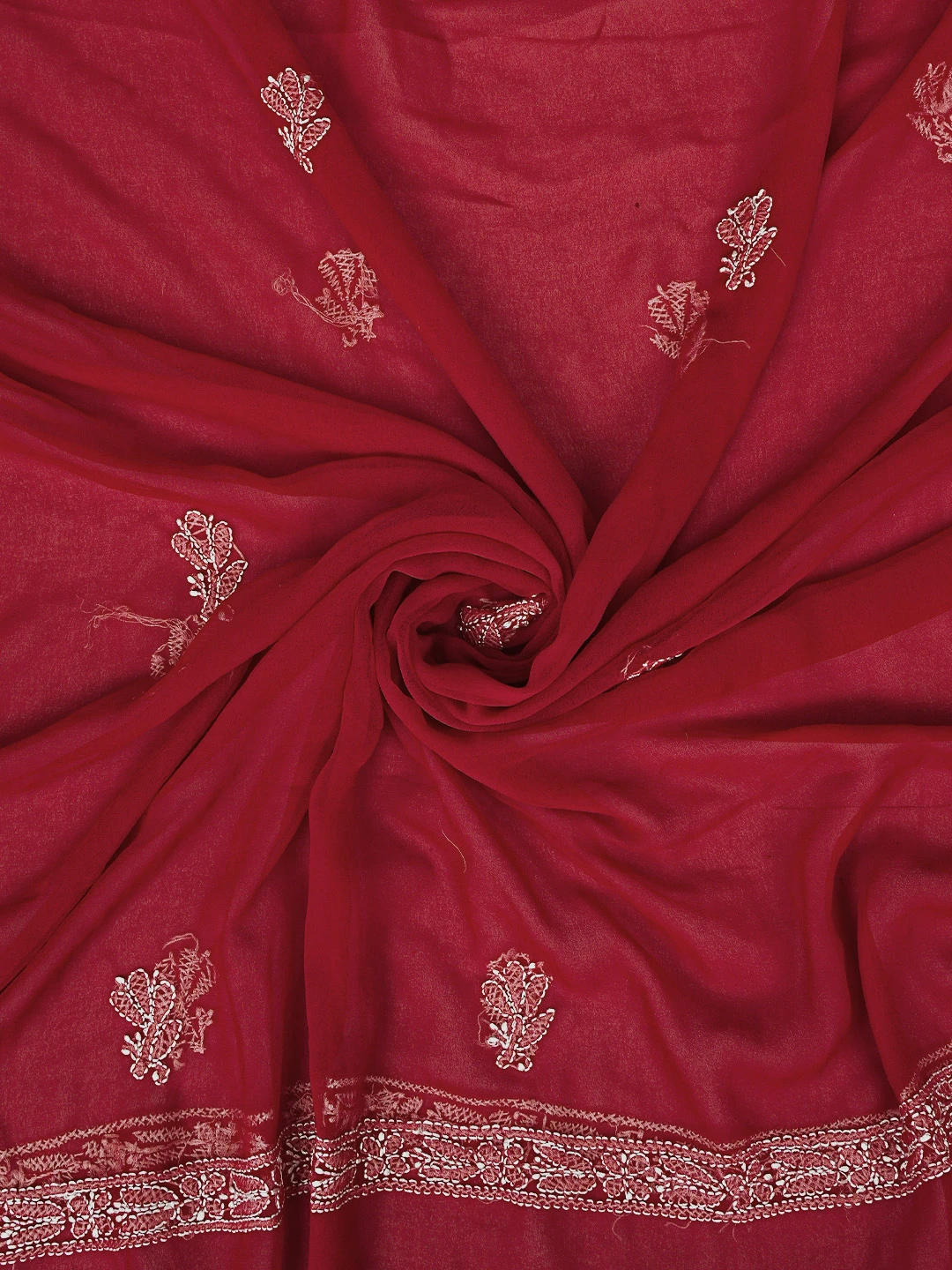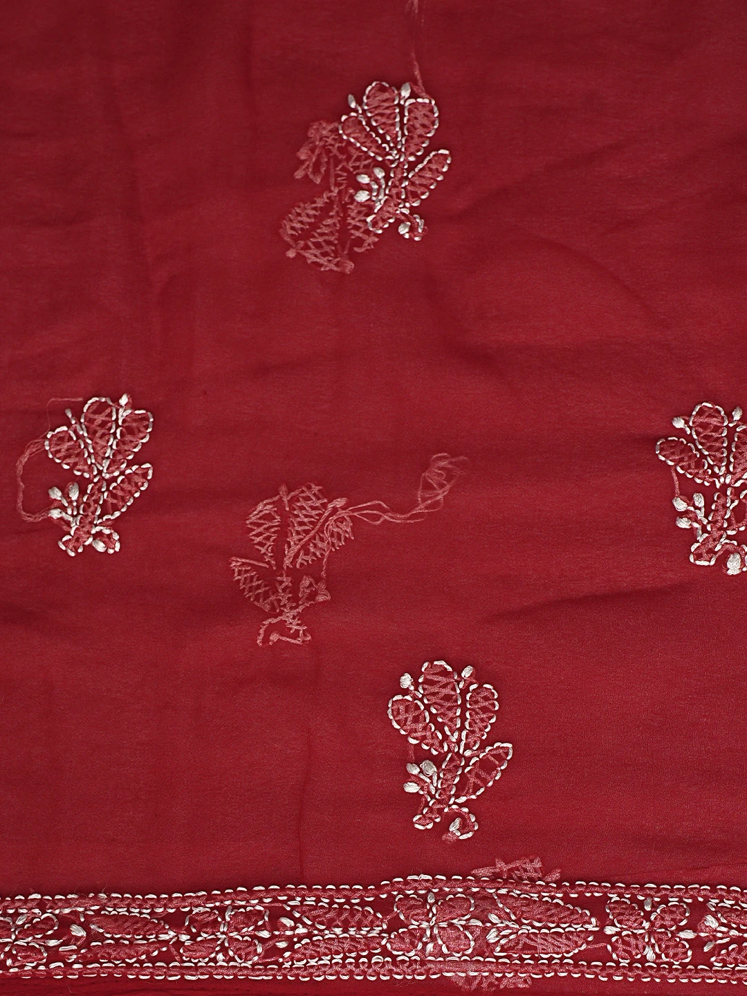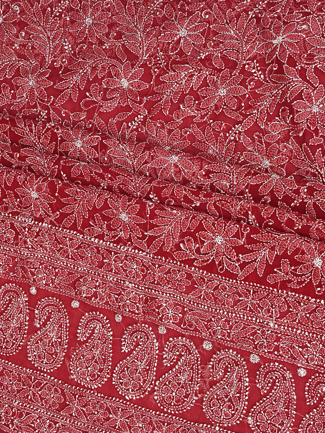 Ada Hand Embroidered Red Georgette Lucknowi Chikankari Unstitched Suit Piece 01A878888