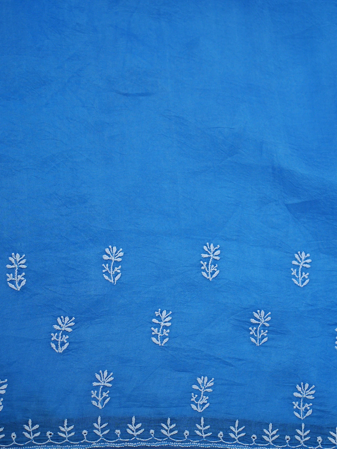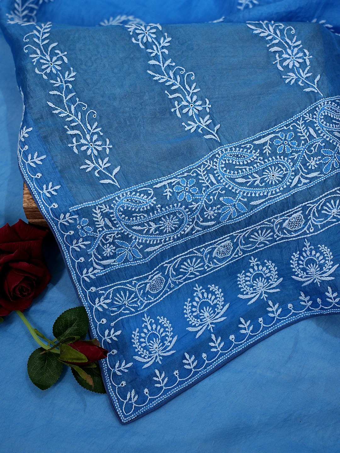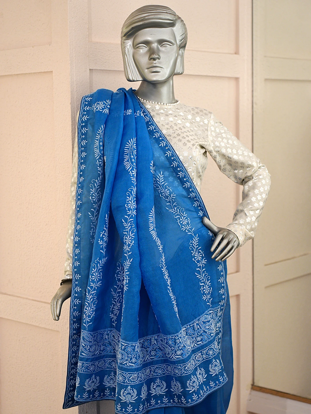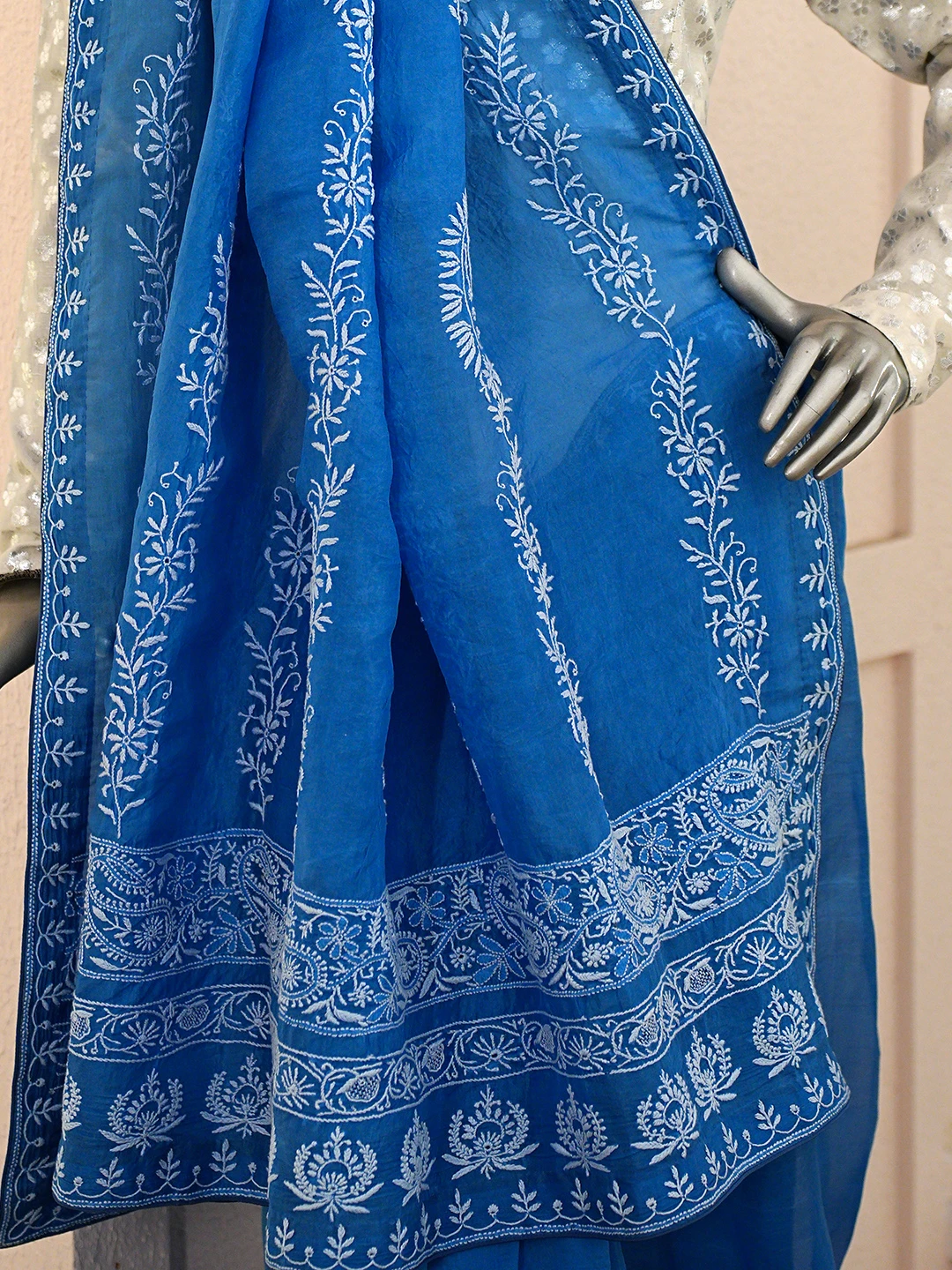 Ada Hand Embroidered Royal Blue Organza Lucknowi Chikankari Saree With Blouse 01A808023