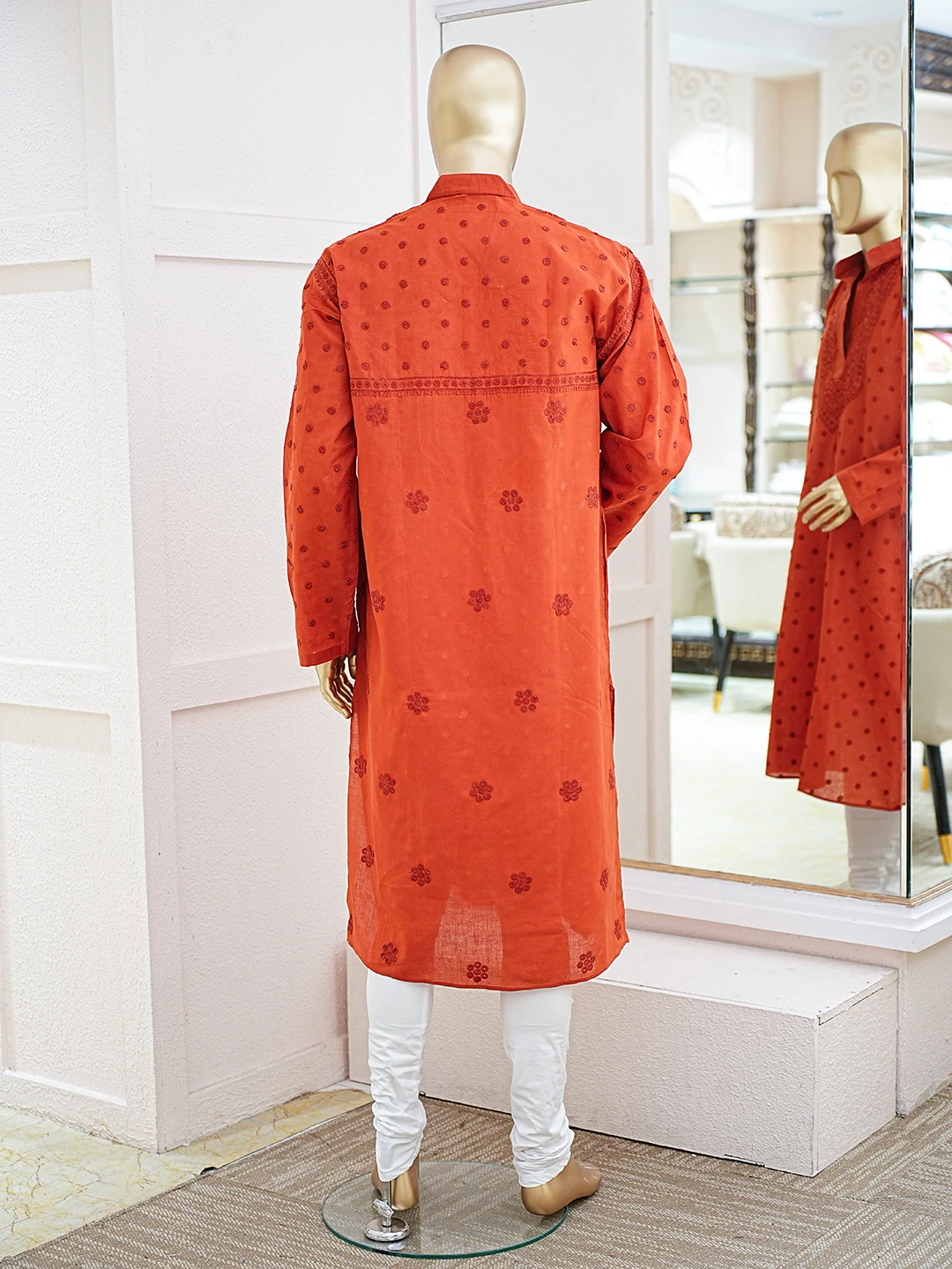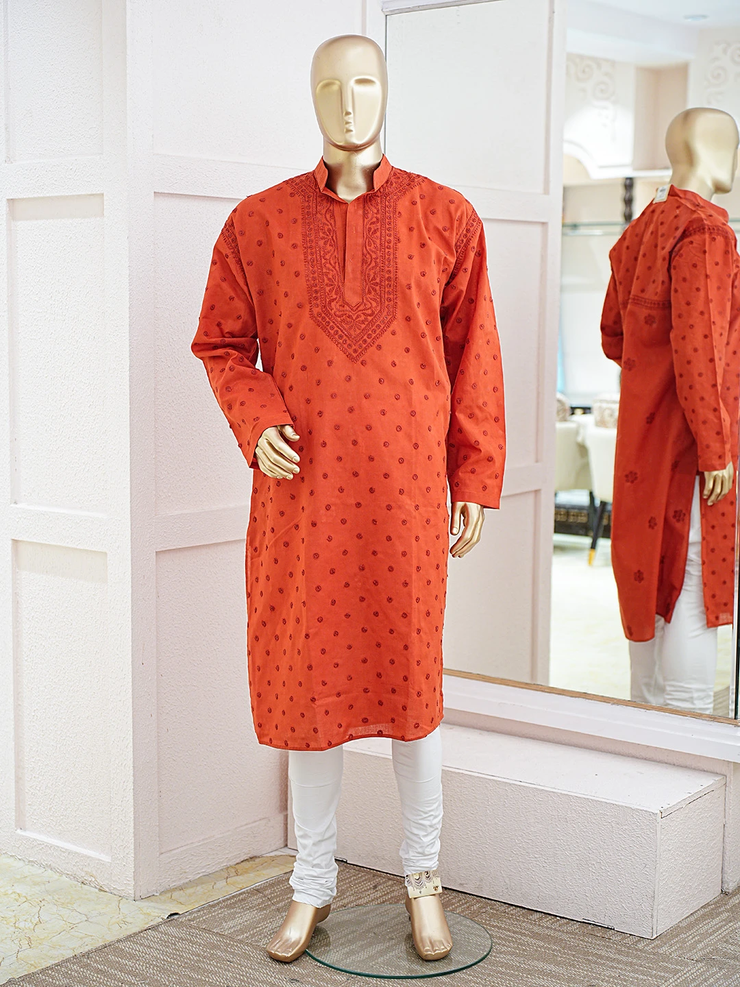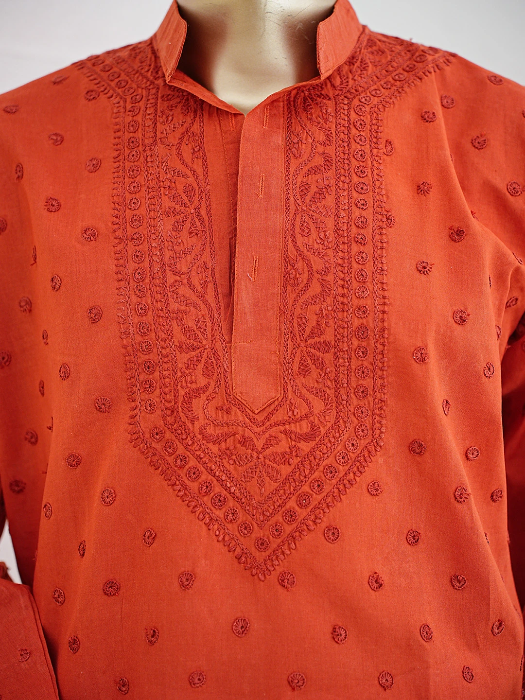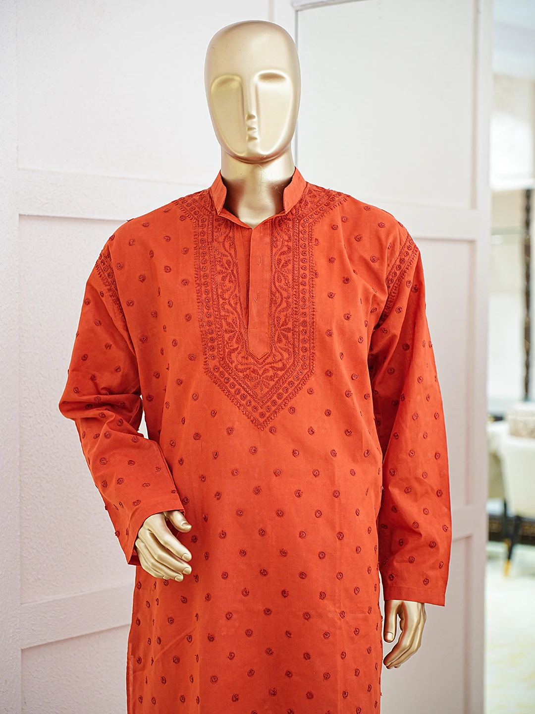 Ada Hand Embroidered Rust Cotton Lucknowi Chikankari Men's Kurta 01A811987
