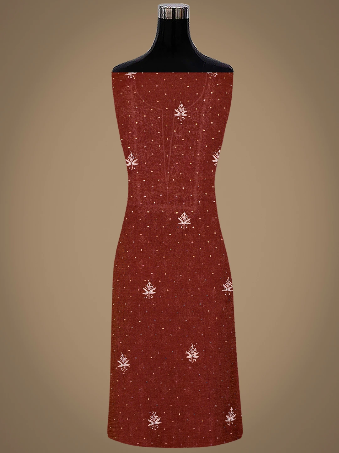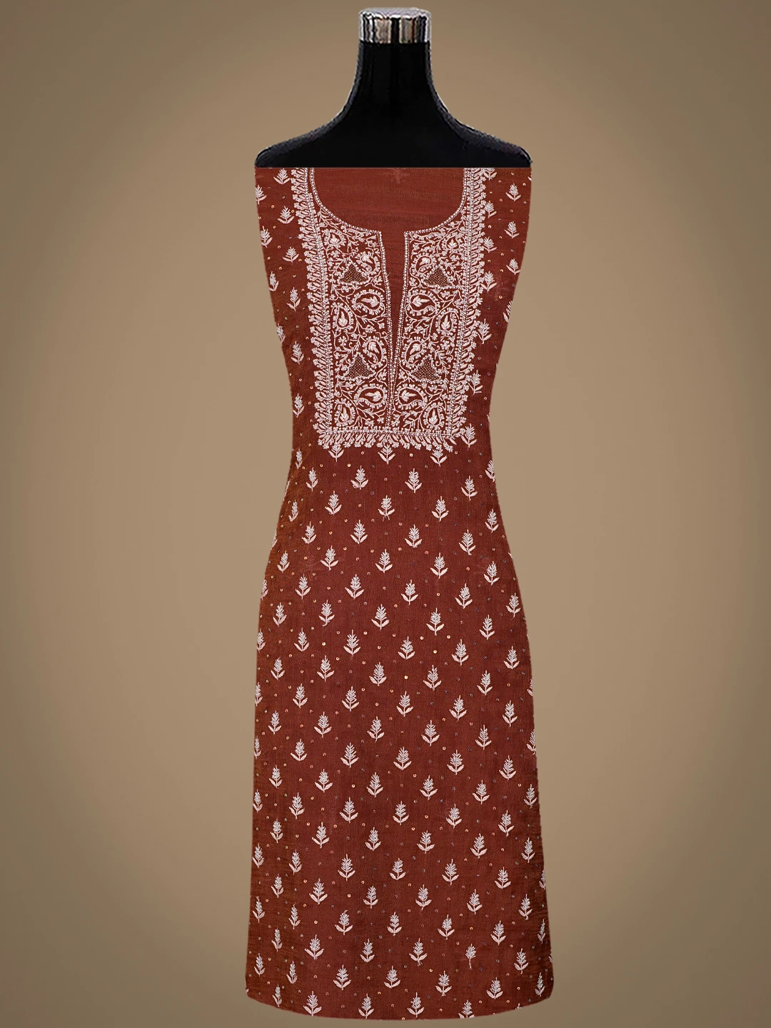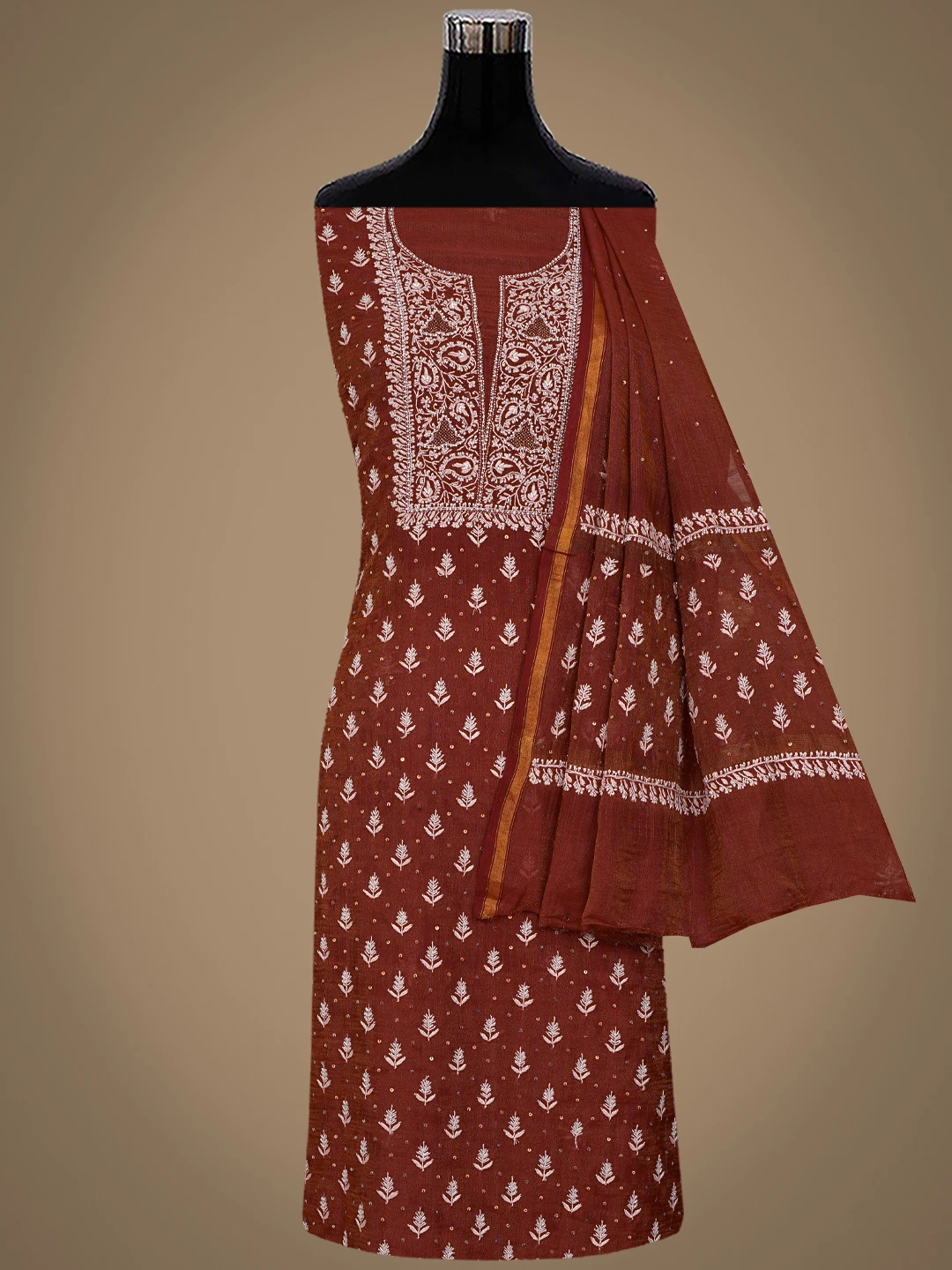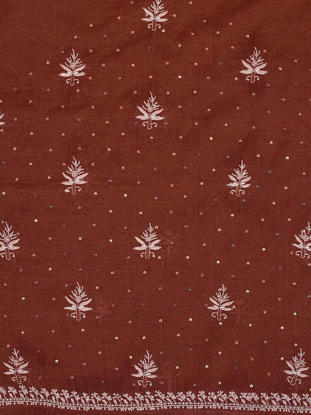 Ada Hand Embroidered Rust Tissue Lucknowi Chikankari Unstitched Kurta Dupatta Set With Cutdana Work 01A662258