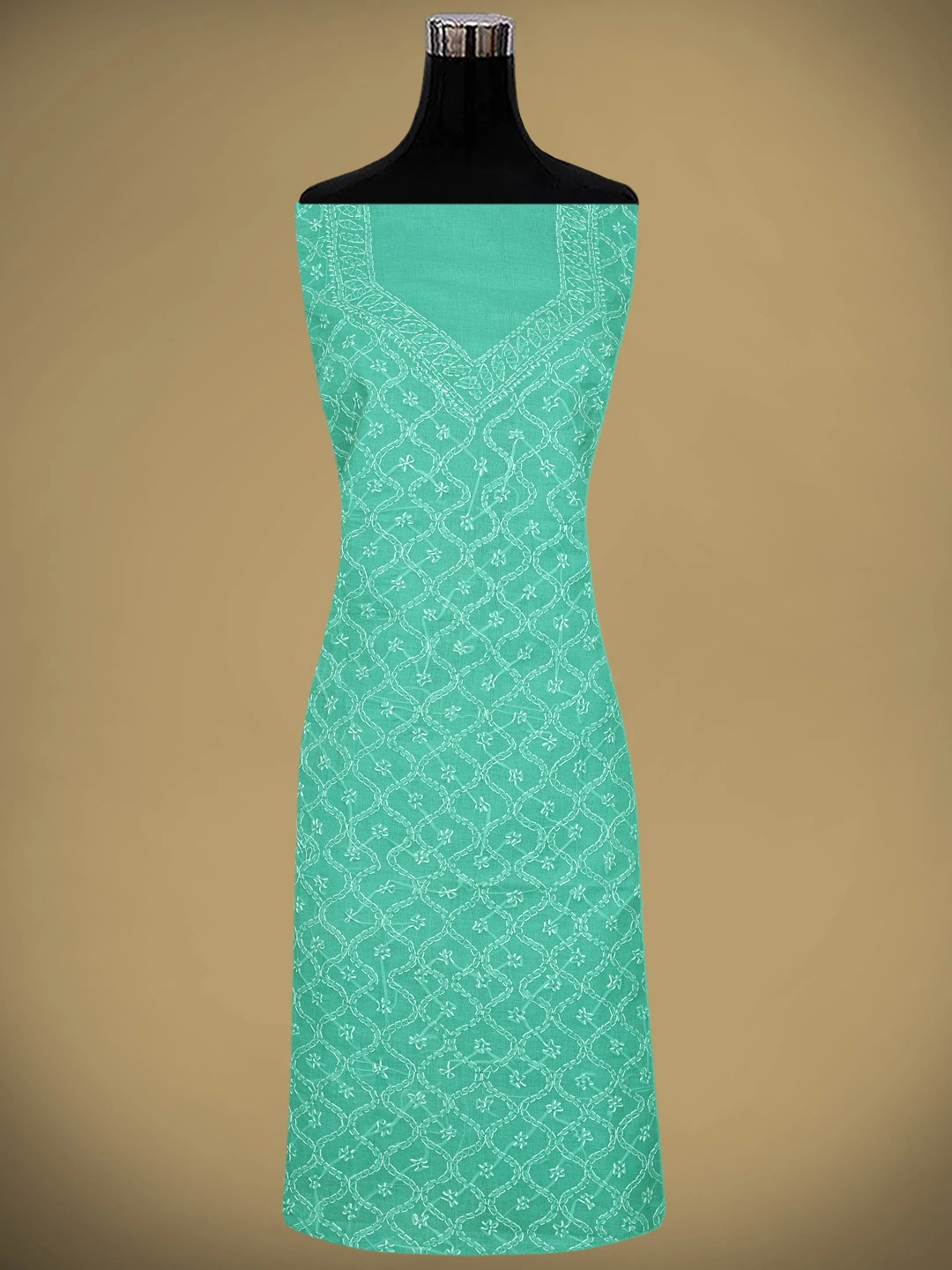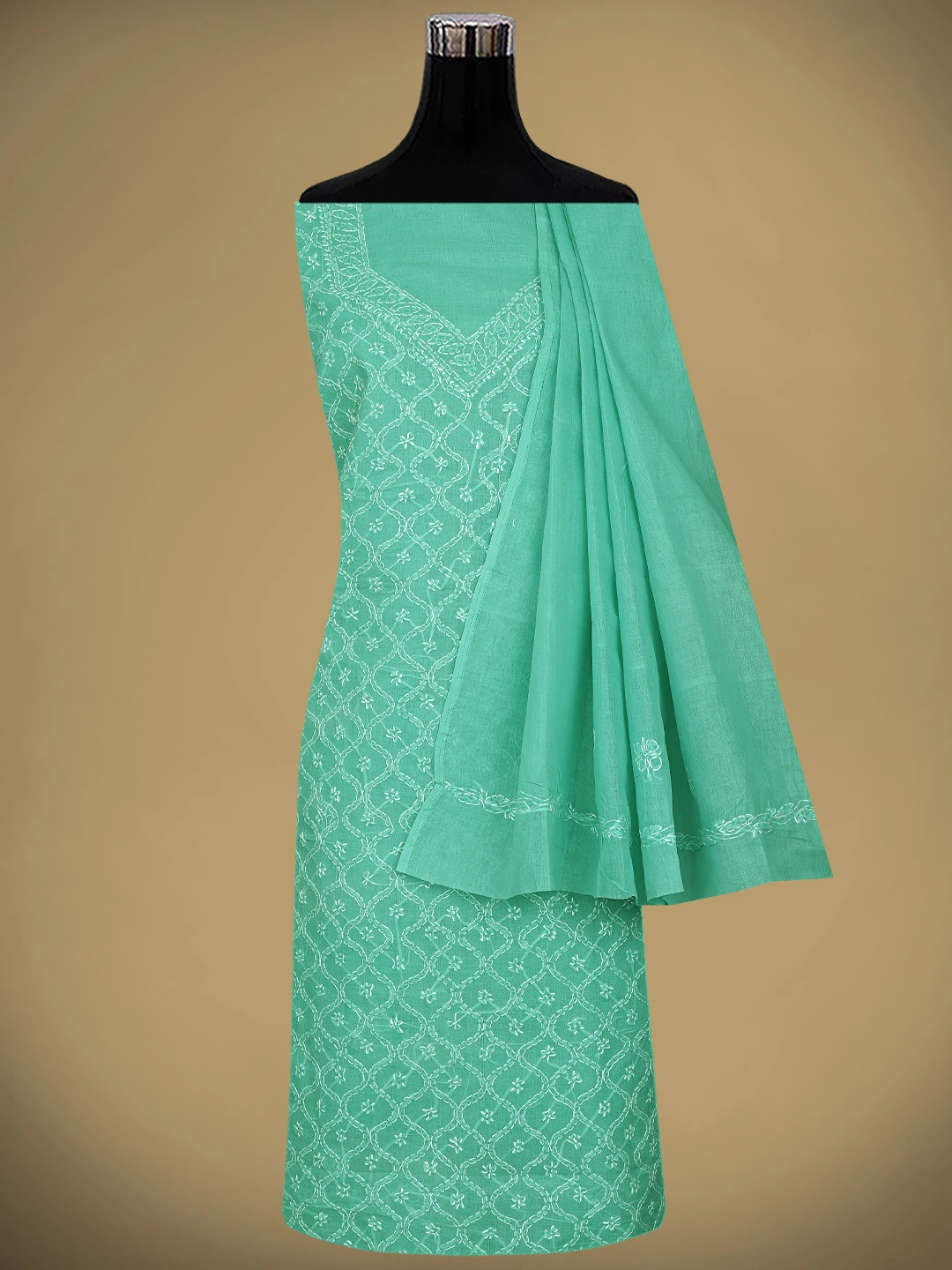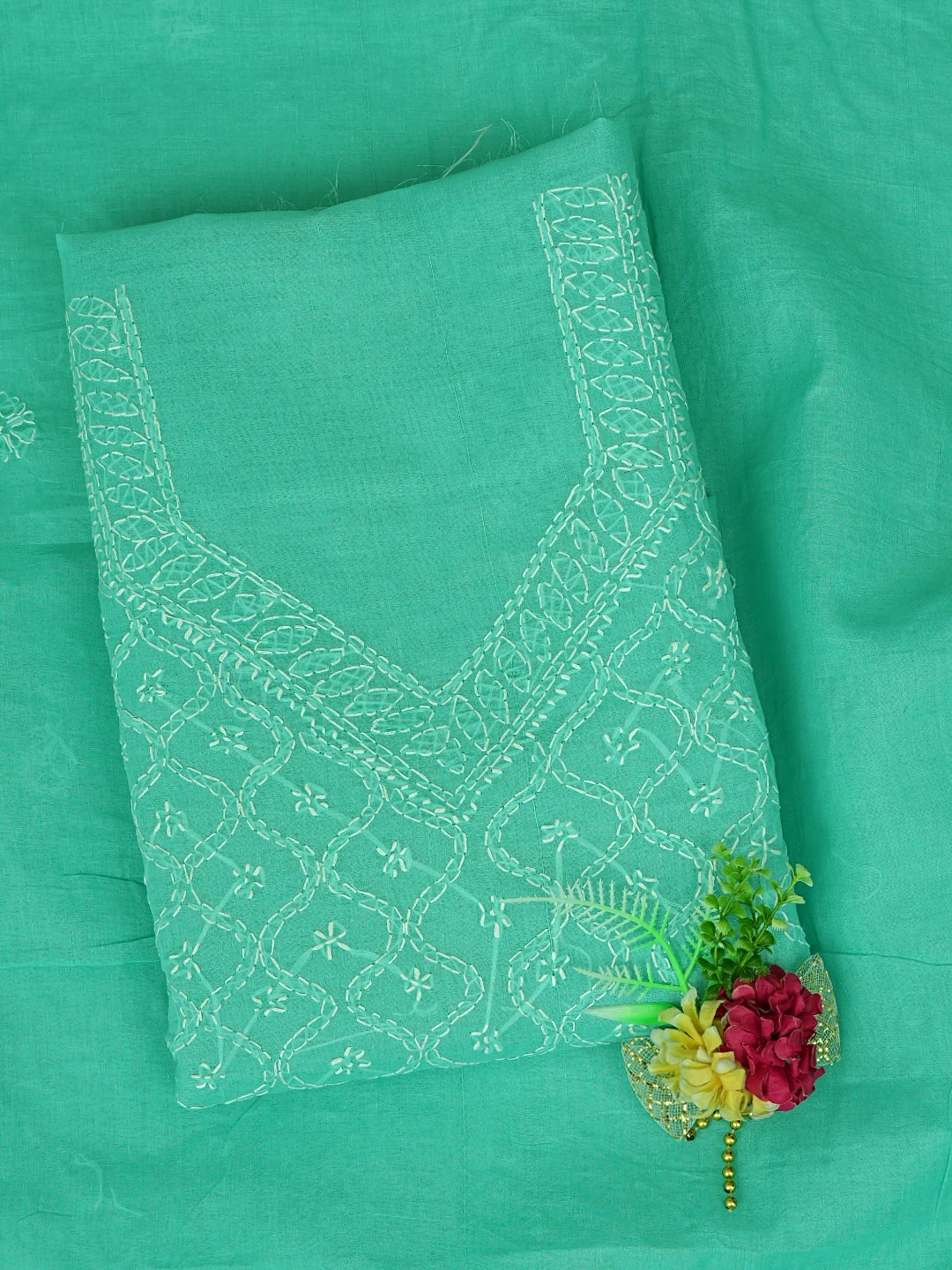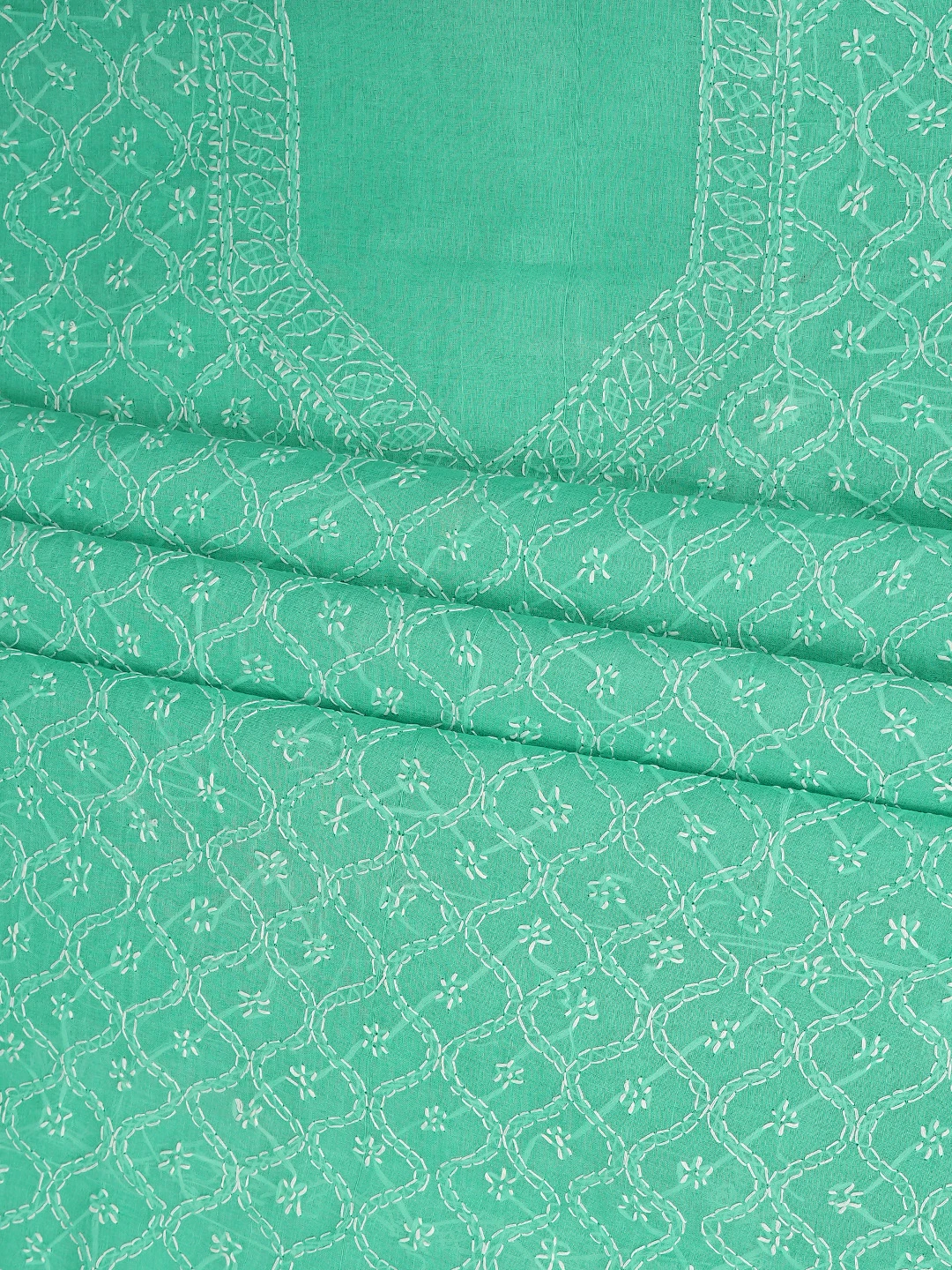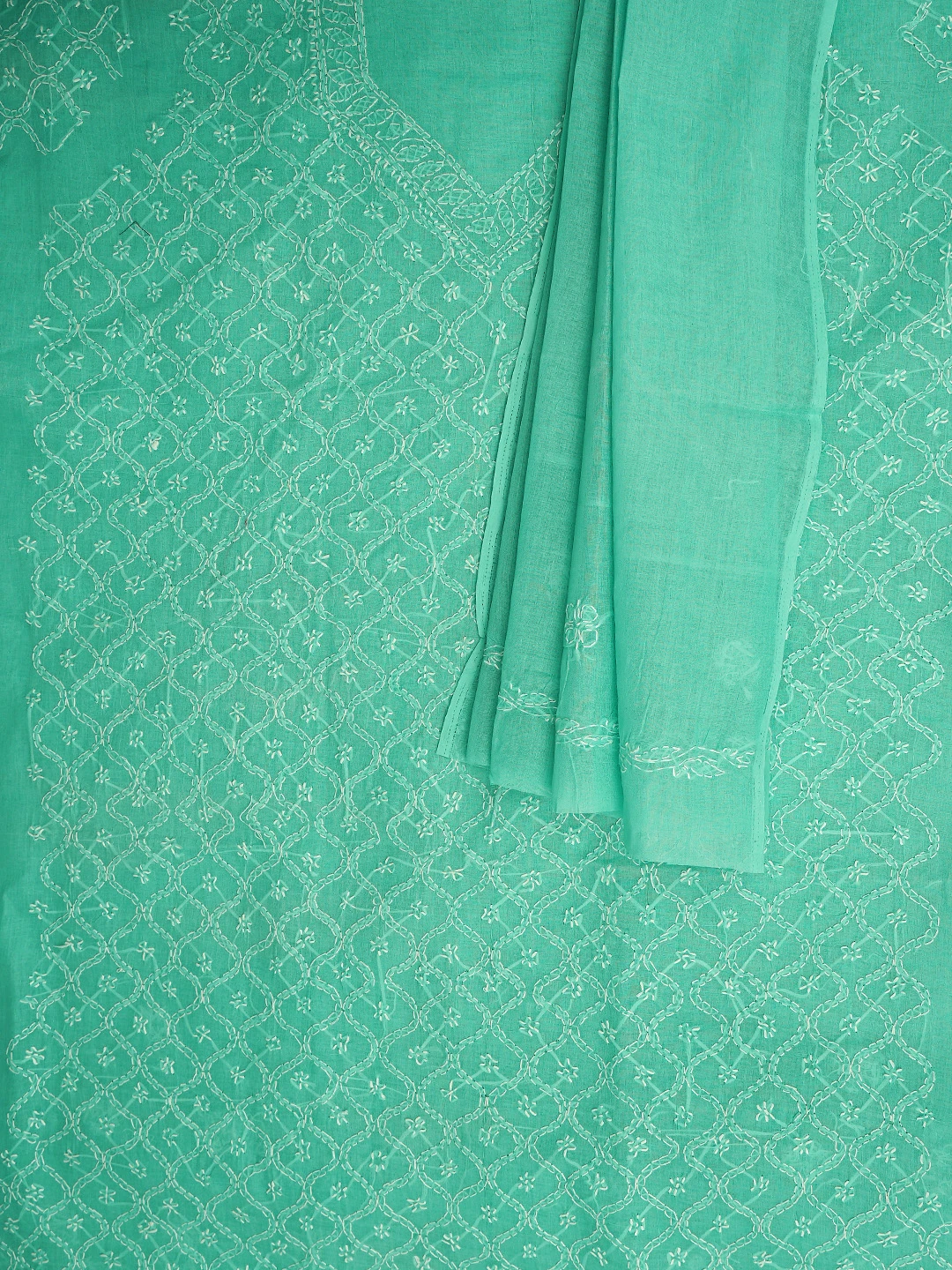 Ada Hand Embroidered Sea Green Cotton Lucknowi Chikankari Unstitched Suit Piece 01A882338