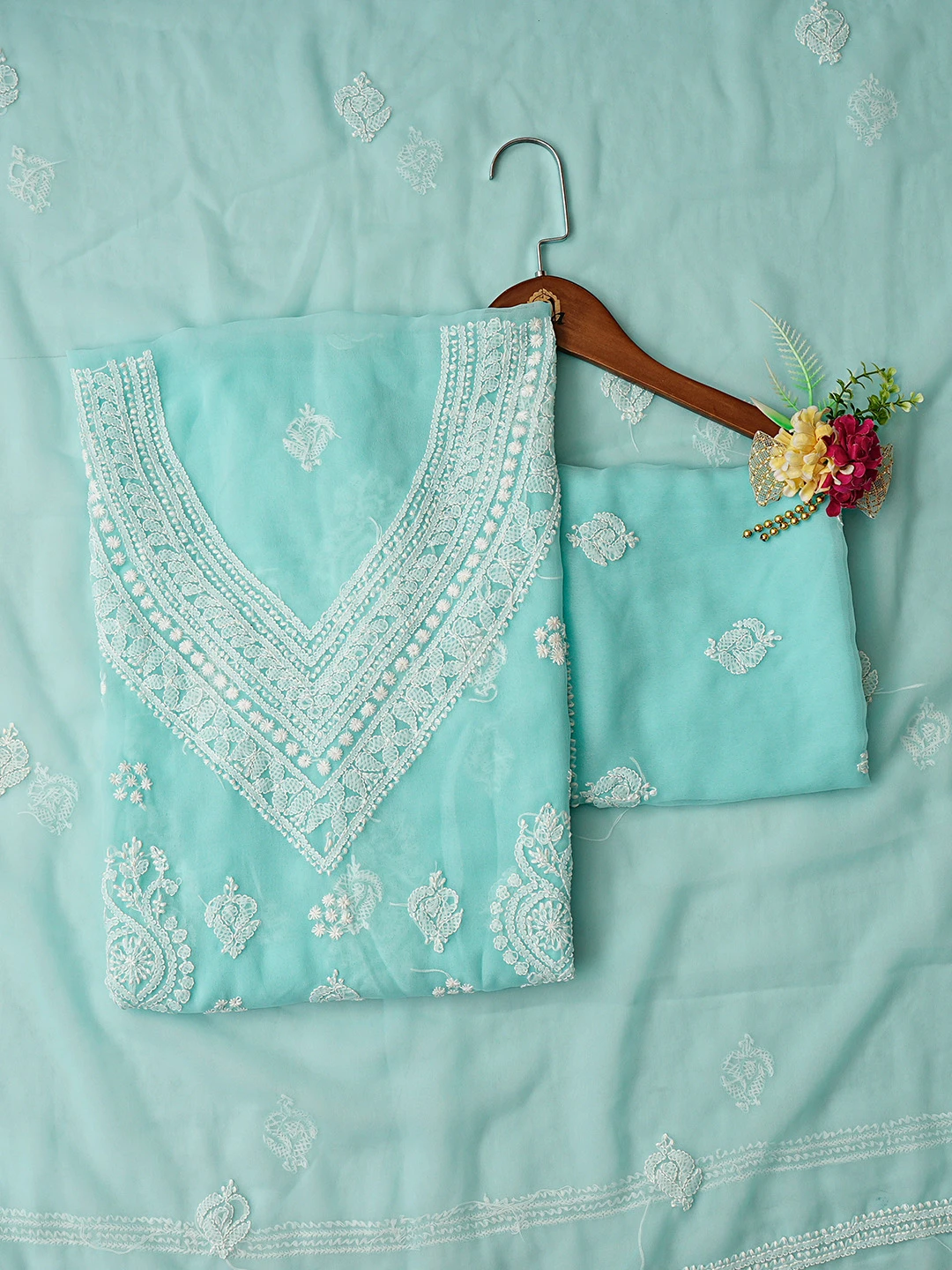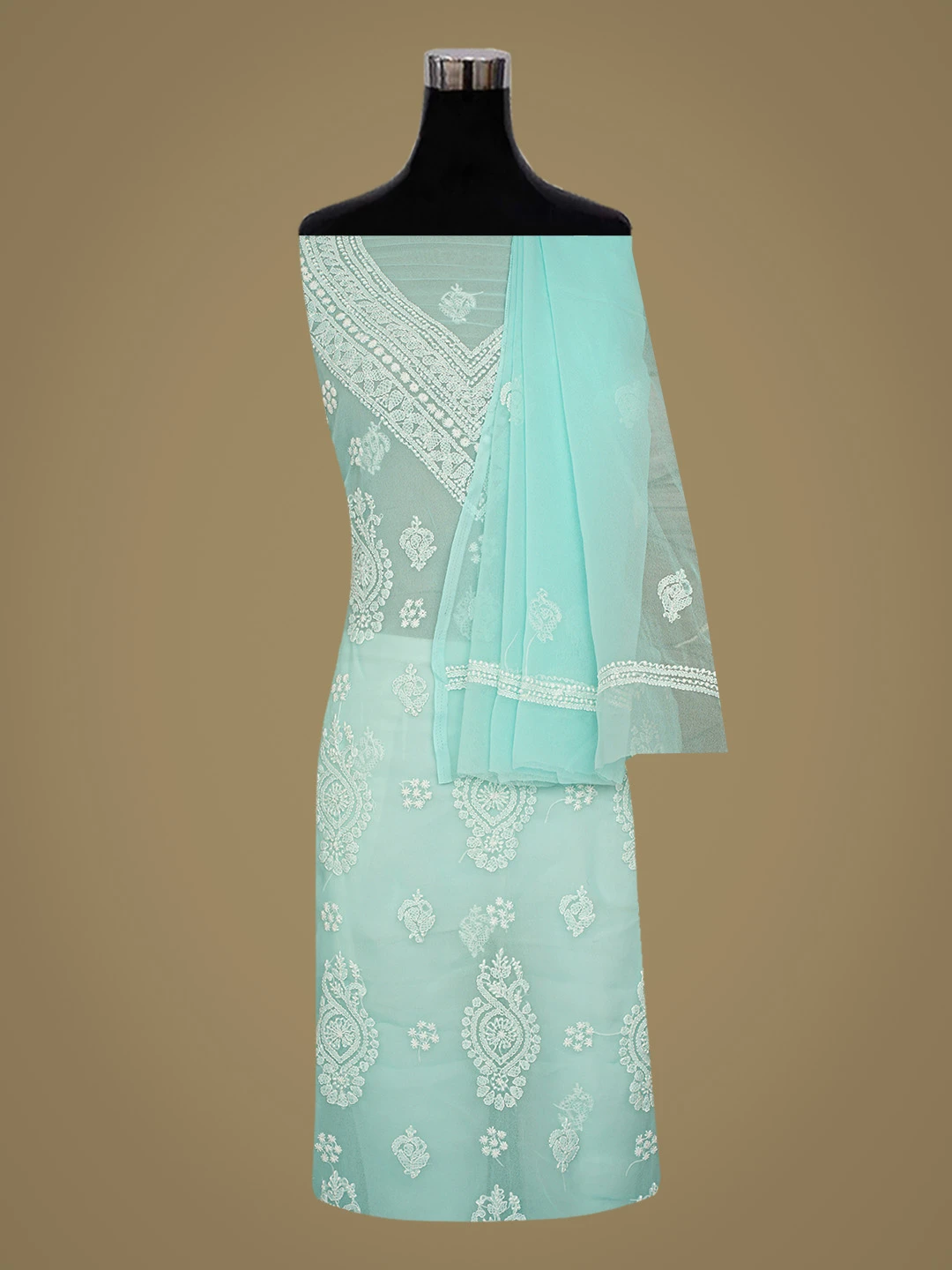 Ada Hand Embroidered Sea Green Georgette Lucknowi Chikankari Unstitched Suit Piece 01A866875