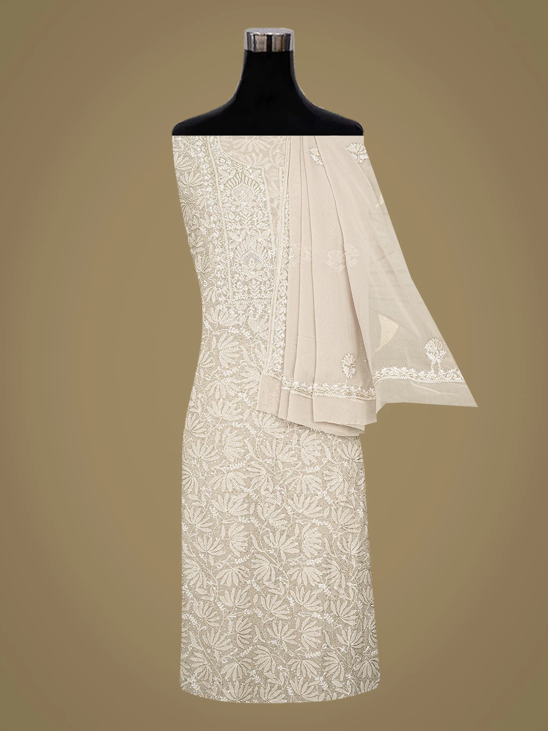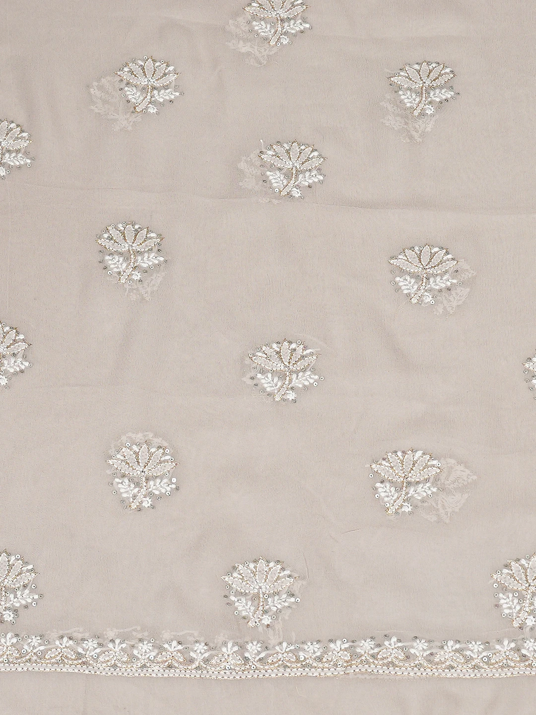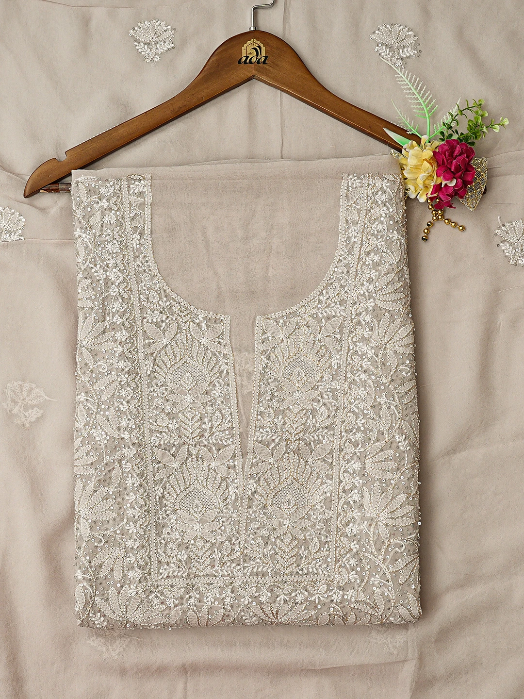 Ada Hand Embroidered Silver Grey Pure Georgette Lucknowi Chikankari Unstitched Kurta Dupatta Set With Sequinned Work 01A784223