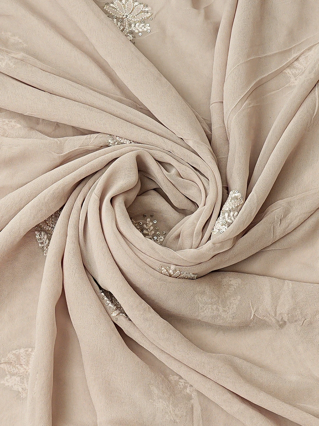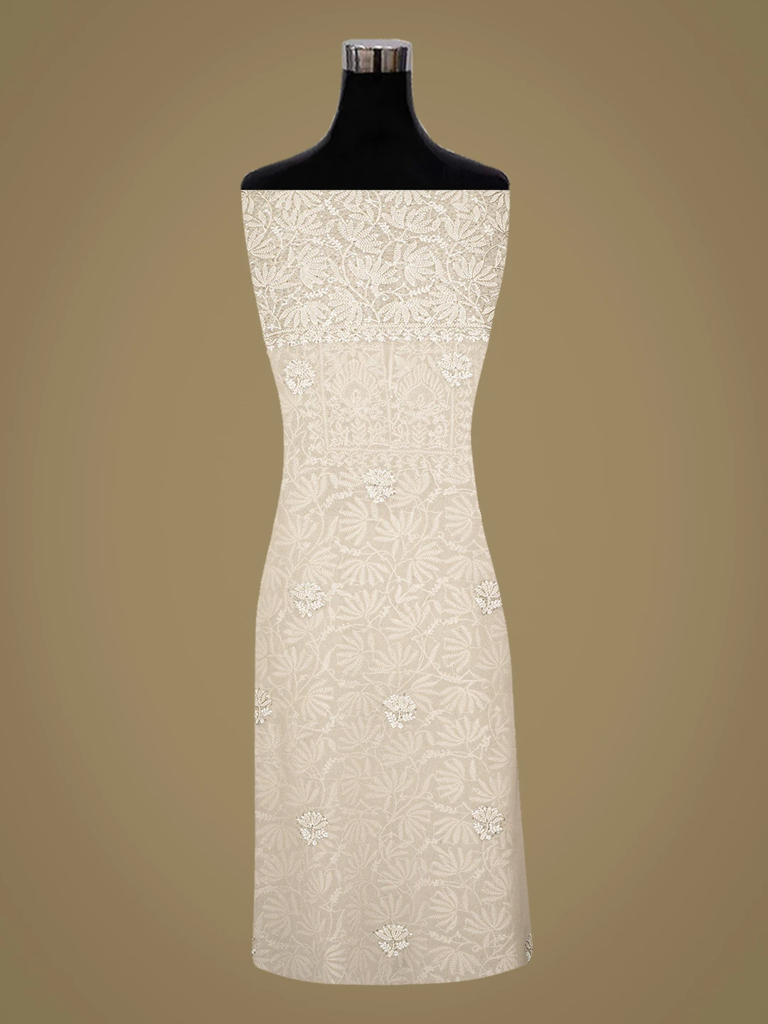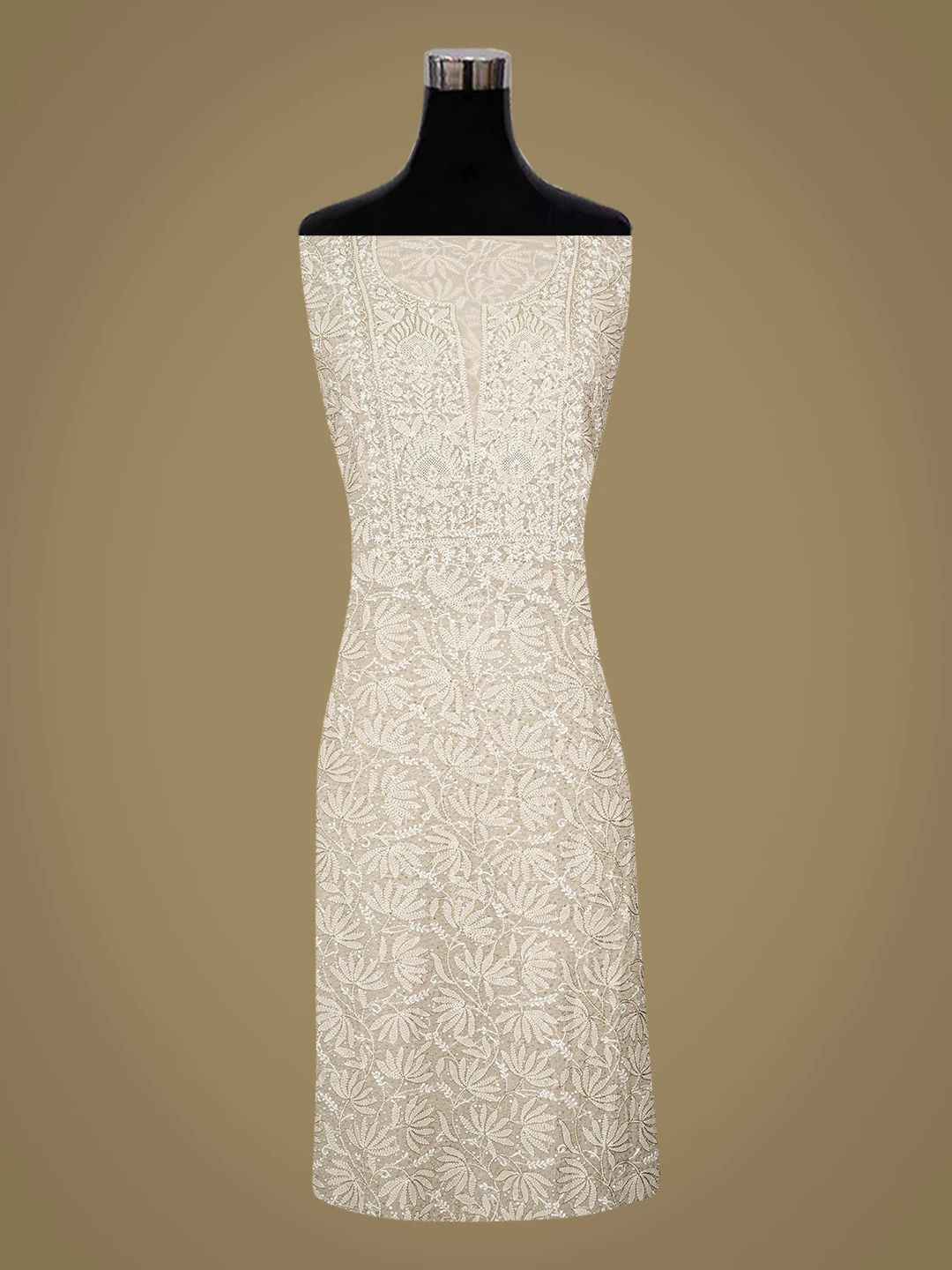Ada Hand Embroidered Silver Grey Pure Georgette Lucknowi Chikankari Unstitched Kurta Dupatta Set With Sequinned Work 01A784223