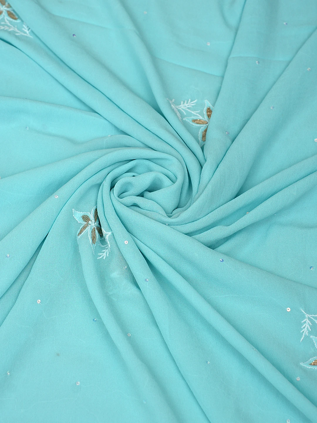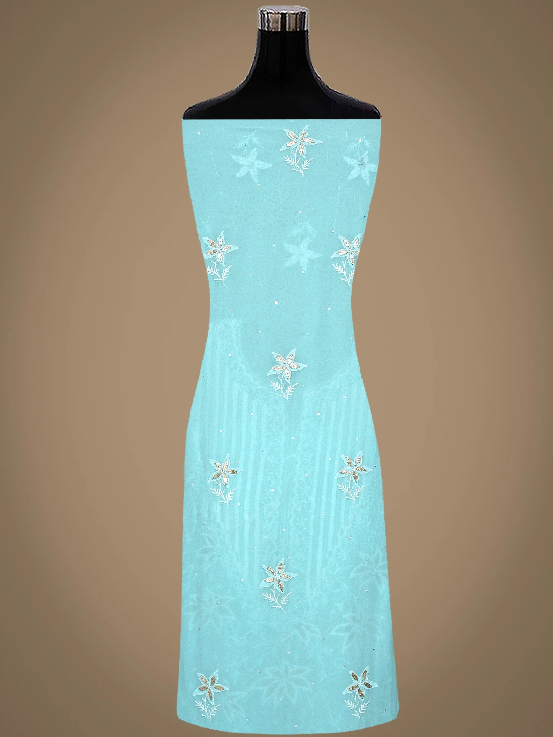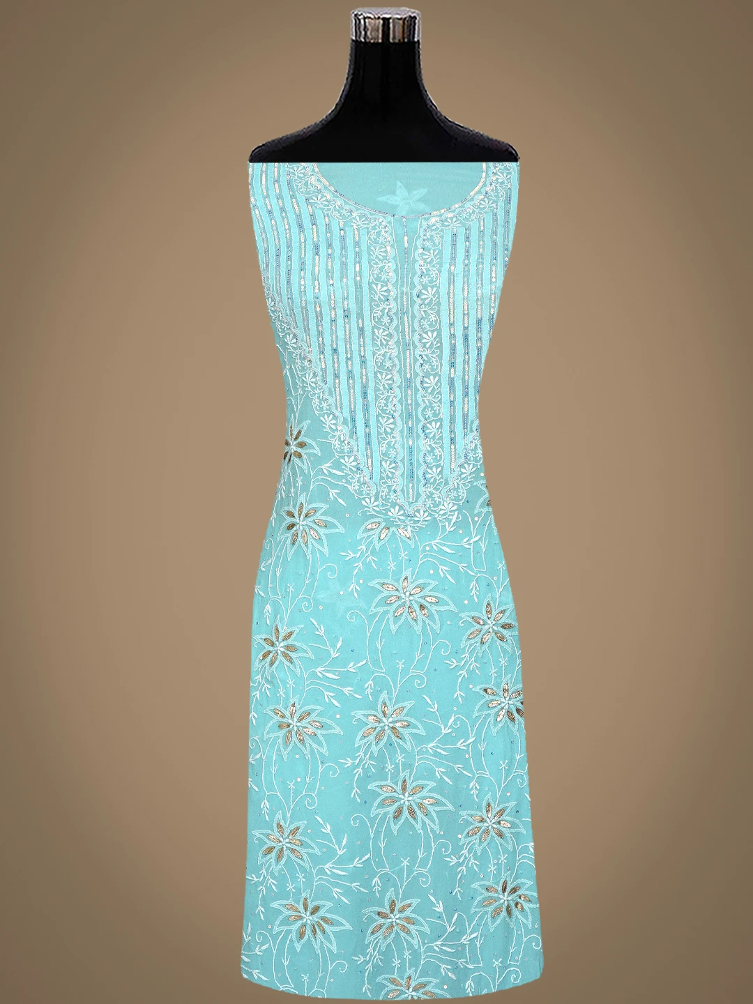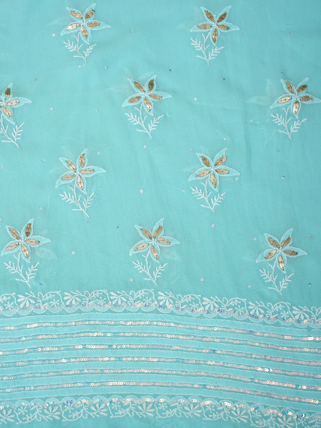 Ada Hand Embroidered Sky Blue Pure Georgette Lucknowi Chikankari Unstitched Kurta Dupatta Set With Sequinned Work 01A384478