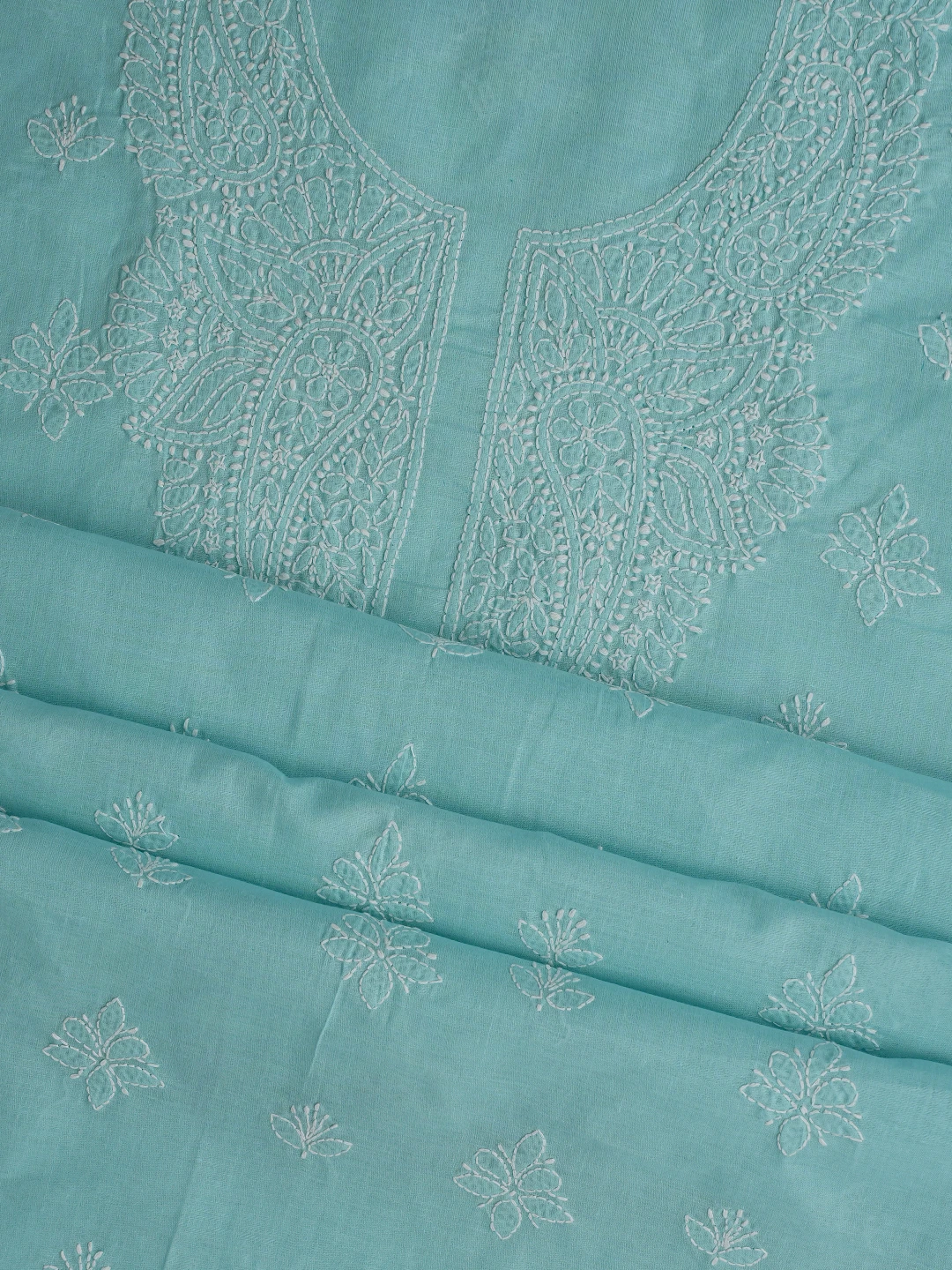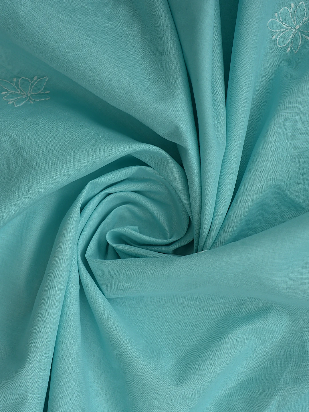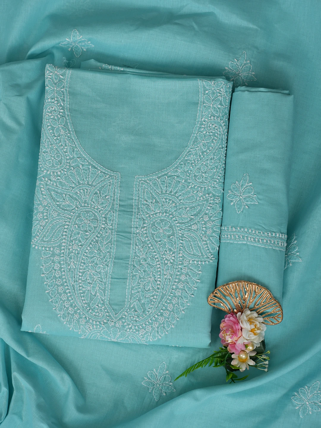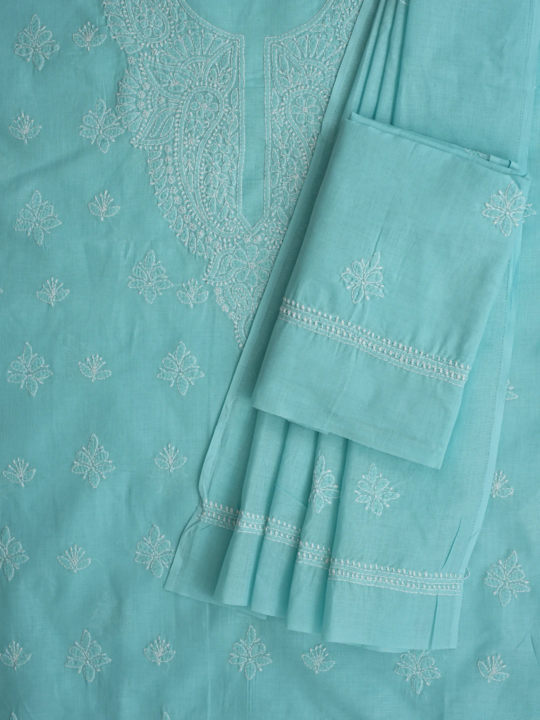 Ada Hand Embroidered Turquoise Blue Cotton Lucknowi Chikankari Unstitched Suit Piece 01A867096