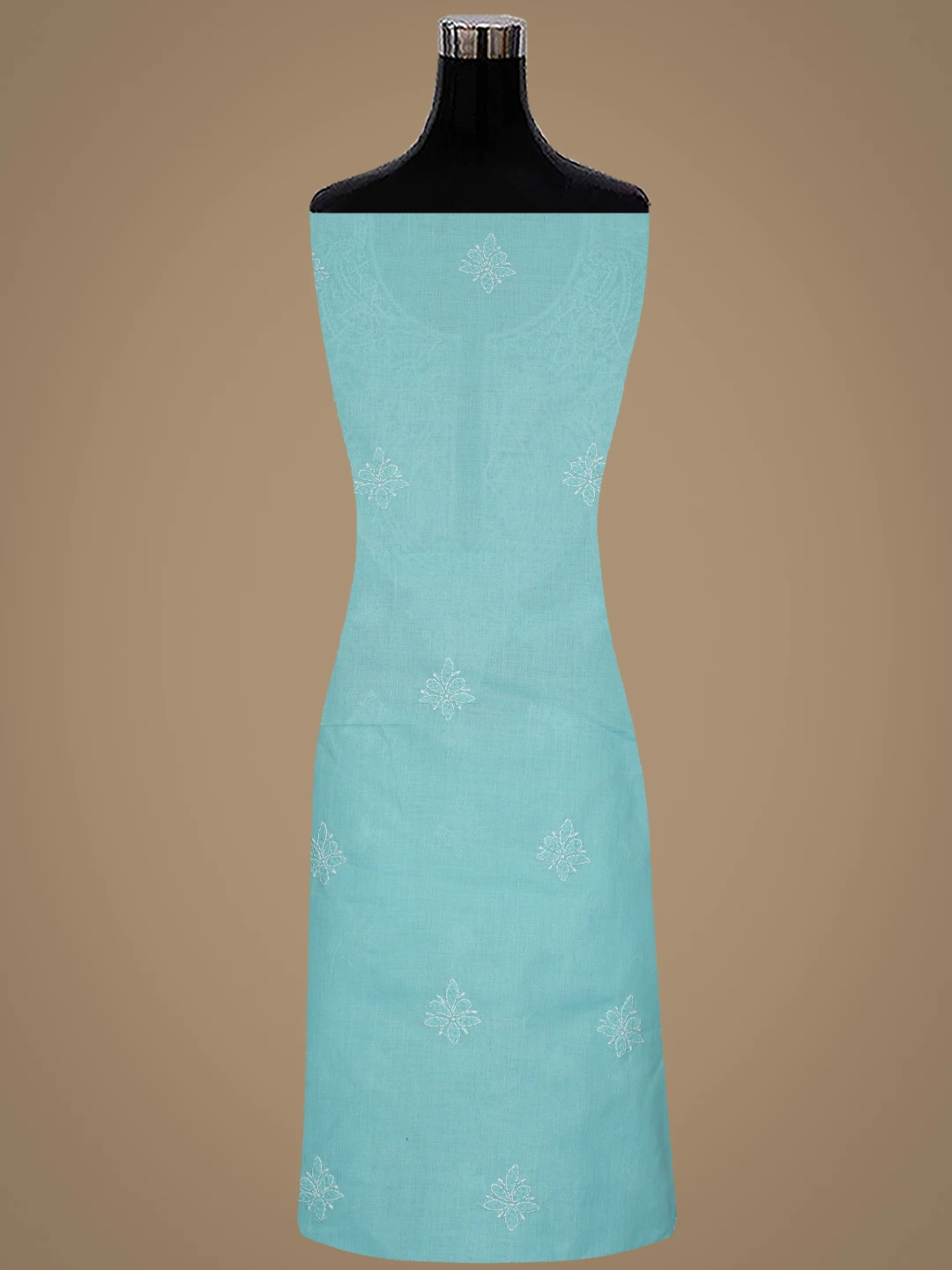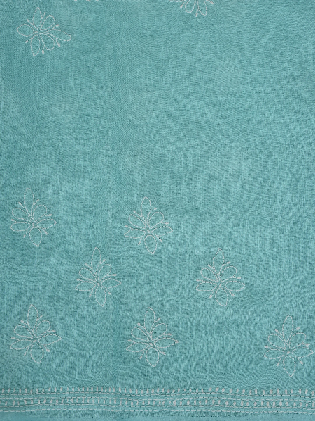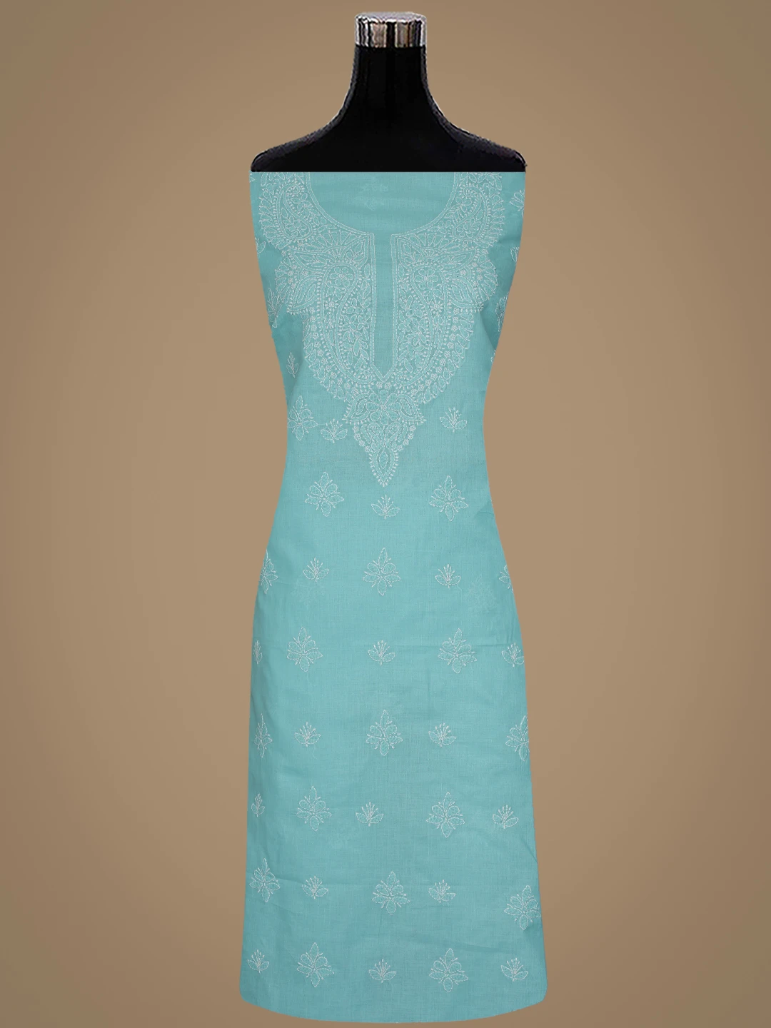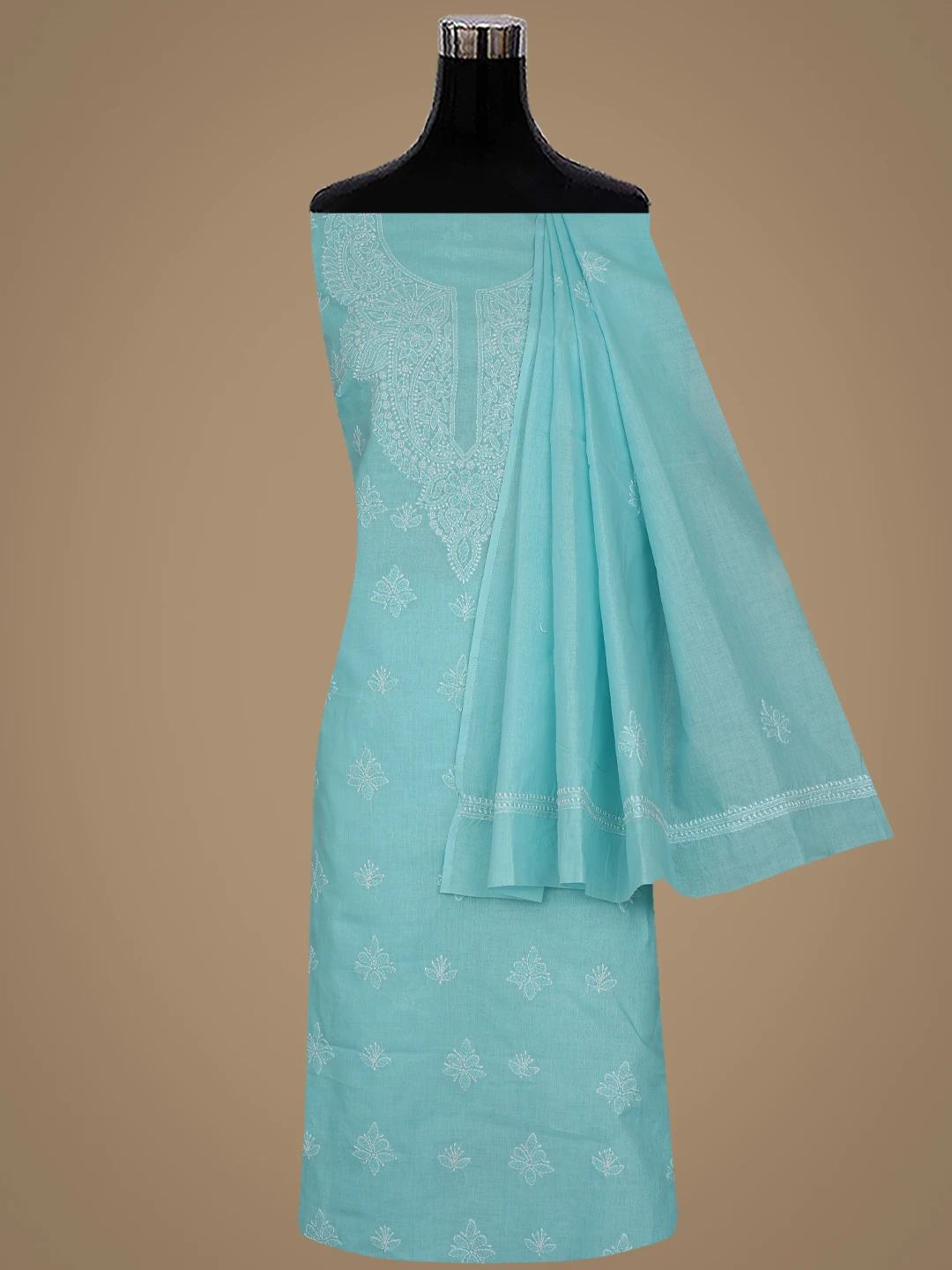 Ada Hand Embroidered Turquoise Blue Cotton Lucknowi Chikankari Unstitched Suit Piece 01A867096