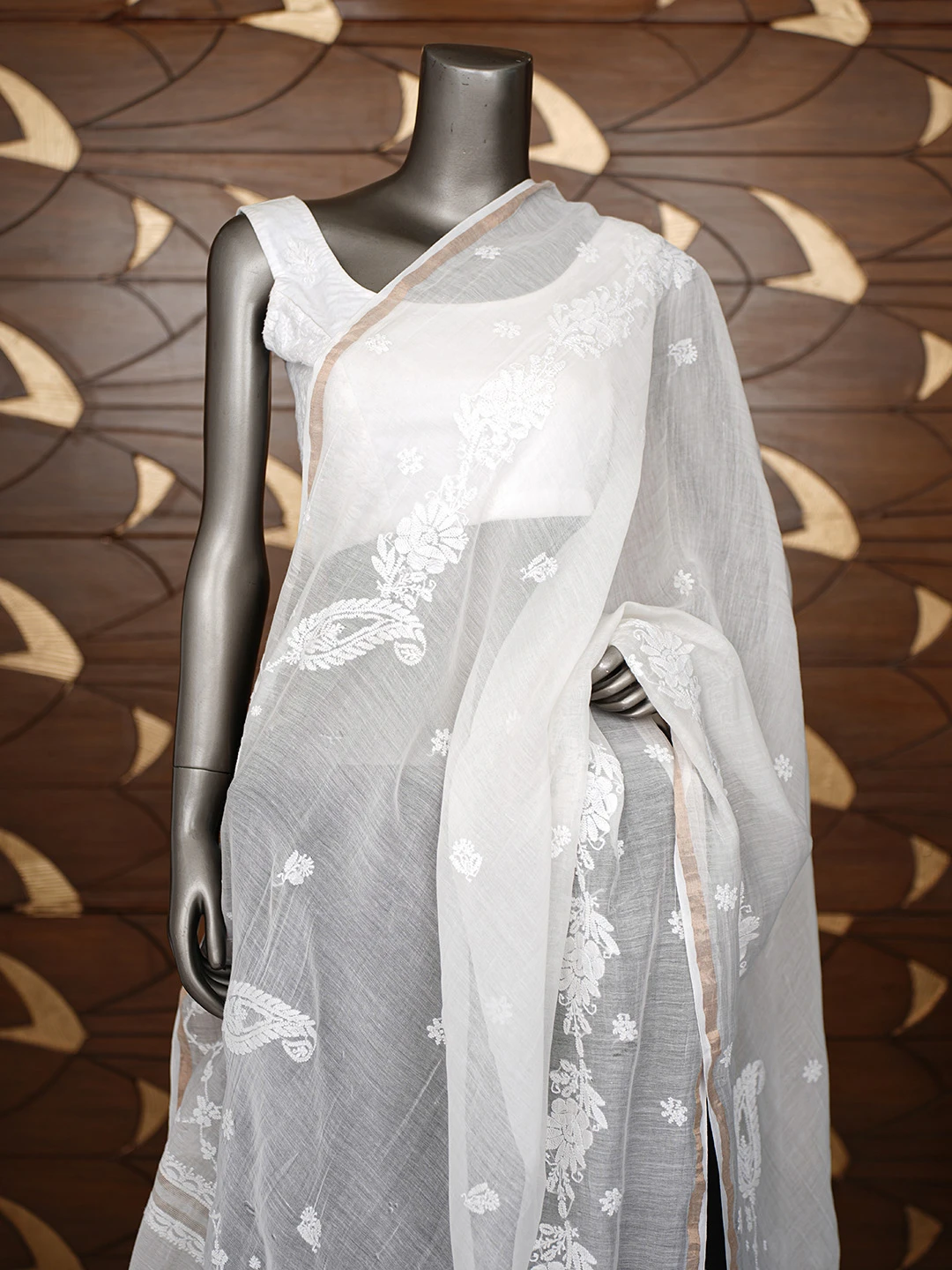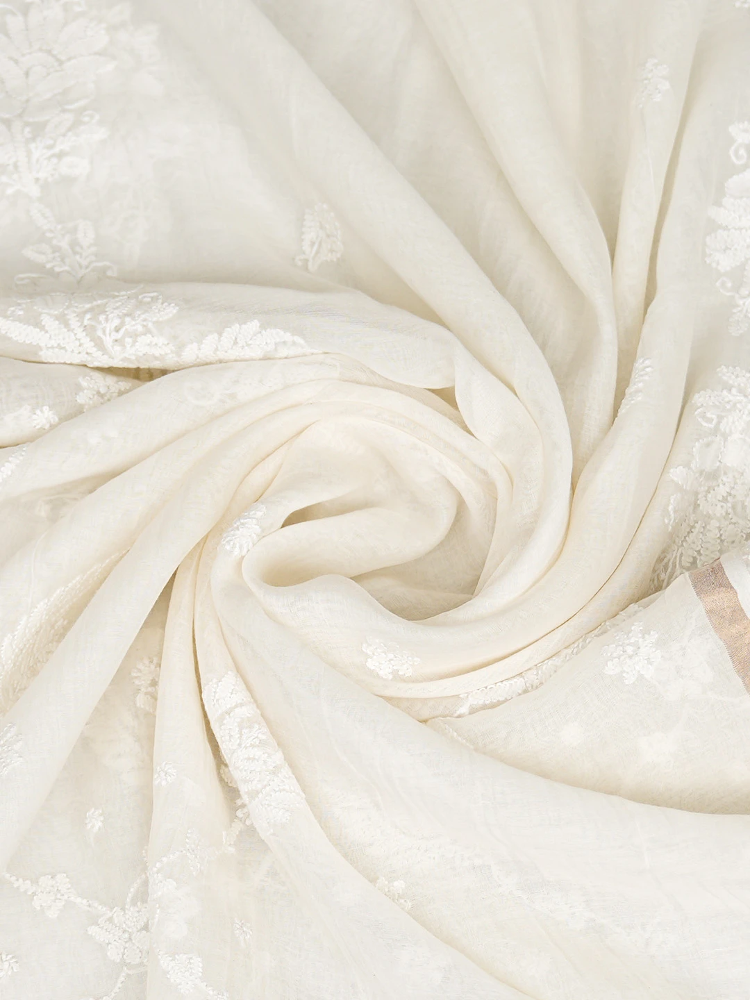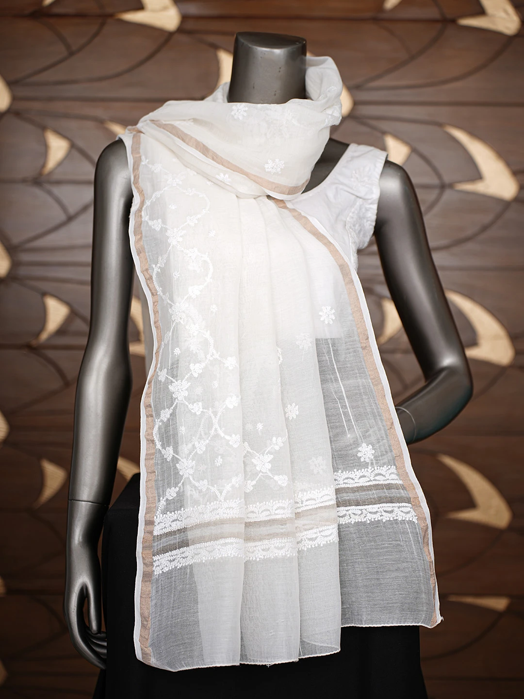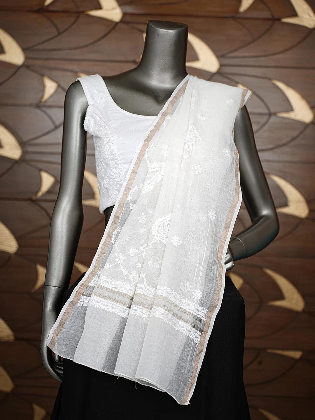 Ada Hand Embroidered White Chanderi Lucknowi Chikankari Dupatta 01A865991
