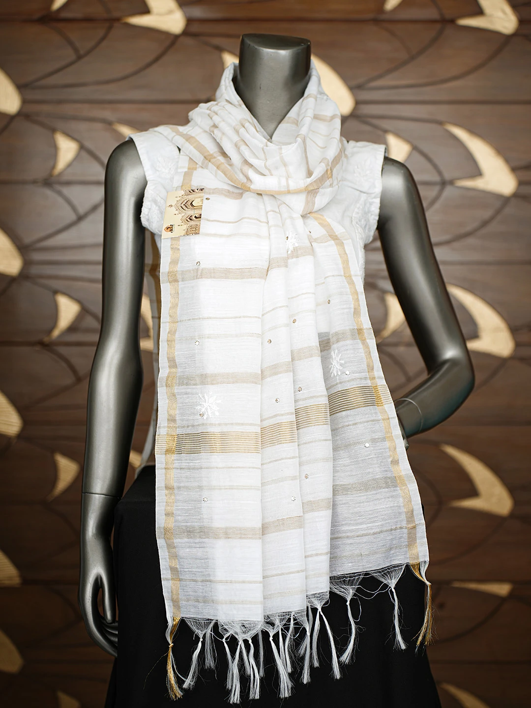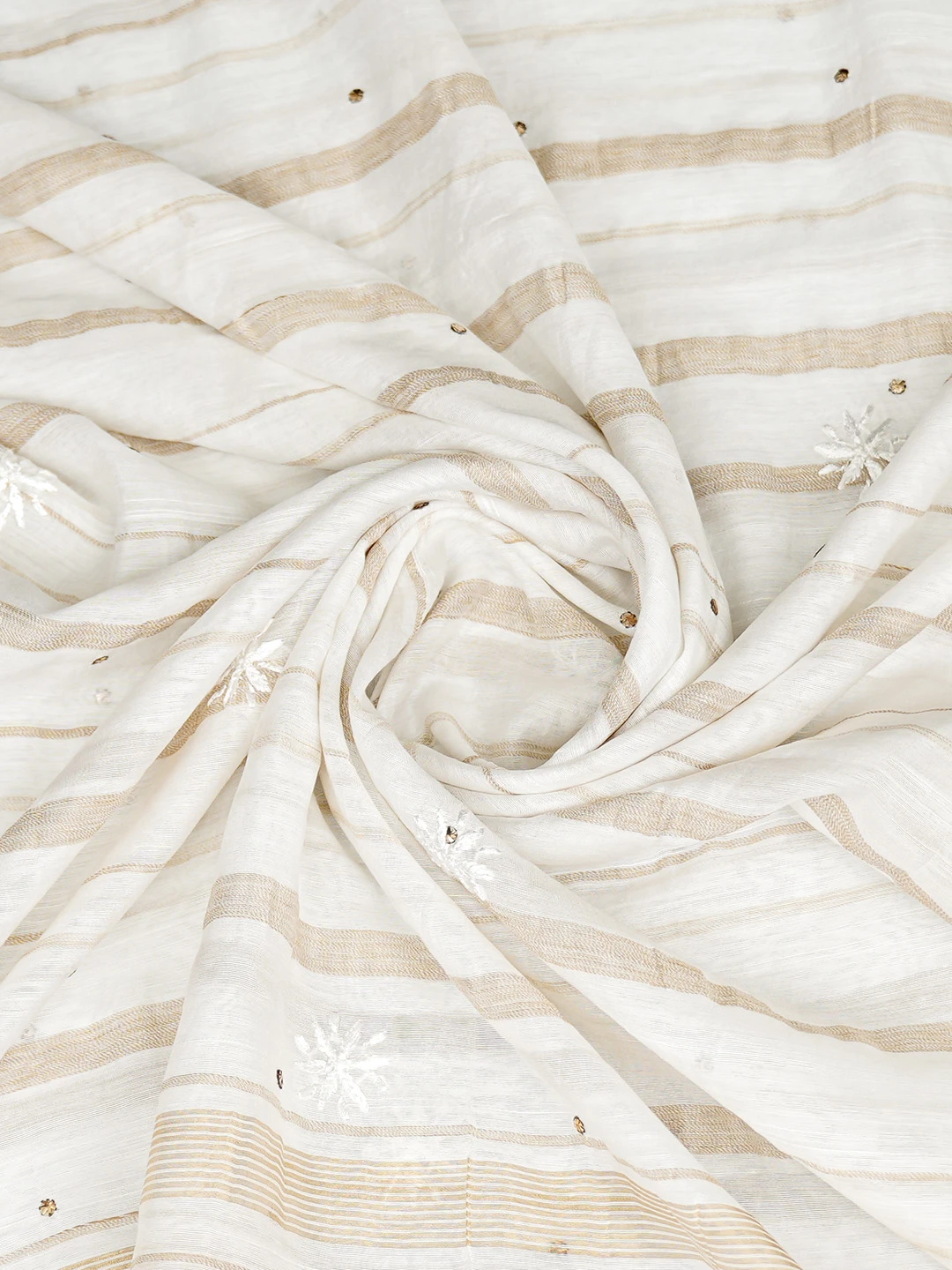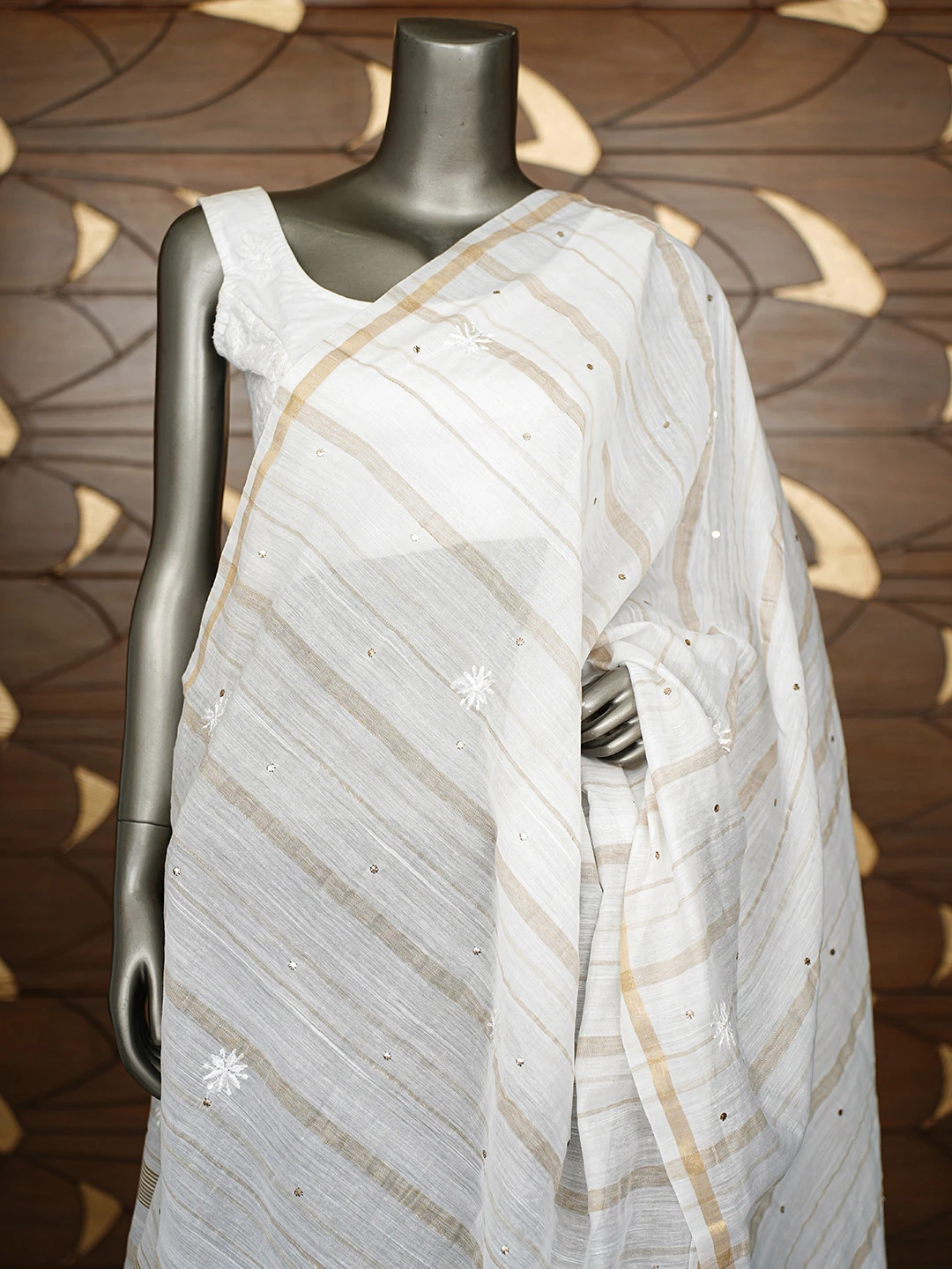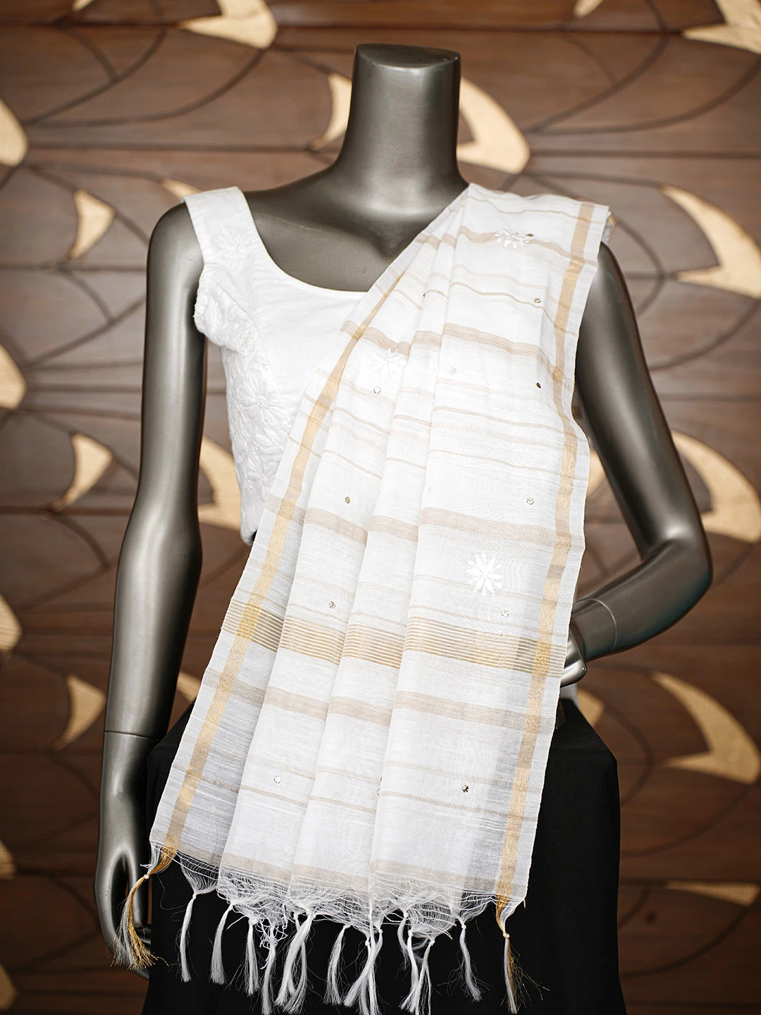 Ada Hand Embroidered White Chanderi Lucknowi Chikankari Dupatta With Mukaish Work 01A858124