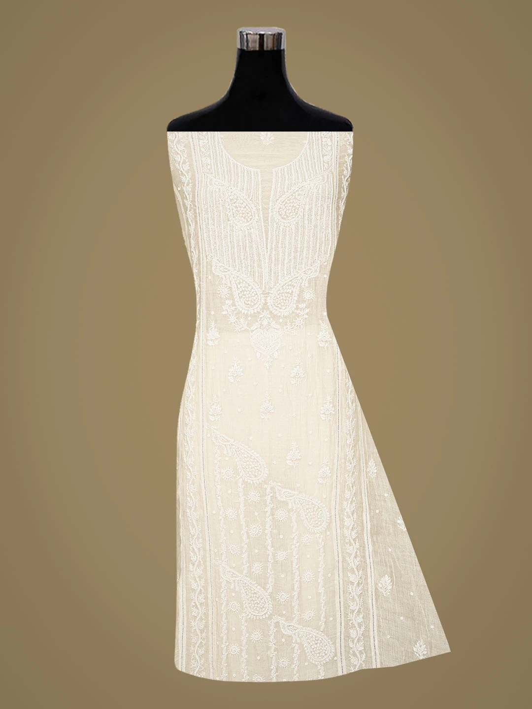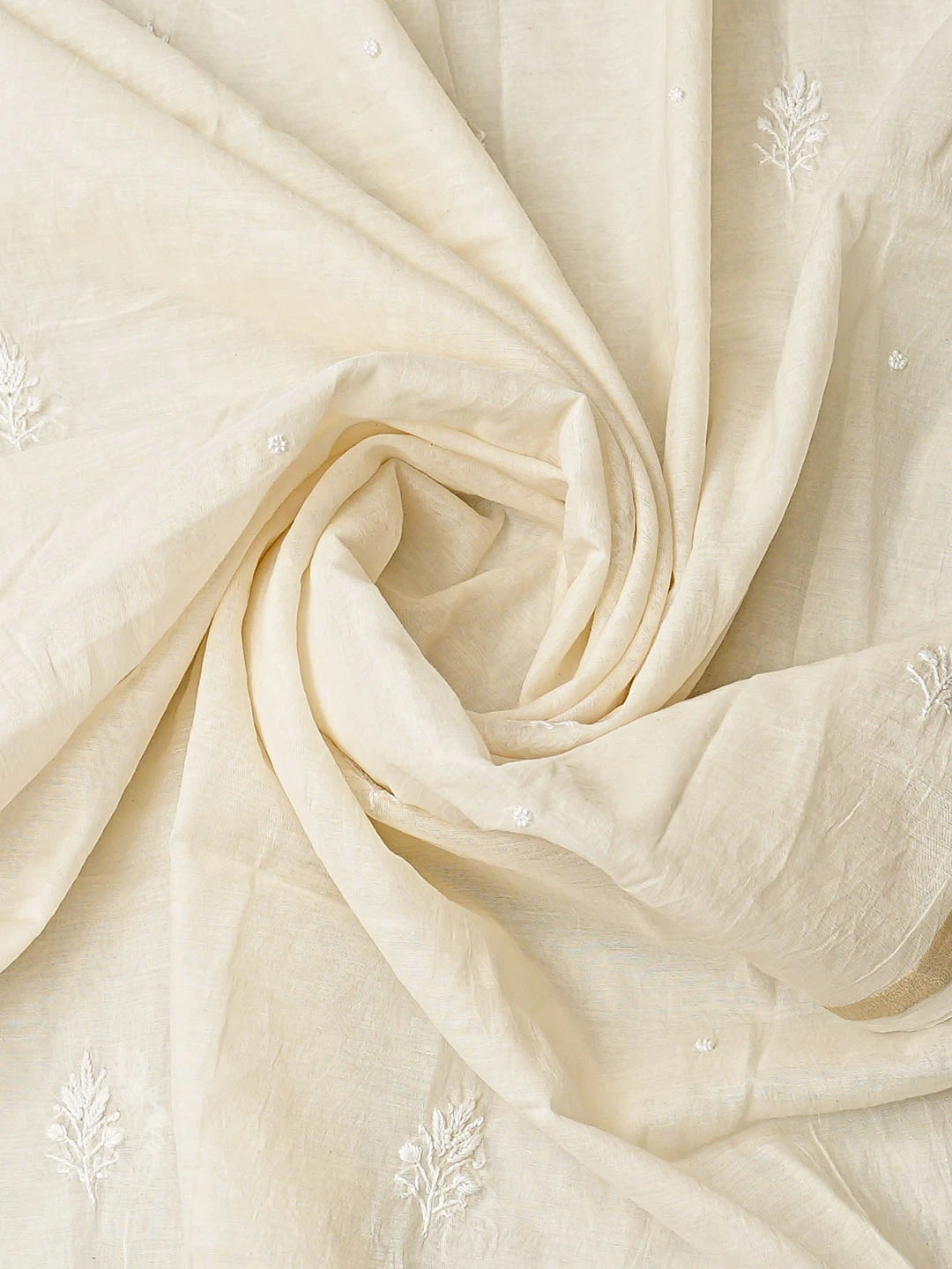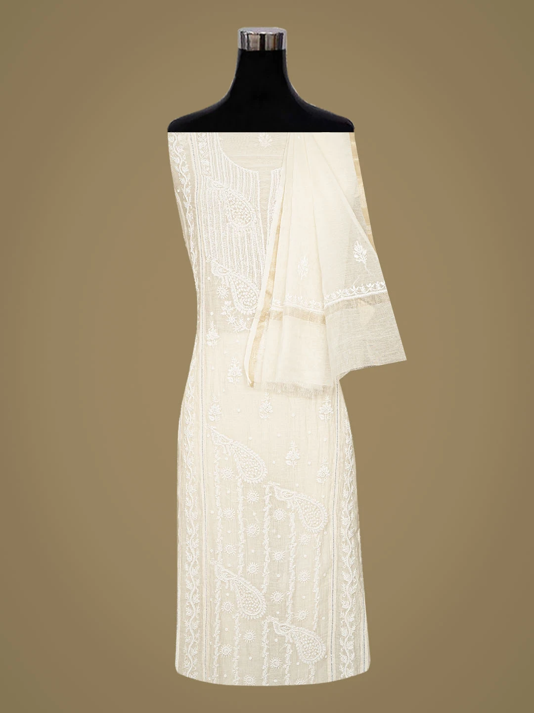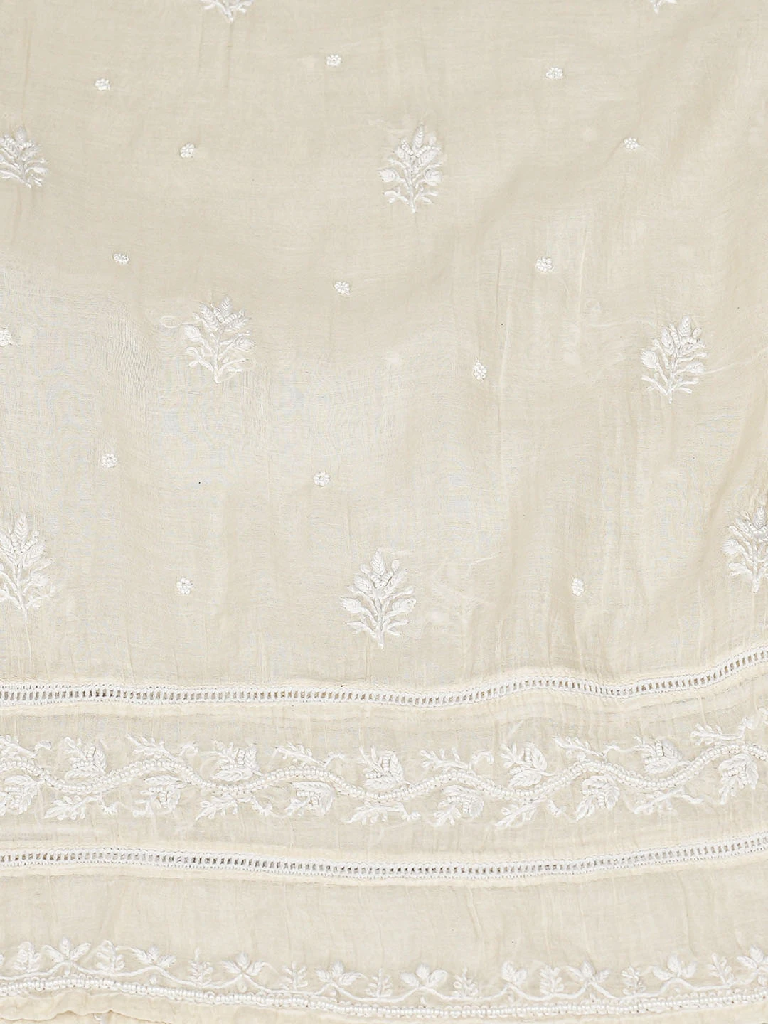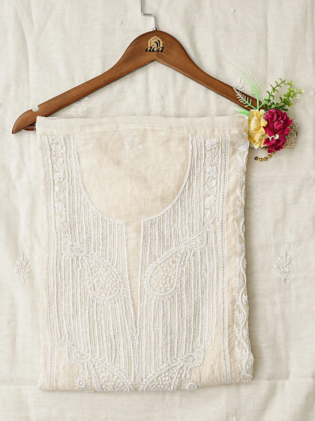 Ada Hand Embroidered White Chanderi Lucknowi Chikankari Semi-Stitched Kurta Dupatta Set With Pearl Work 01A819341