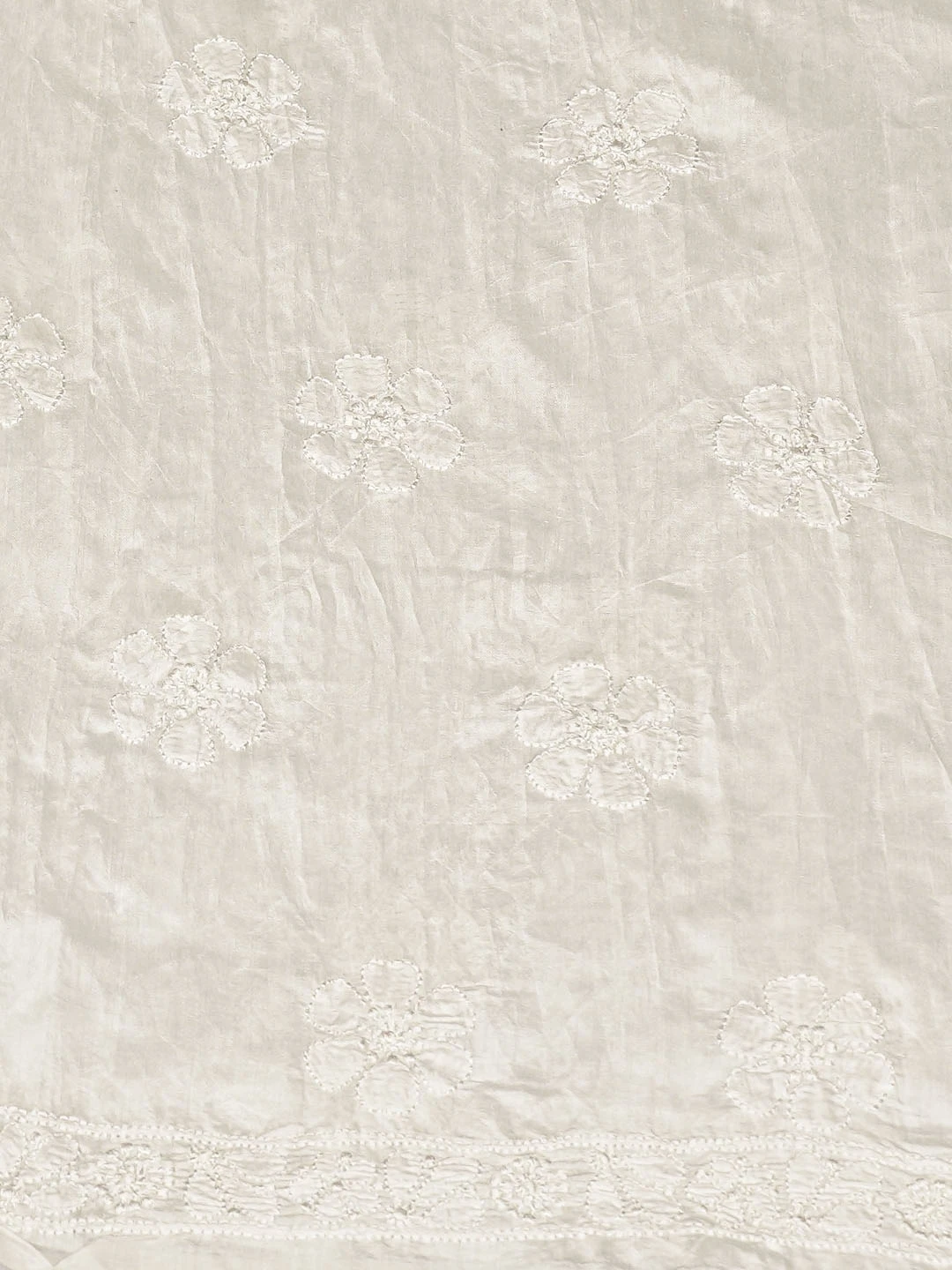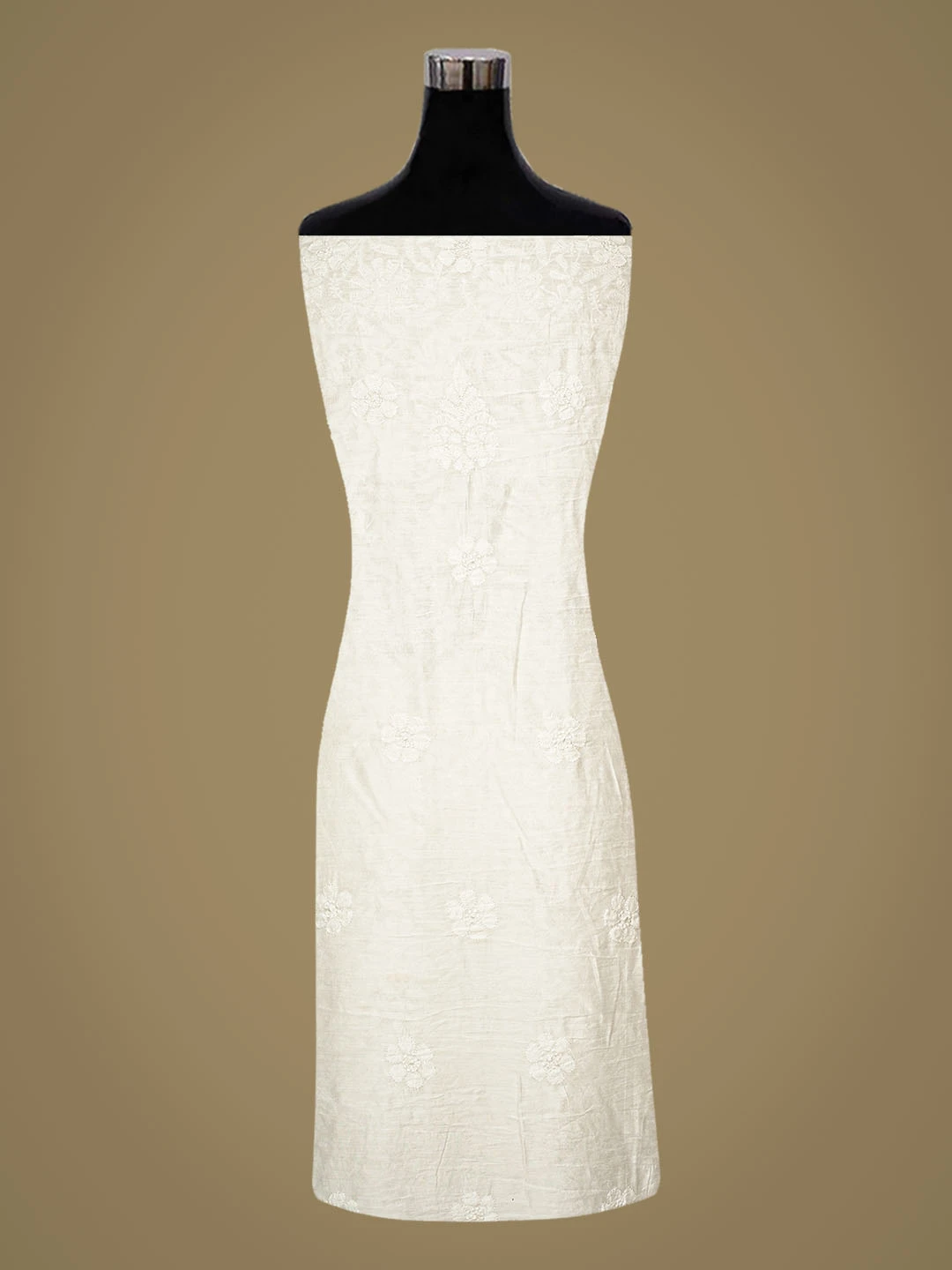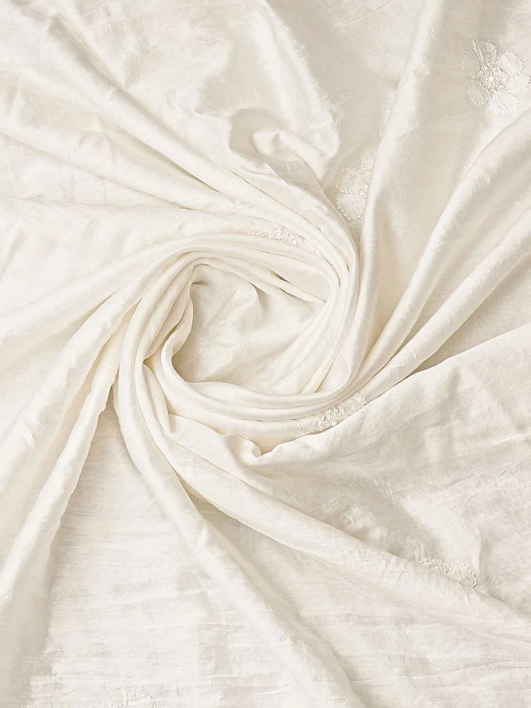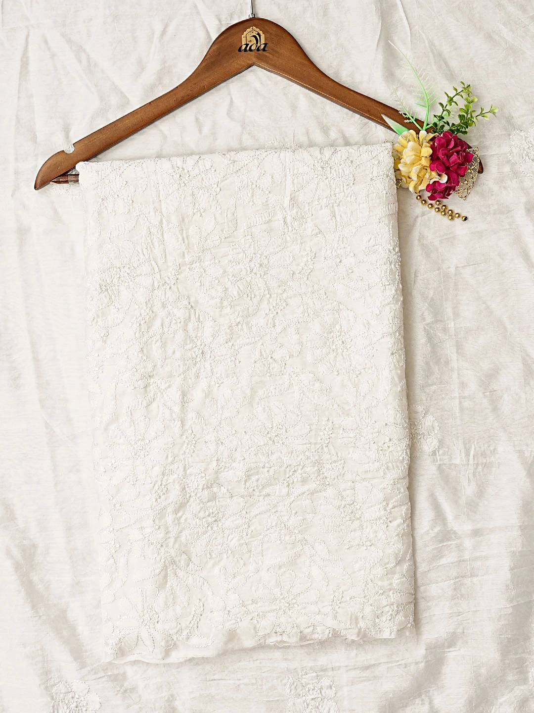 Ada Hand Embroidered White Chanderi Lucknowi Chikankari Unstitched Kurta Dupatta Set 01A798337