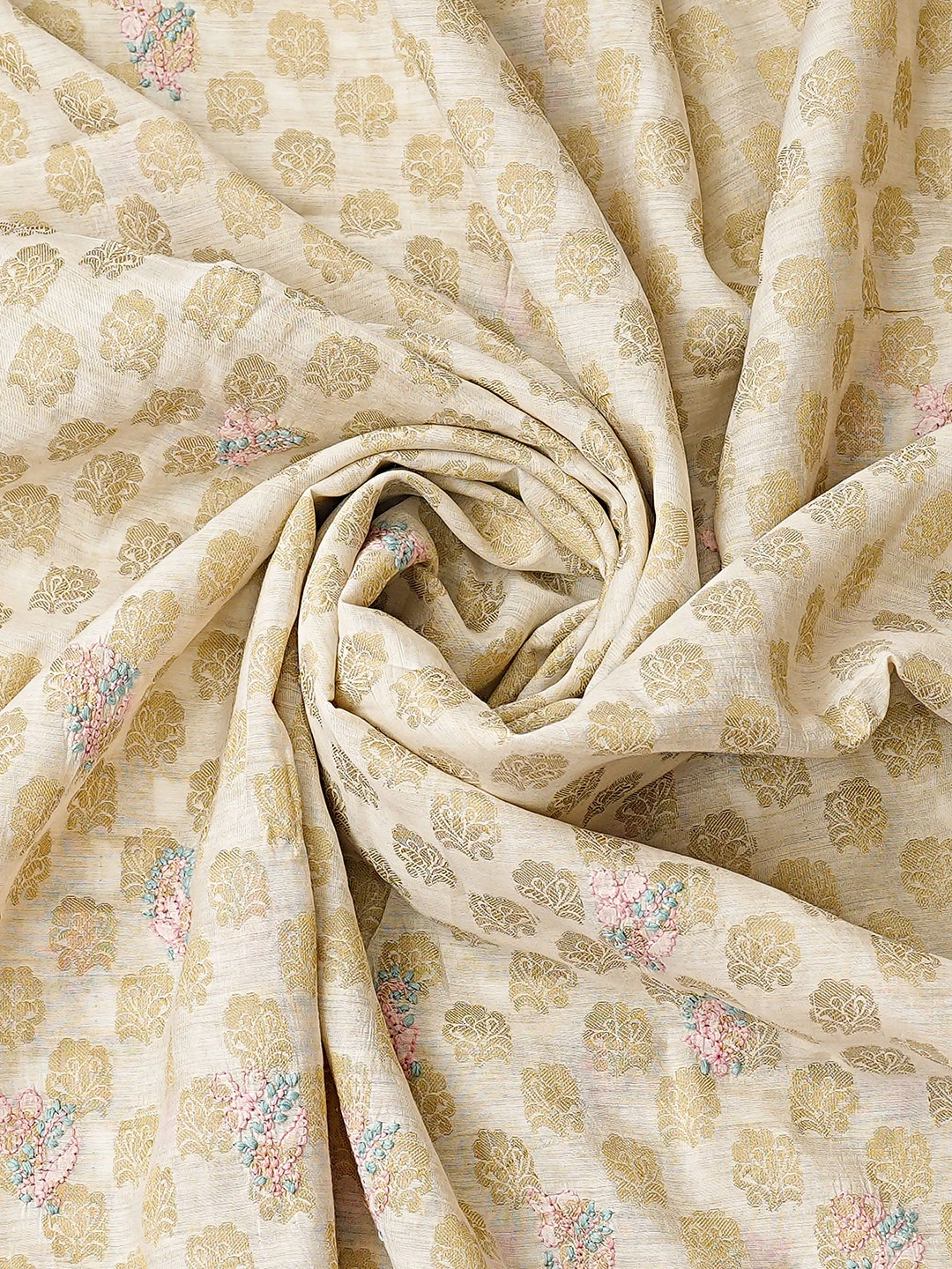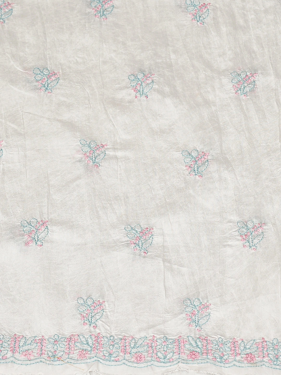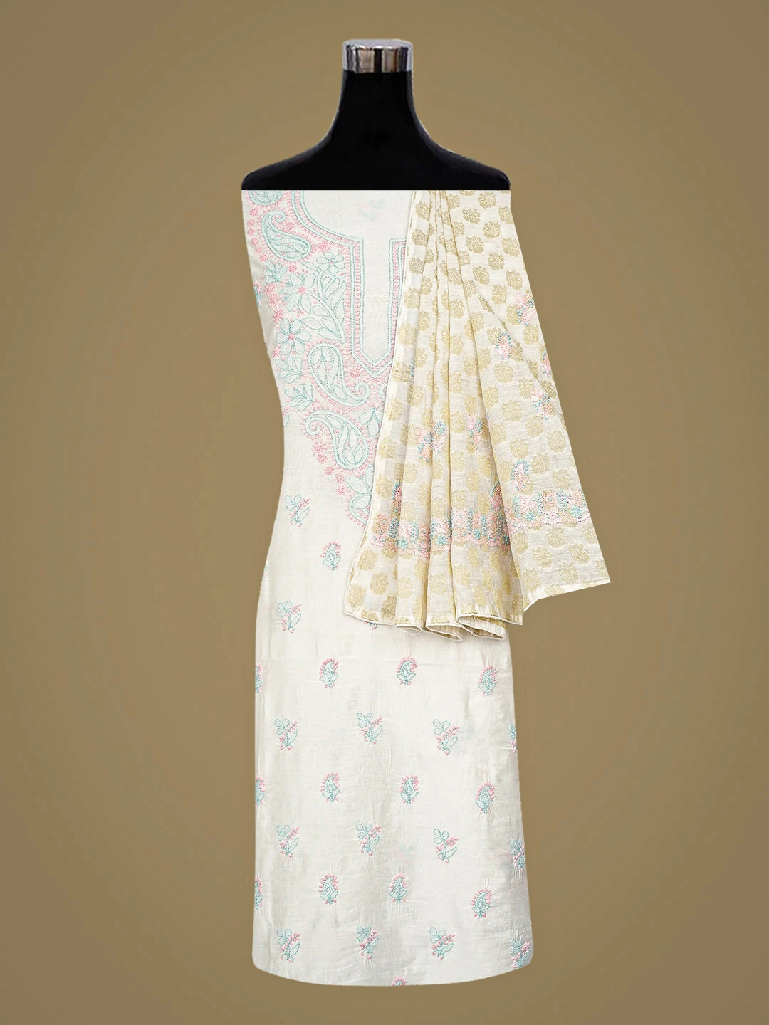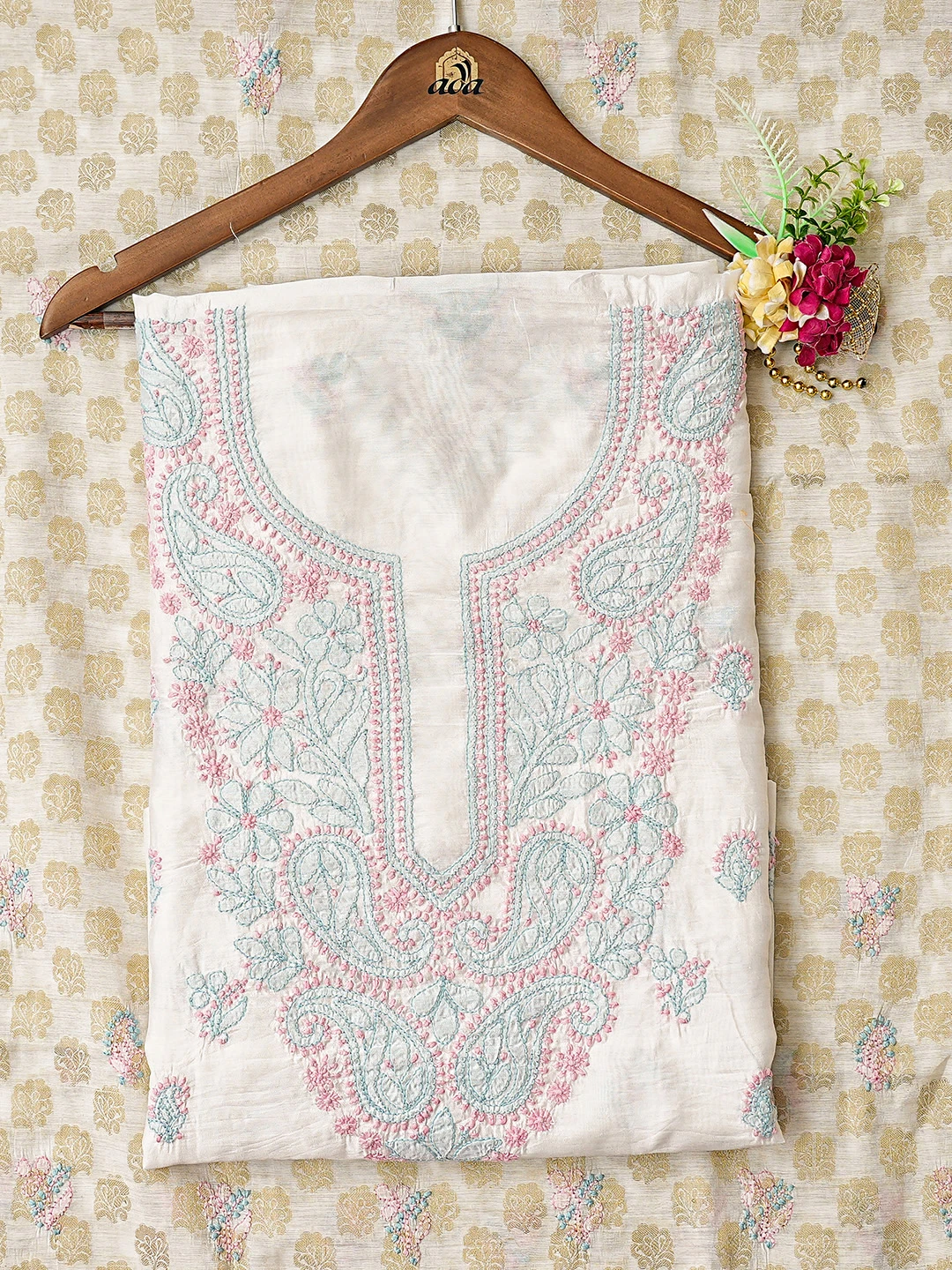 Ada Hand Embroidered White Chanderi Lucknowi Chikankari Unstitched Kurta Dupatta Set 01A871550