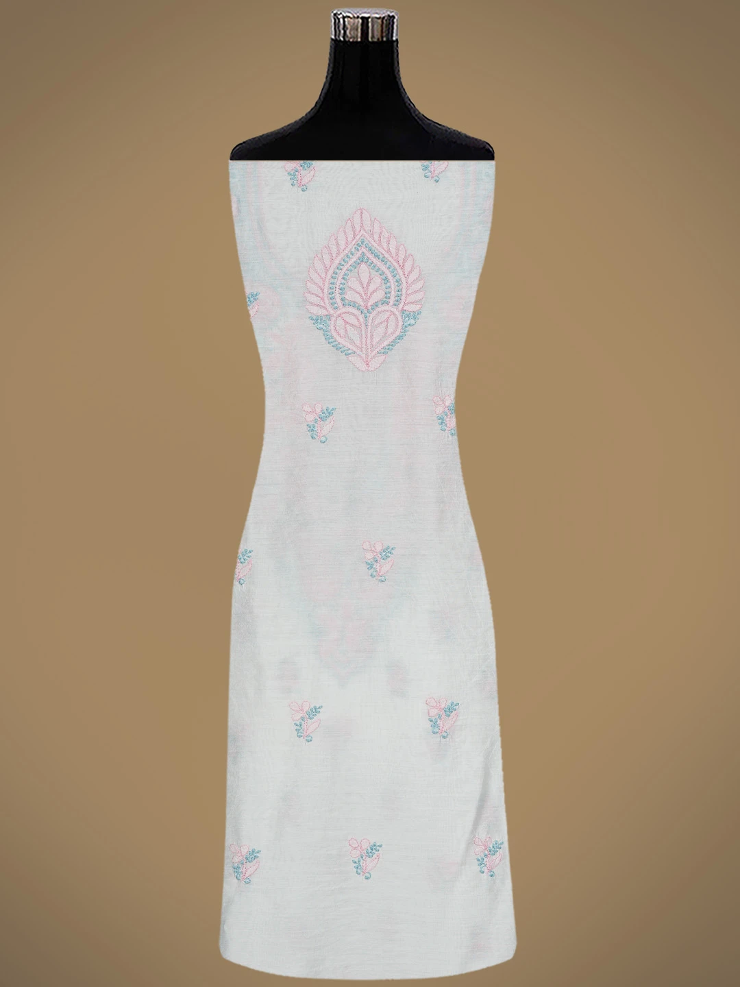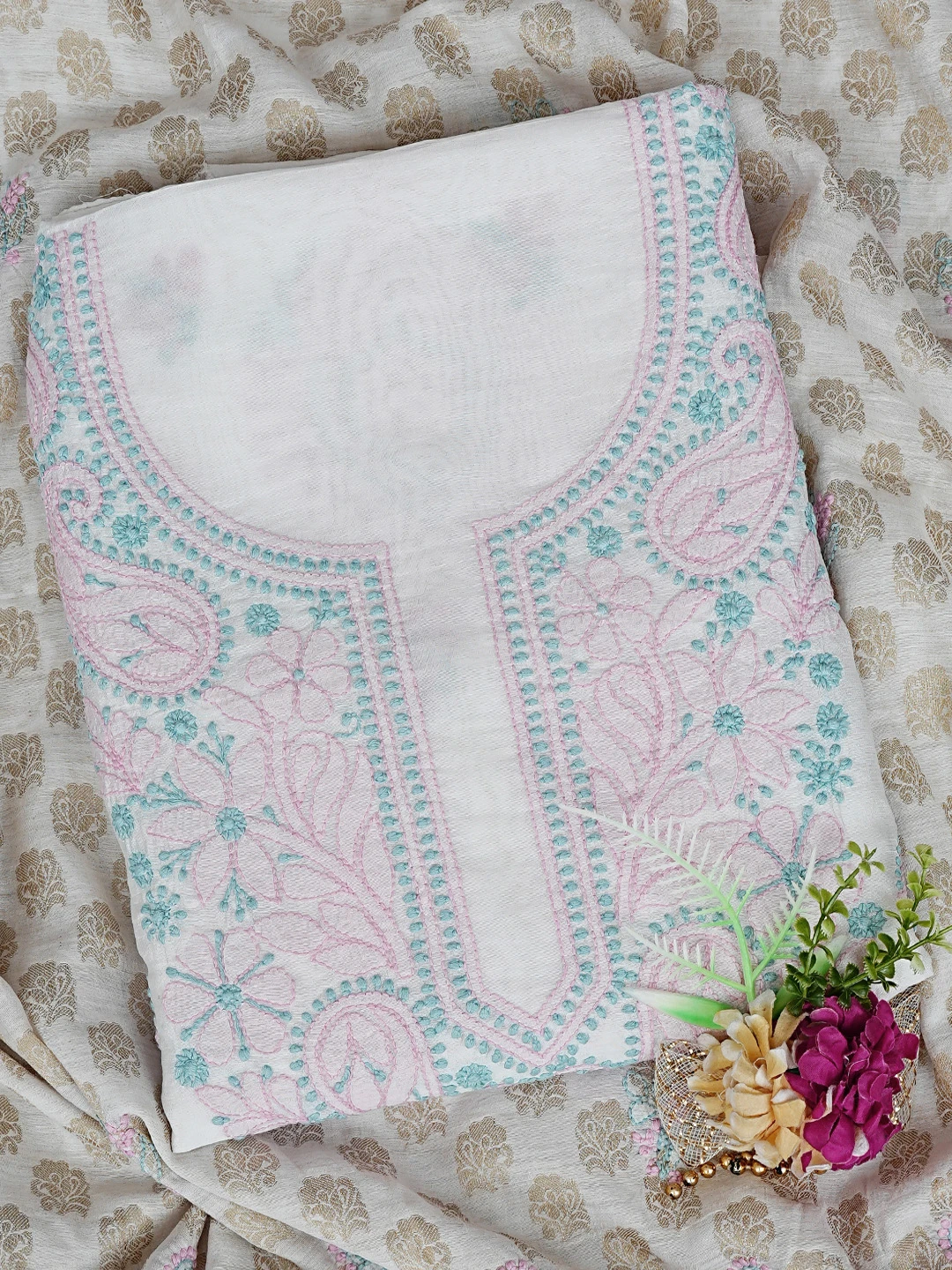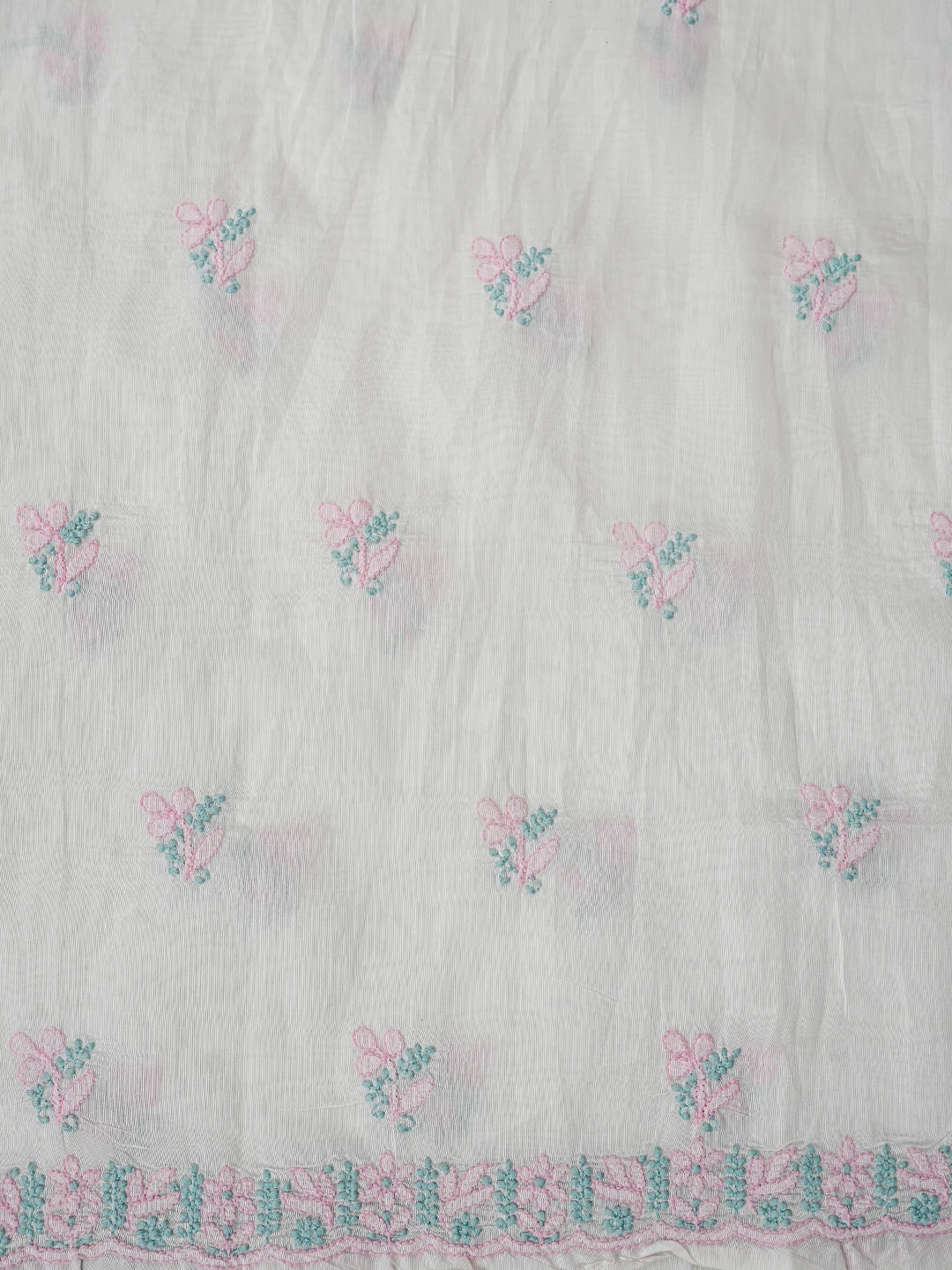 Ada Hand Embroidered White Chanderi Lucknowi Chikankari Unstitched Kurta Dupatta Set 01A871552