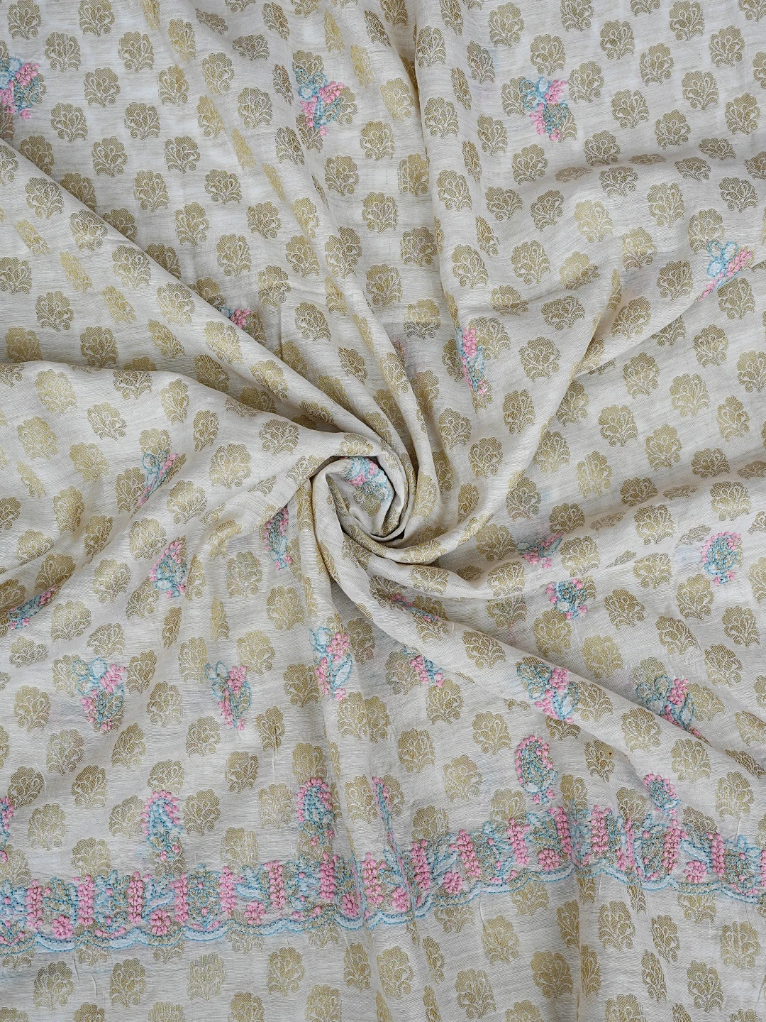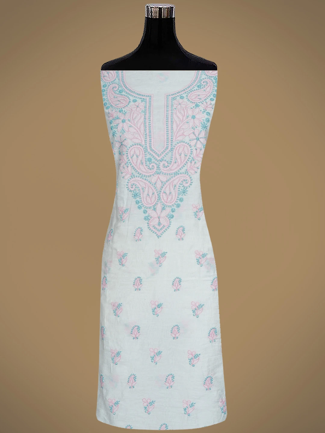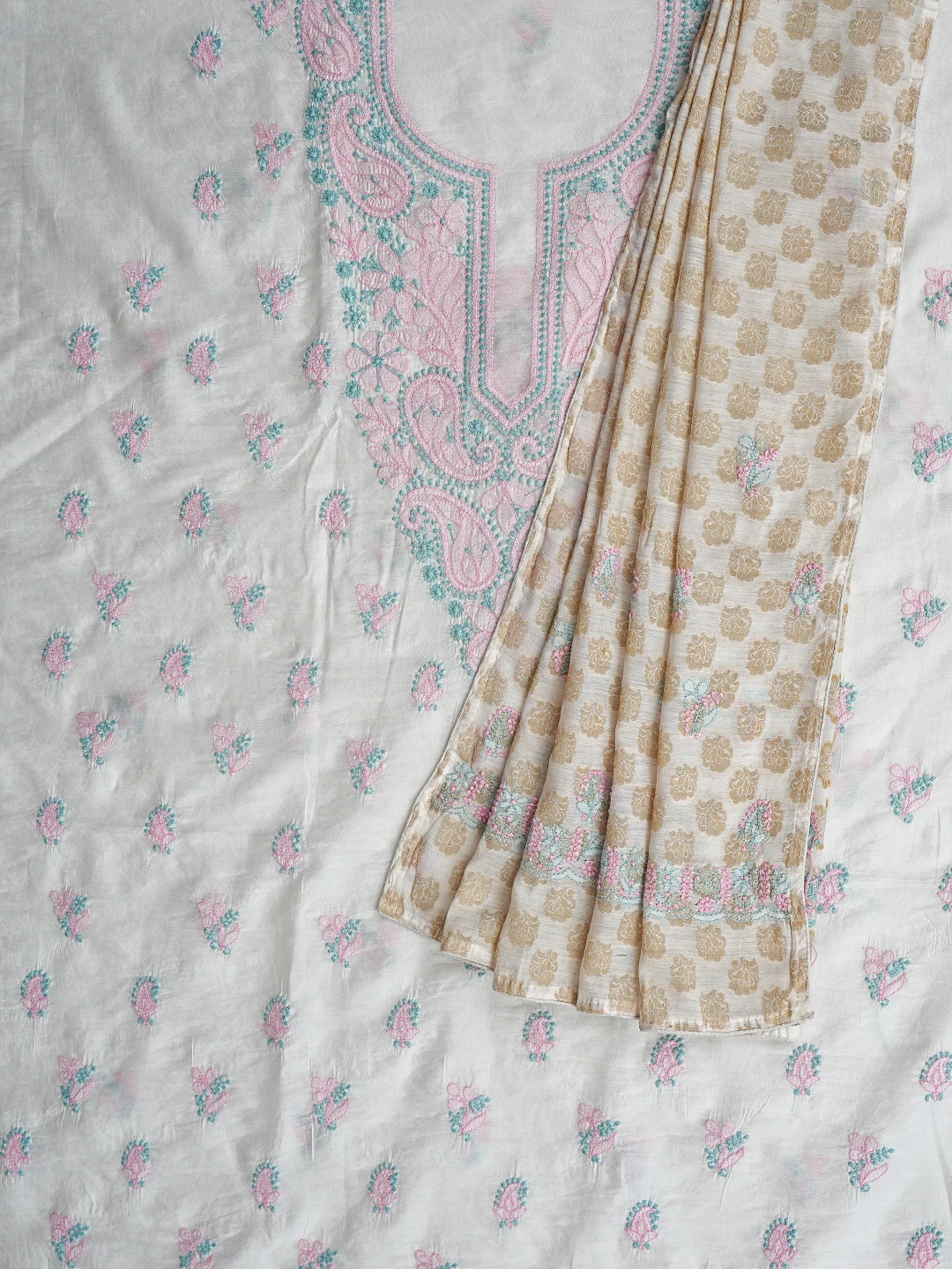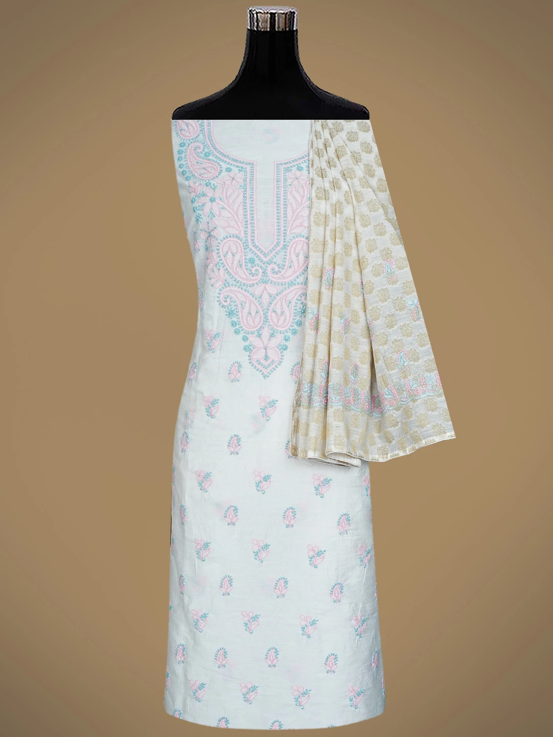 Ada Hand Embroidered White Chanderi Lucknowi Chikankari Unstitched Kurta Dupatta Set 01A871552