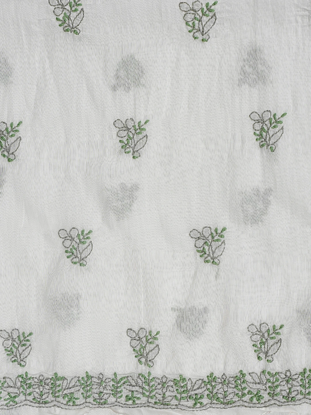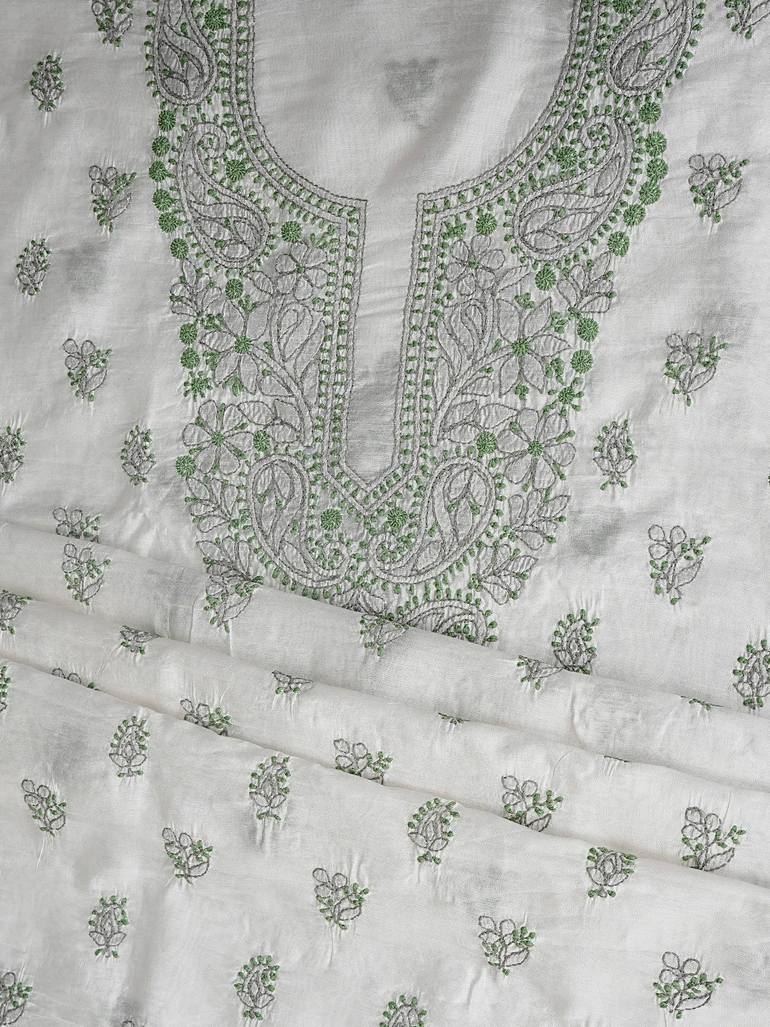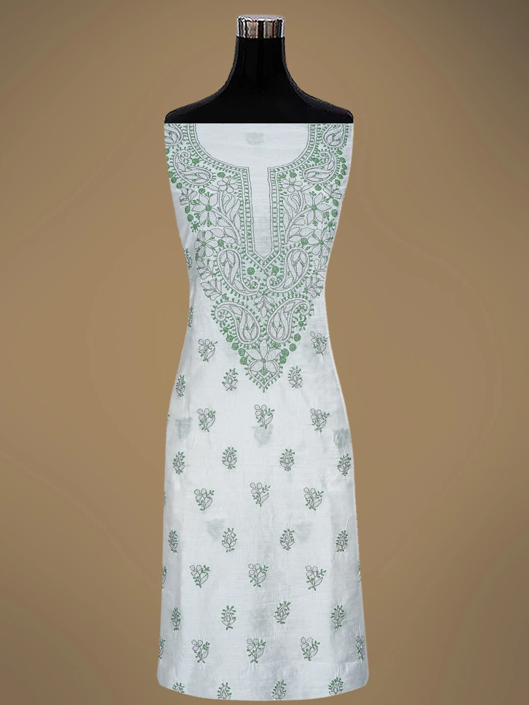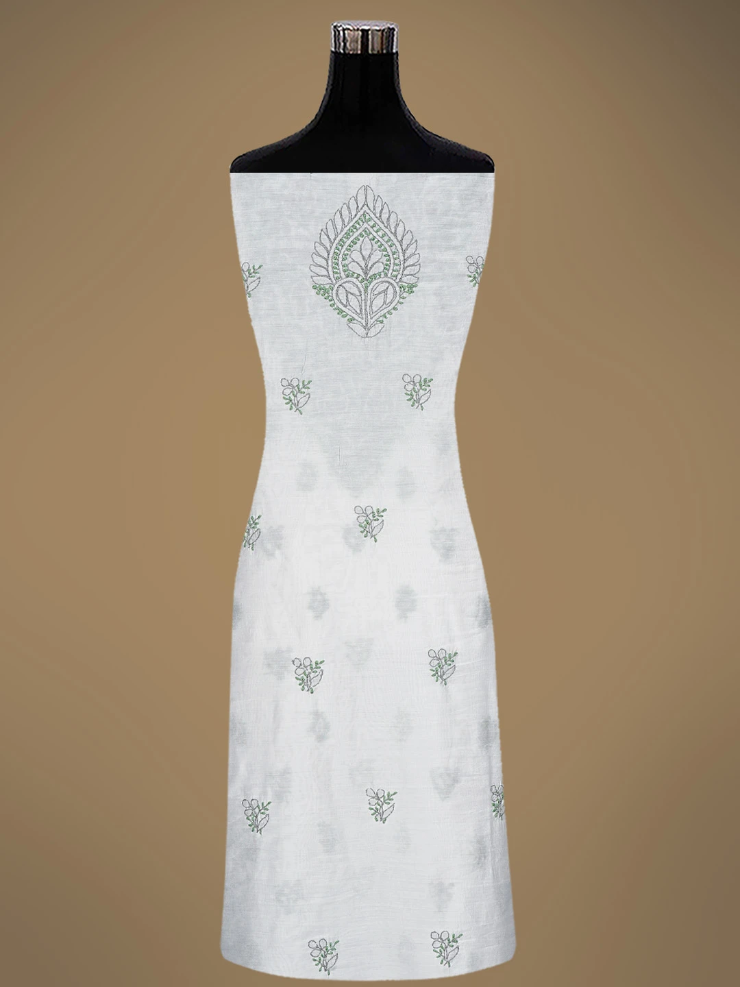 Ada Hand Embroidered White Chanderi Lucknowi Chikankari Unstitched Kurta Dupatta Set 01A871555