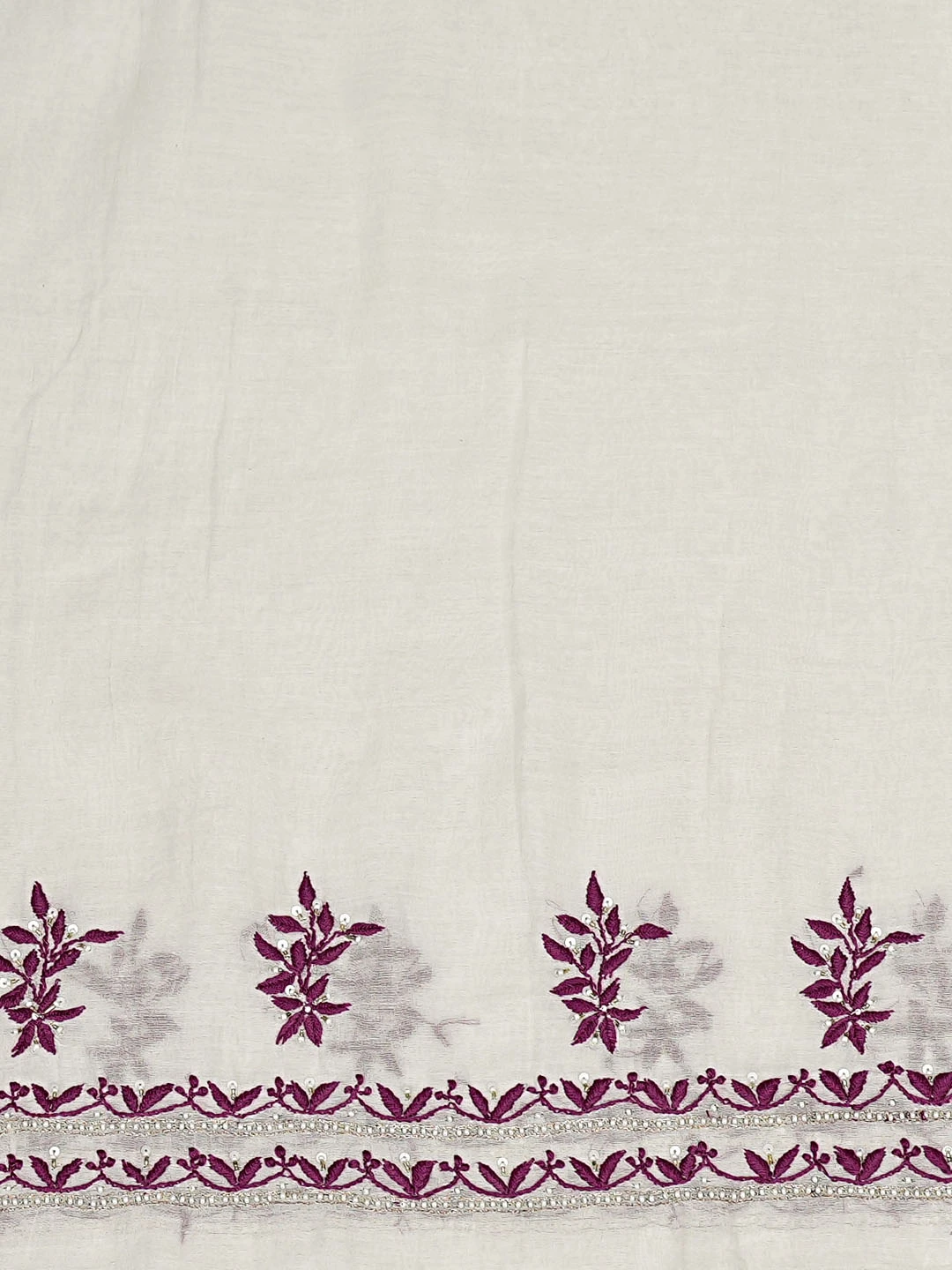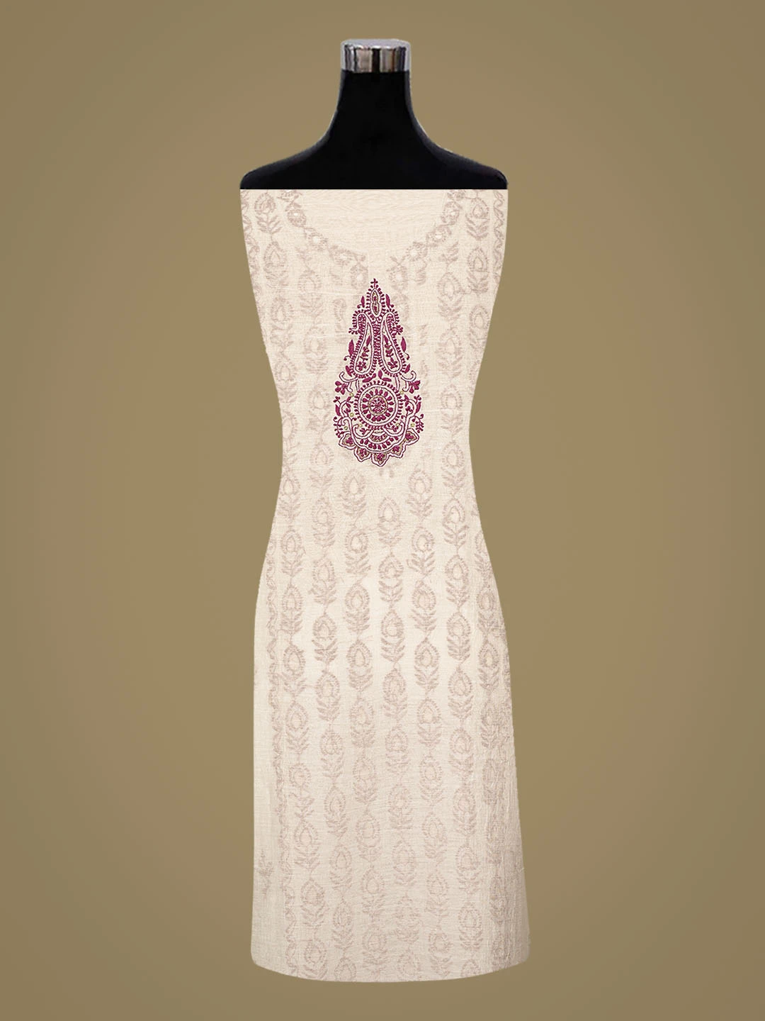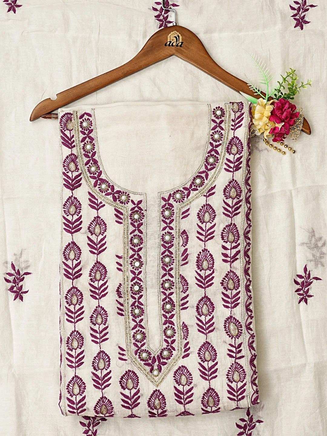 Ada Hand Embroidered White Chanderi Lucknowi Chikankari Unstitched Kurta Dupatta Set With Cutdana Work 01A517018
