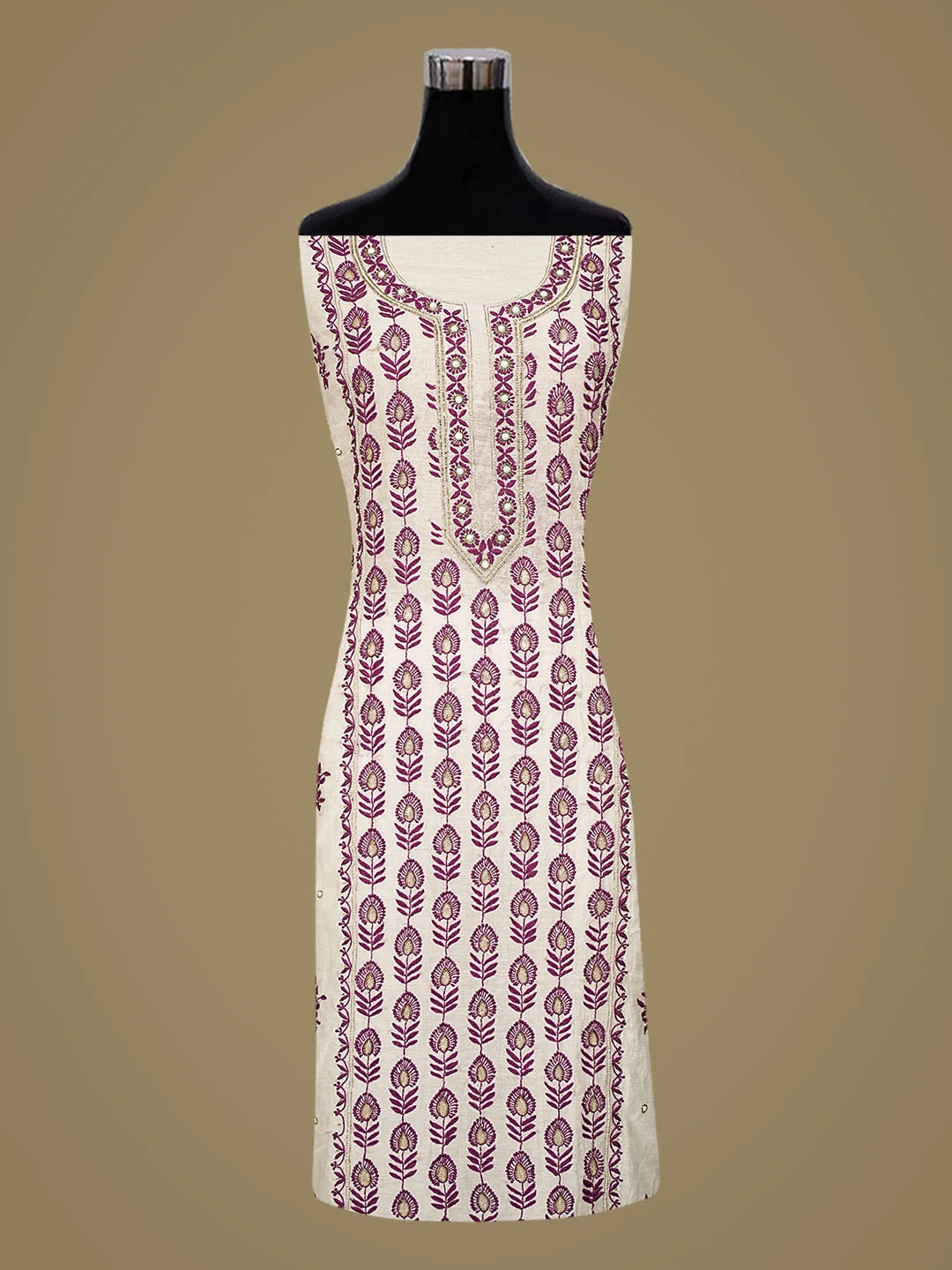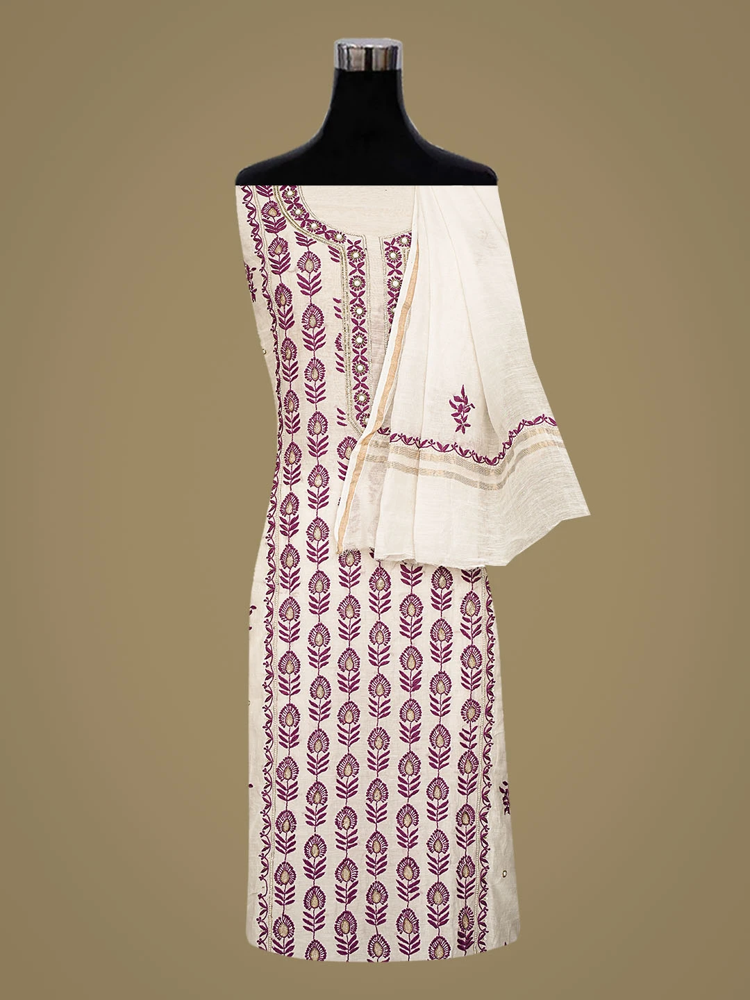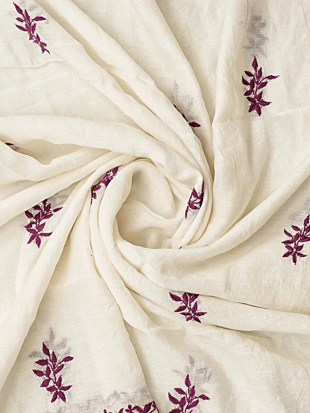 Ada Hand Embroidered White Chanderi Lucknowi Chikankari Unstitched Kurta Dupatta Set With Cutdana Work 01A517018