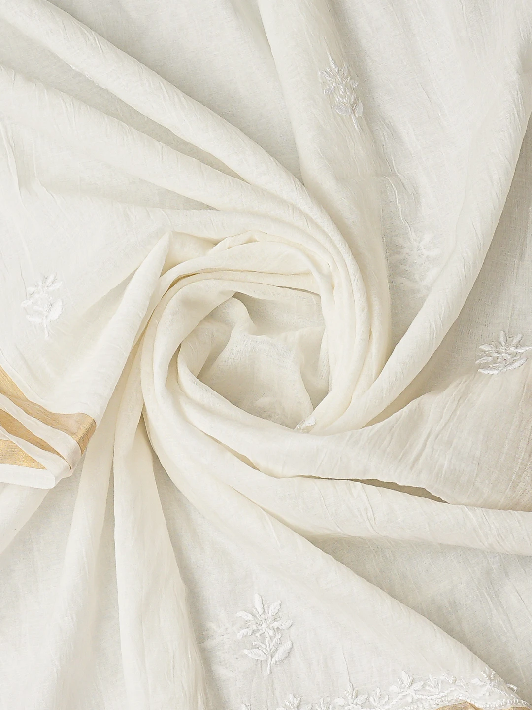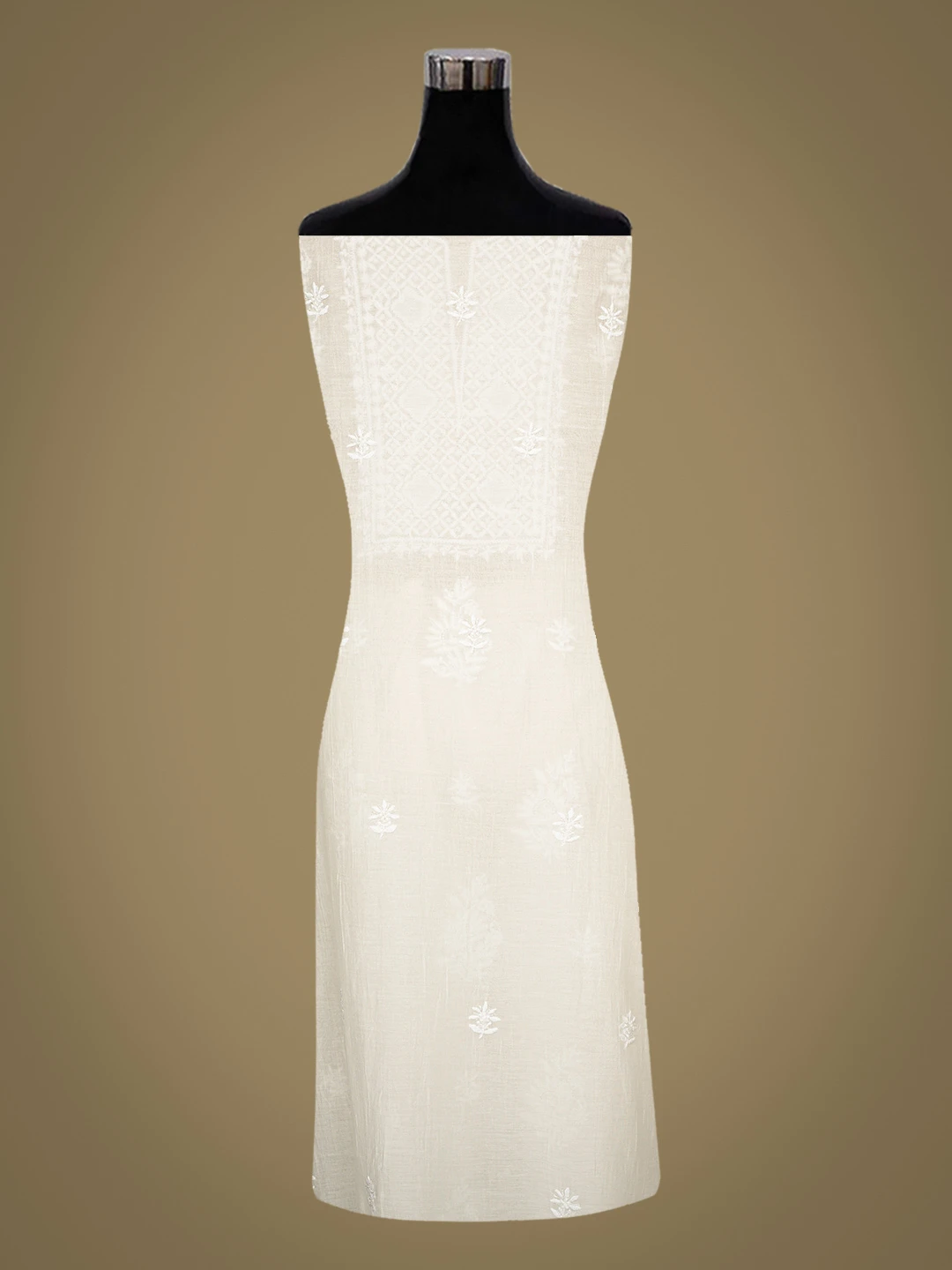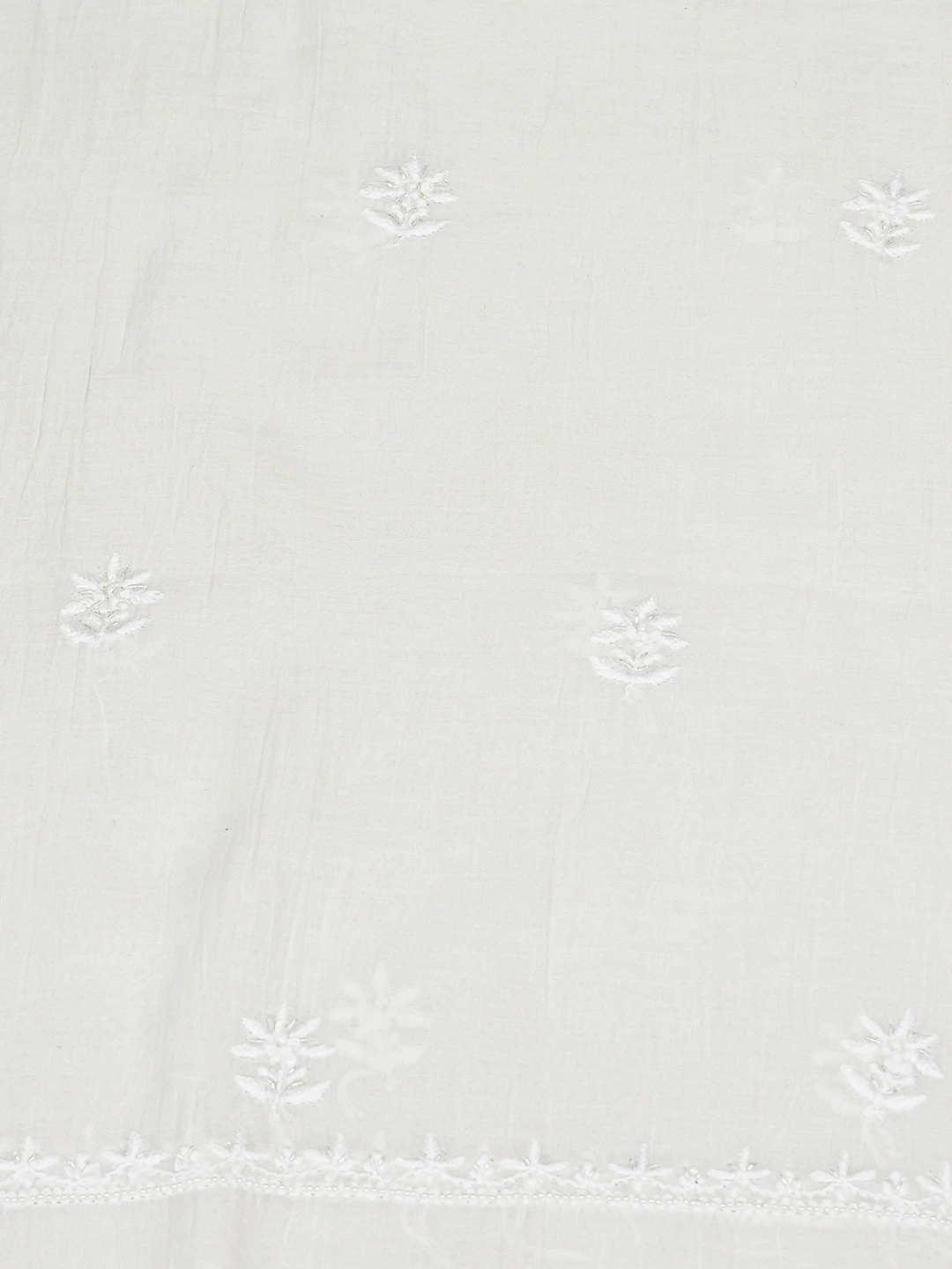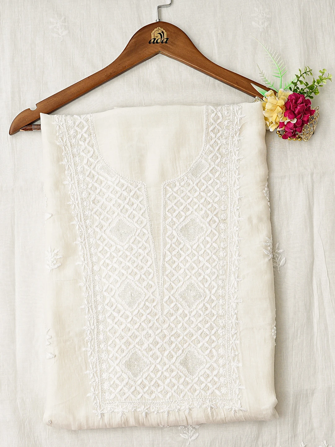 Ada Hand Embroidered White Chanderi Lucknowi Chikankari Unstitched Kurta Dupatta Set With Cutdana Work 01A858790