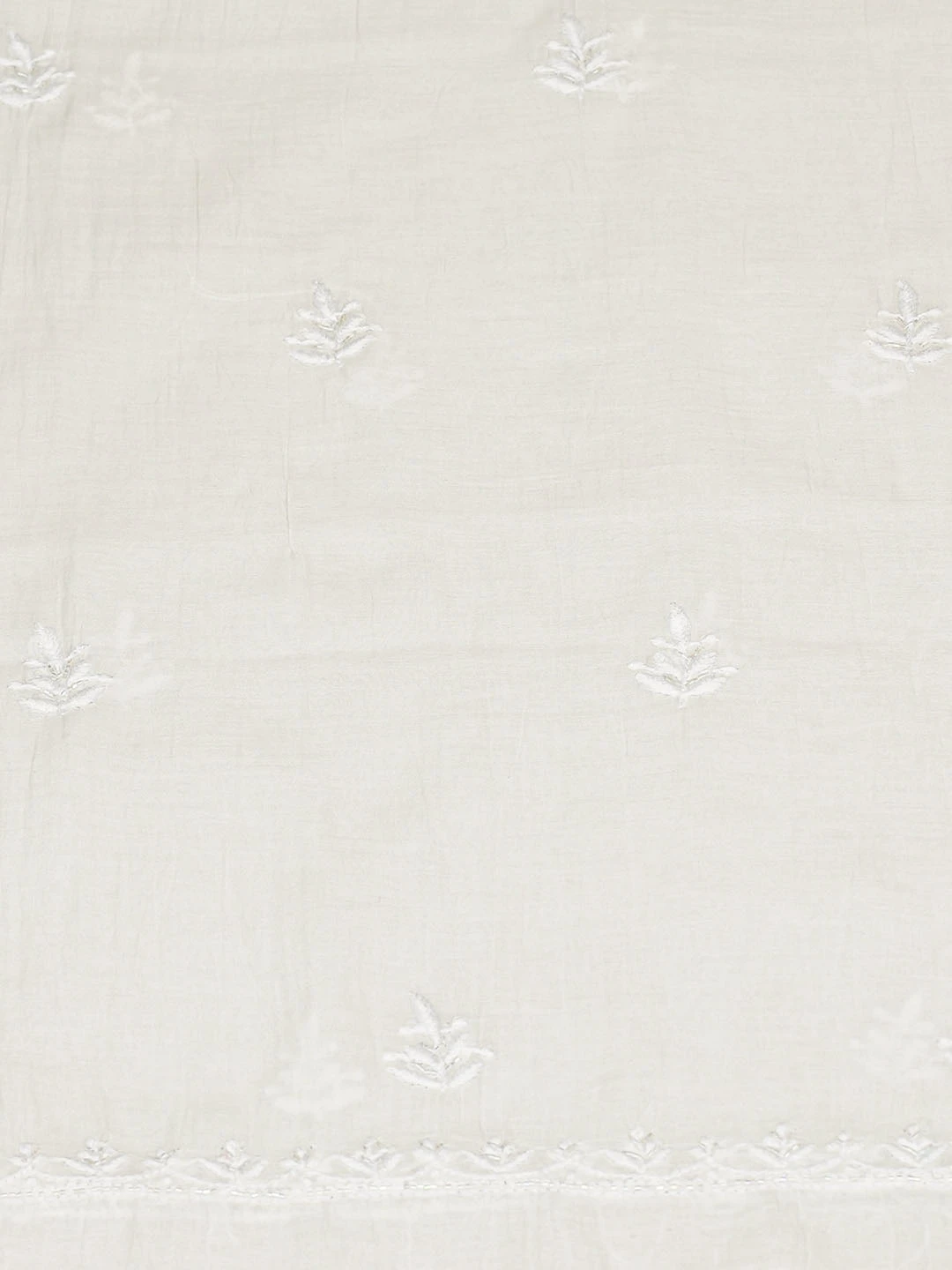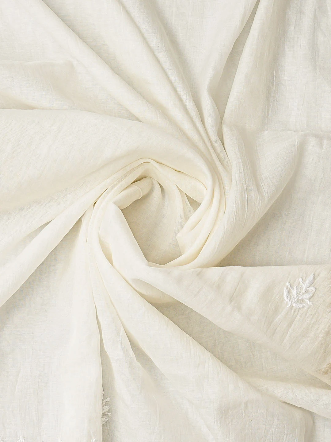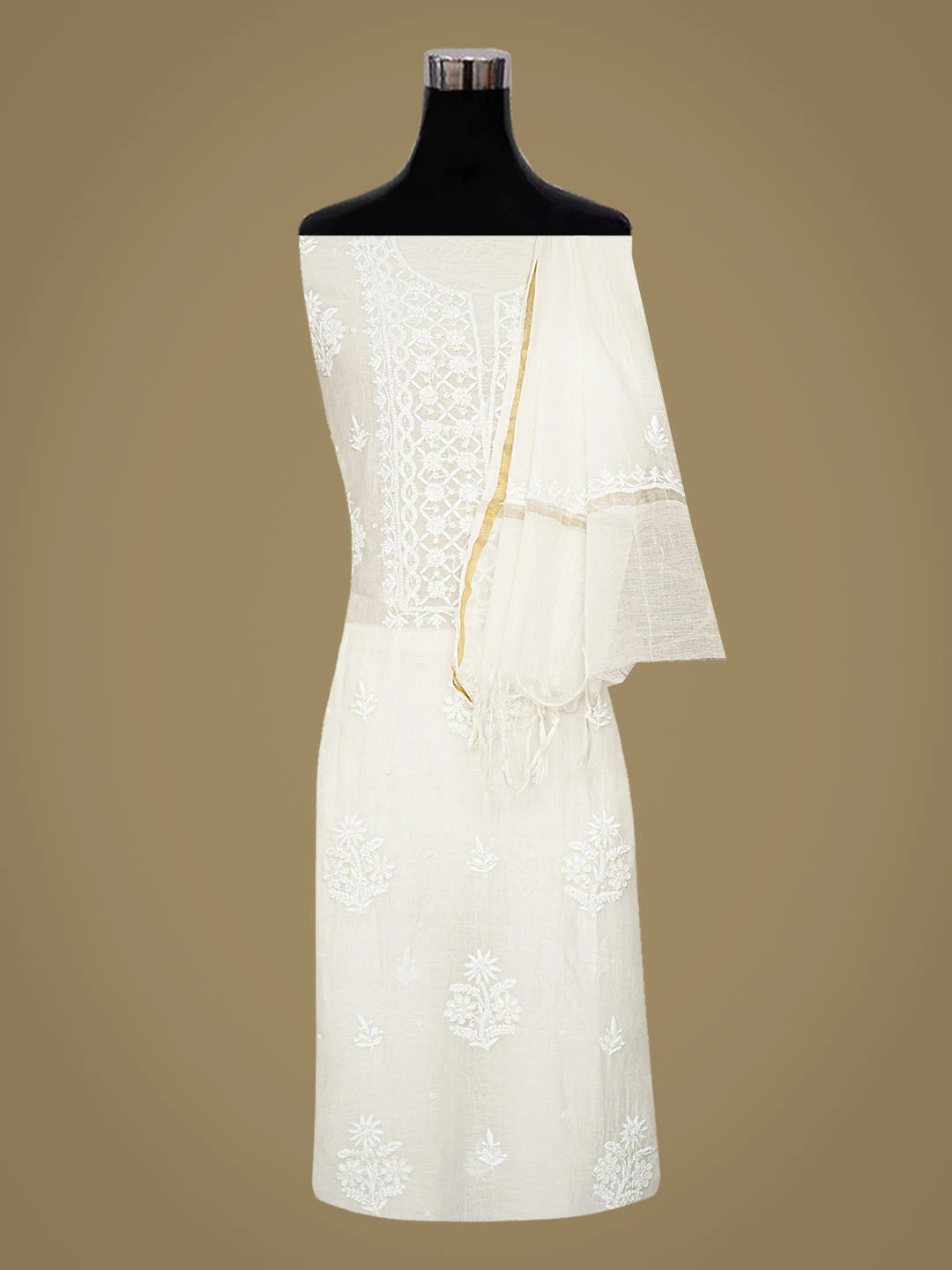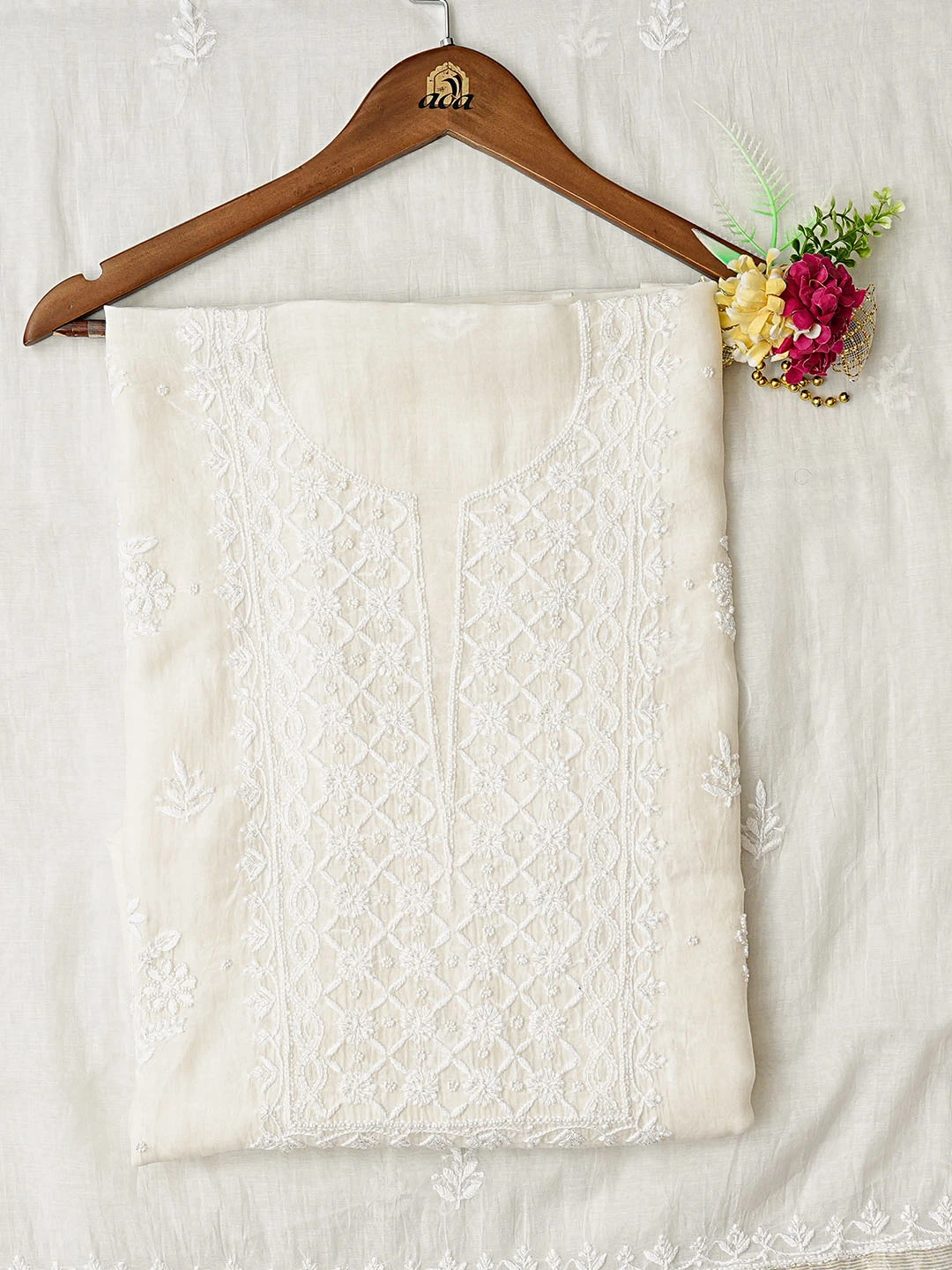 Ada Hand Embroidered White Chanderi Lucknowi Chikankari Unstitched Kurta Dupatta Set With Cutdana Work 01A858797