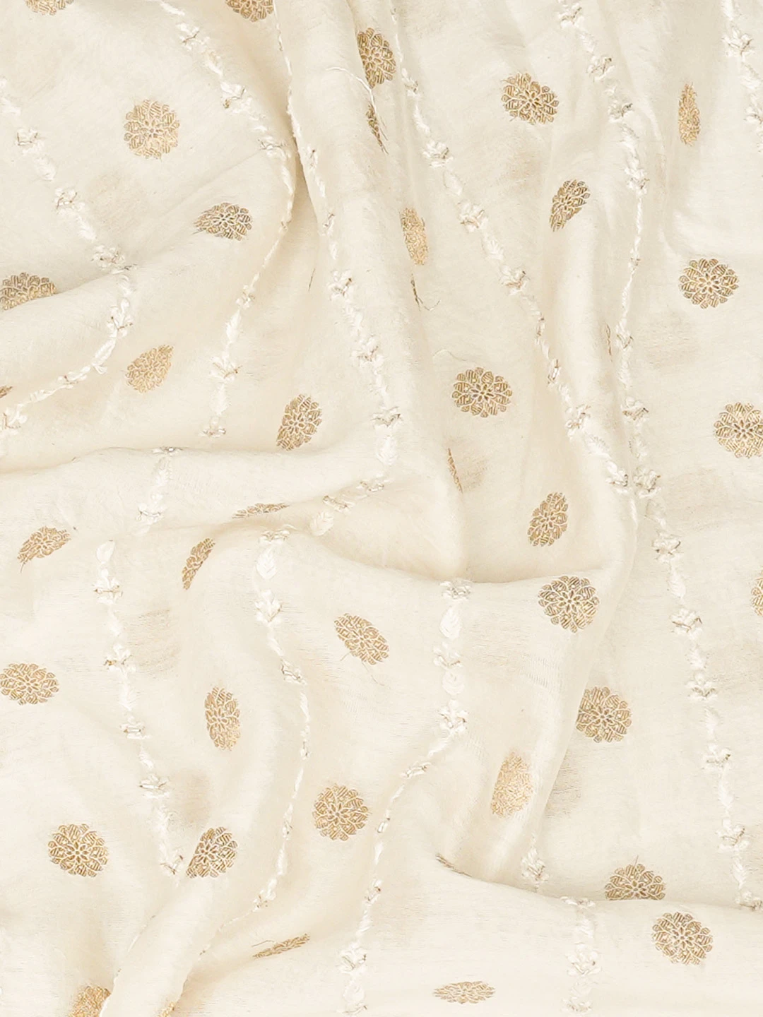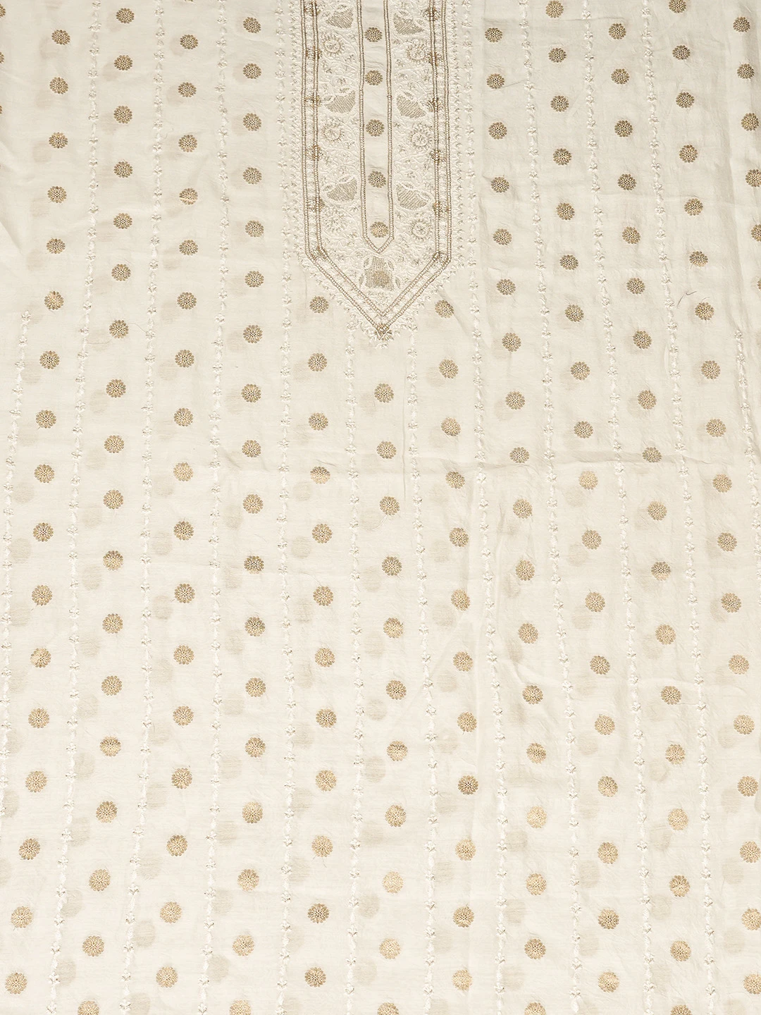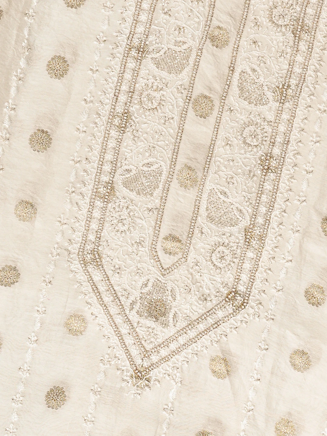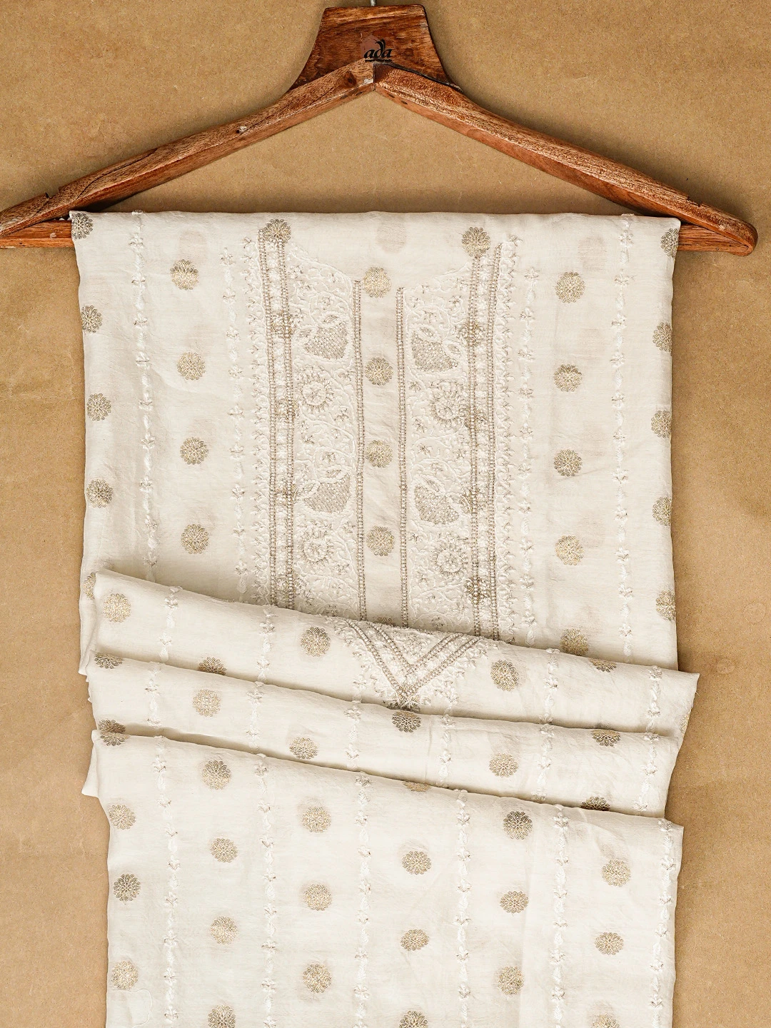 Ada Hand Embroidered White Chanderi Lucknowi Chikankari Unstitched Men's Kurta Piece With Cutdana Work 01A867129