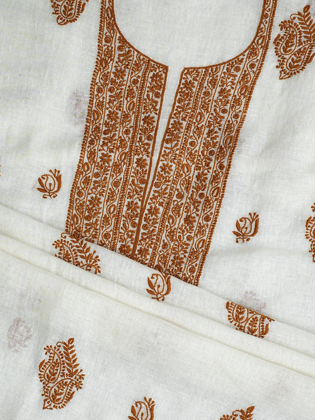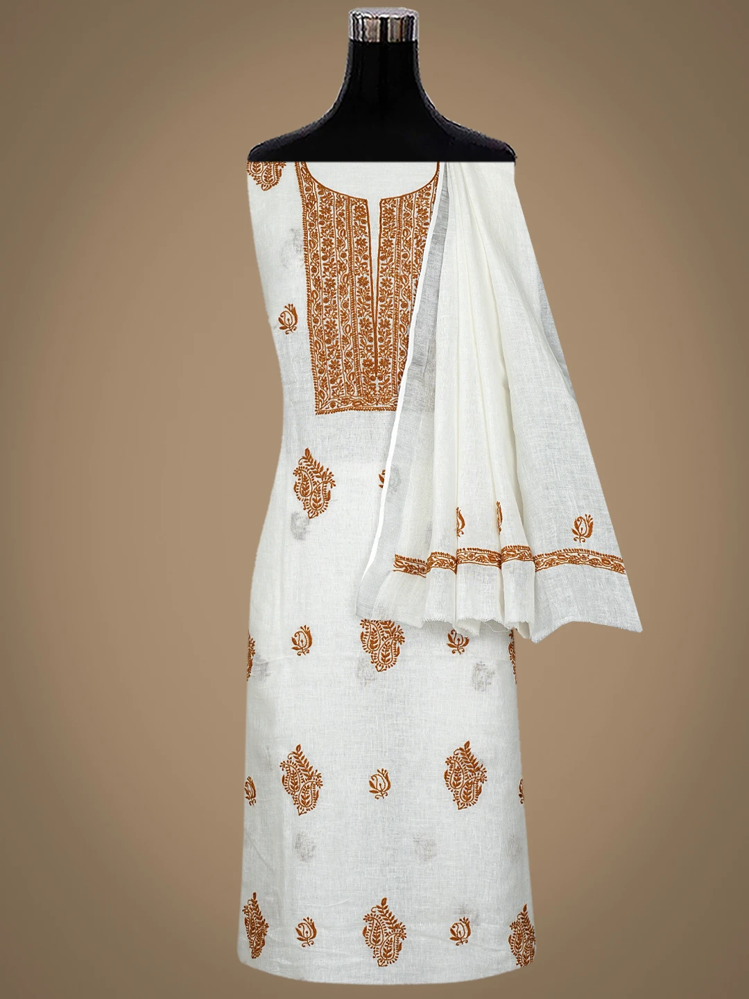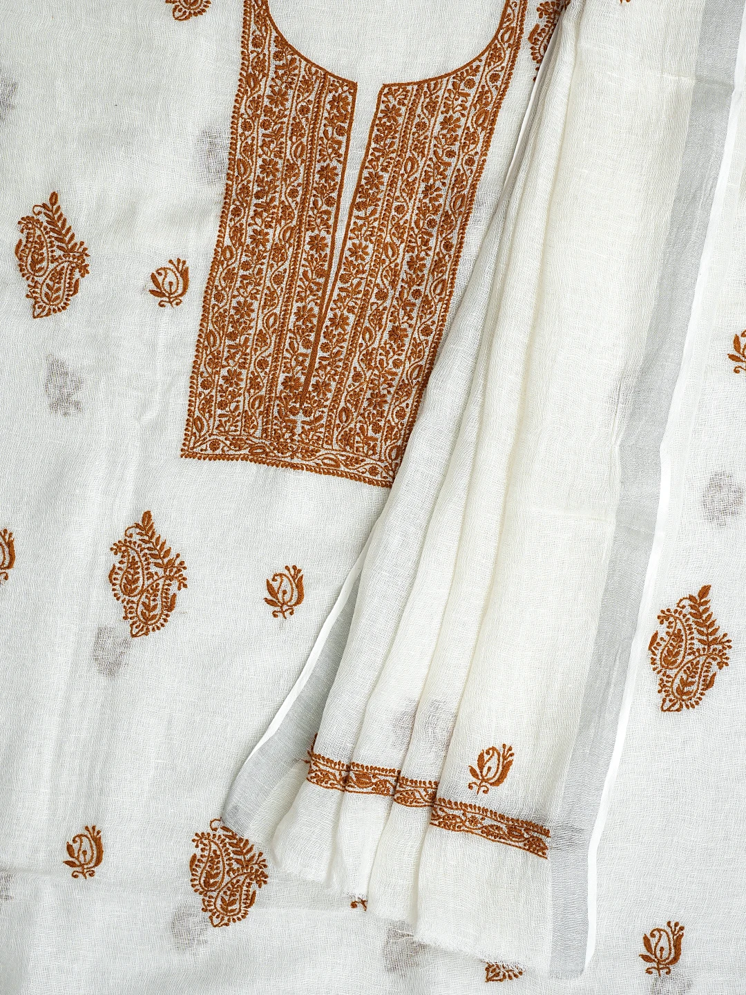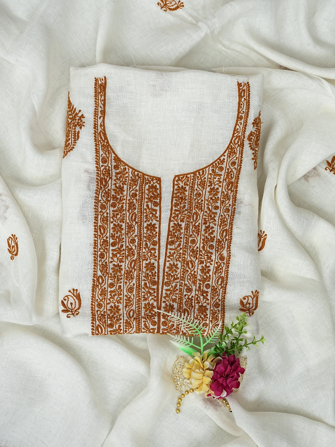 Ada Hand Embroidered White Cosmic Latte Khadi Lucknowi Chikankari Unstitched Kurta Dupatta Set 01A841573