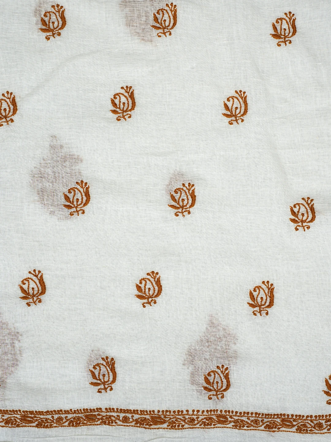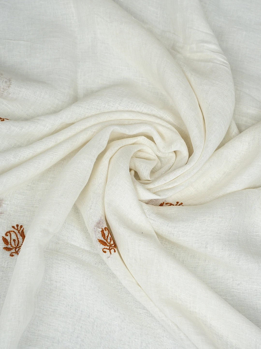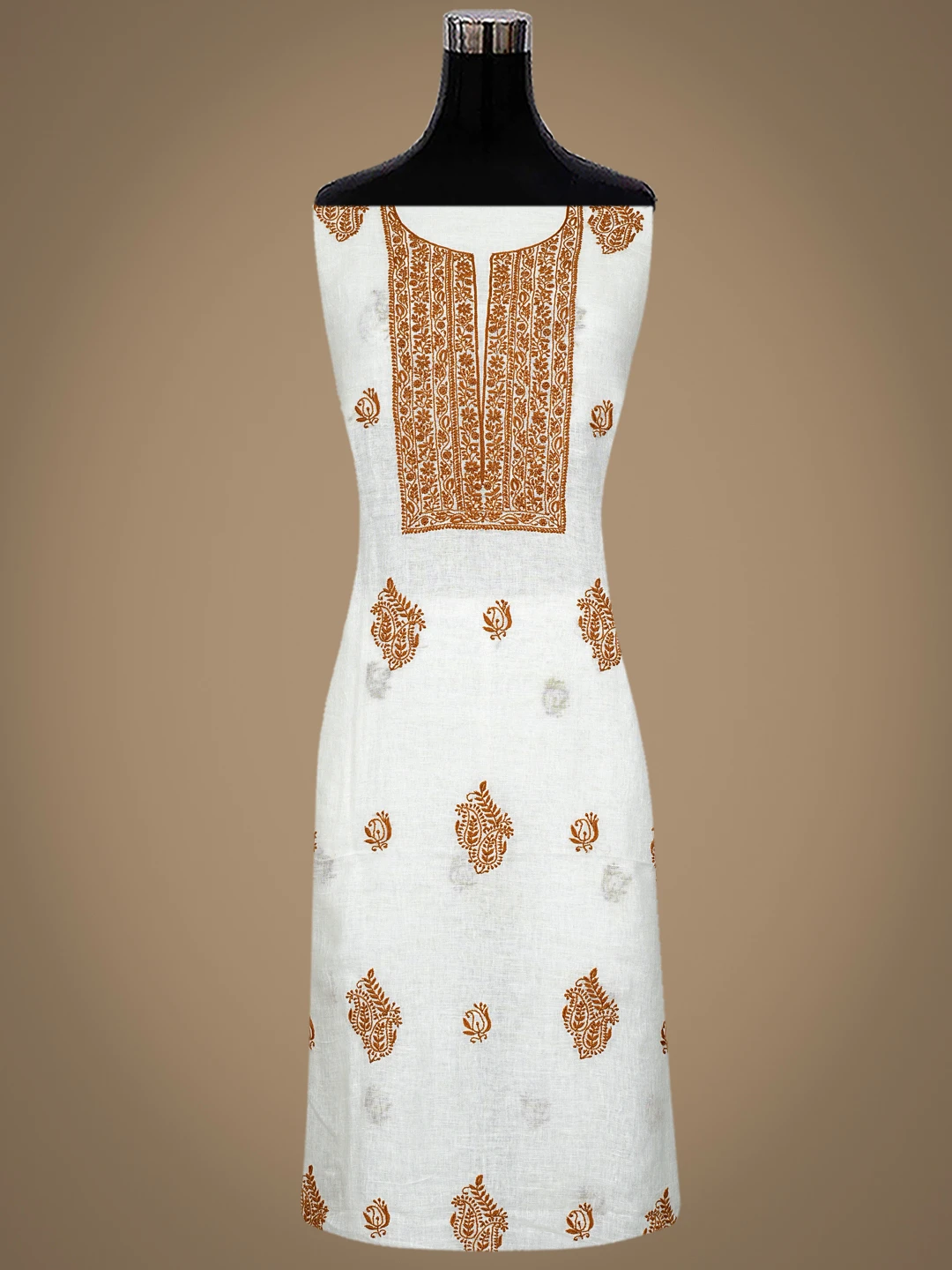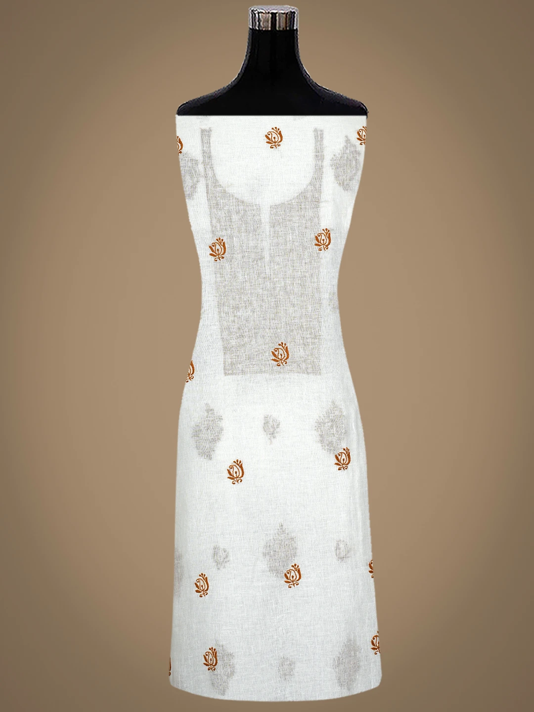 Ada Hand Embroidered White Cosmic Latte Khadi Lucknowi Chikankari Unstitched Kurta Dupatta Set 01A841573