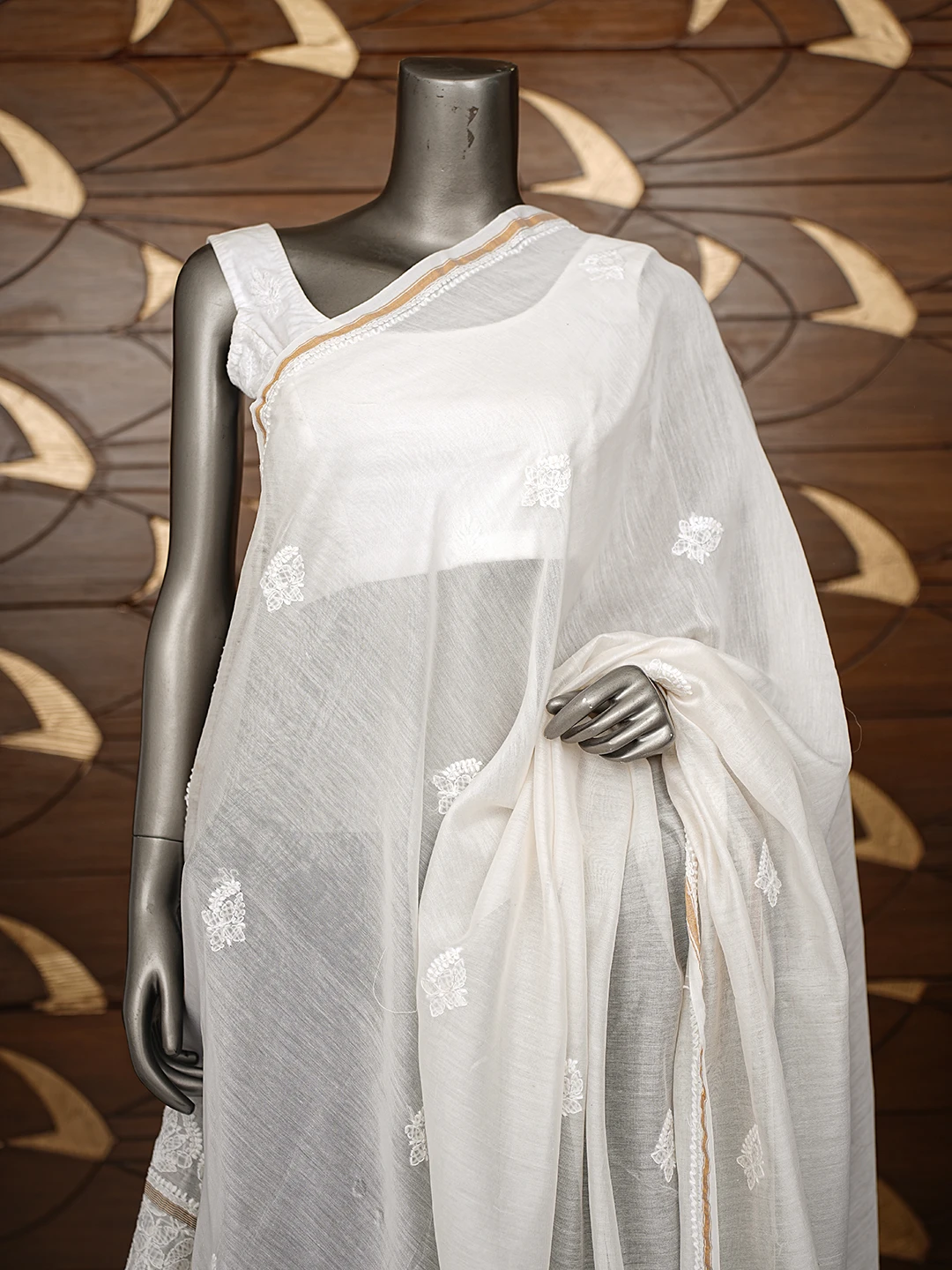 Ada Hand Embroidered White Cotton Lucknowi Chikankari Dupatta 01A484755