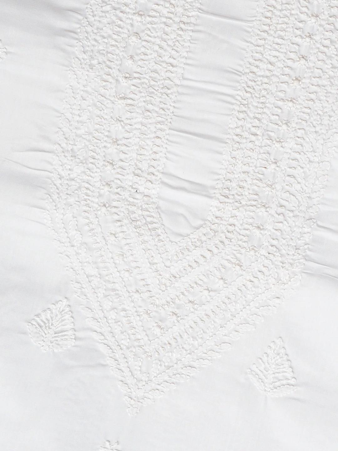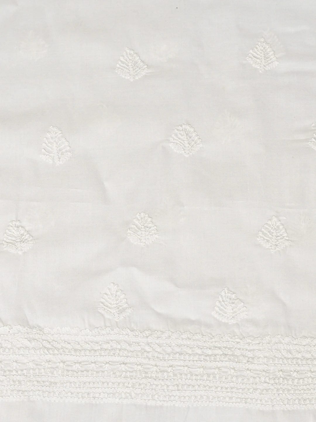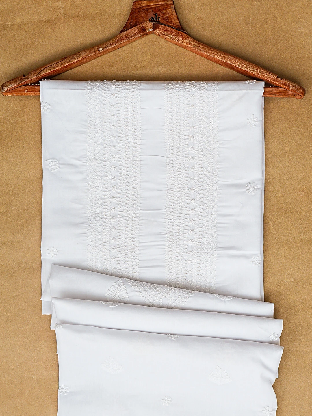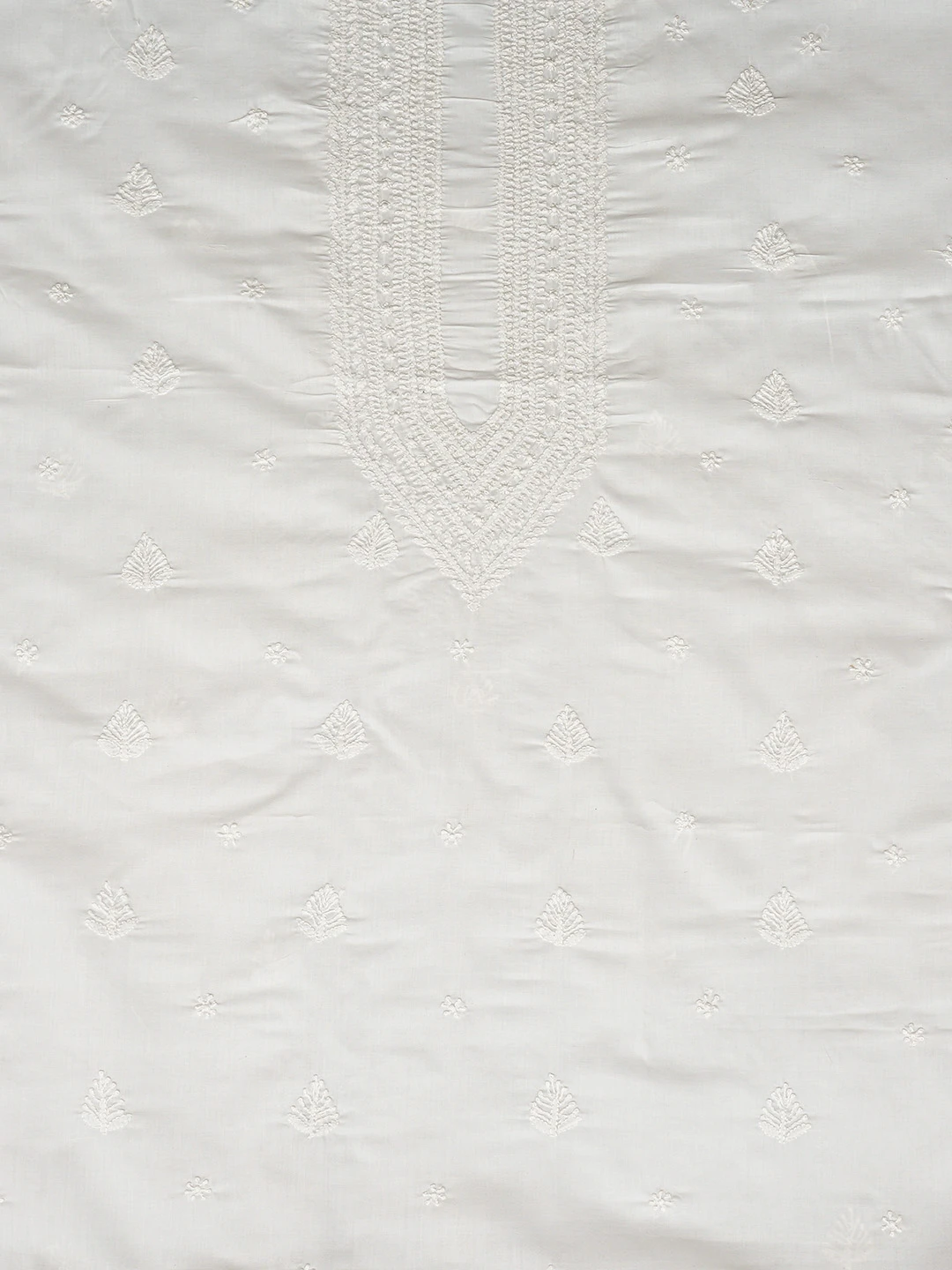 Ada Hand Embroidered White Cotton Lucknowi Chikankari Unstitched Men's Kurta Piece 01A560863