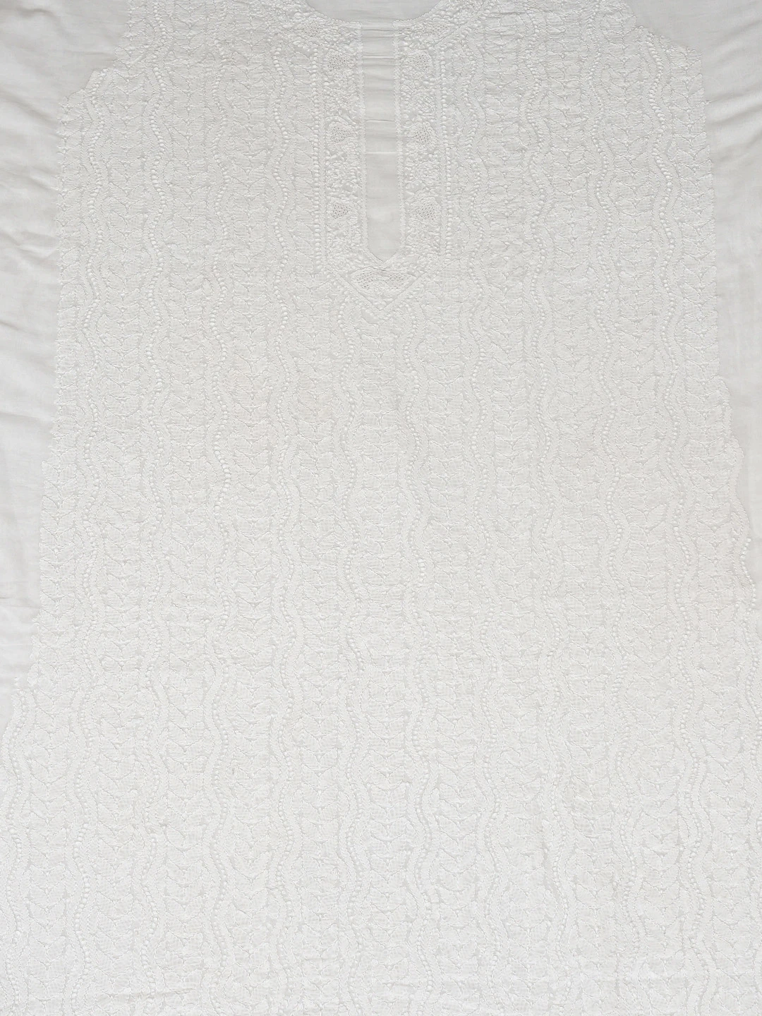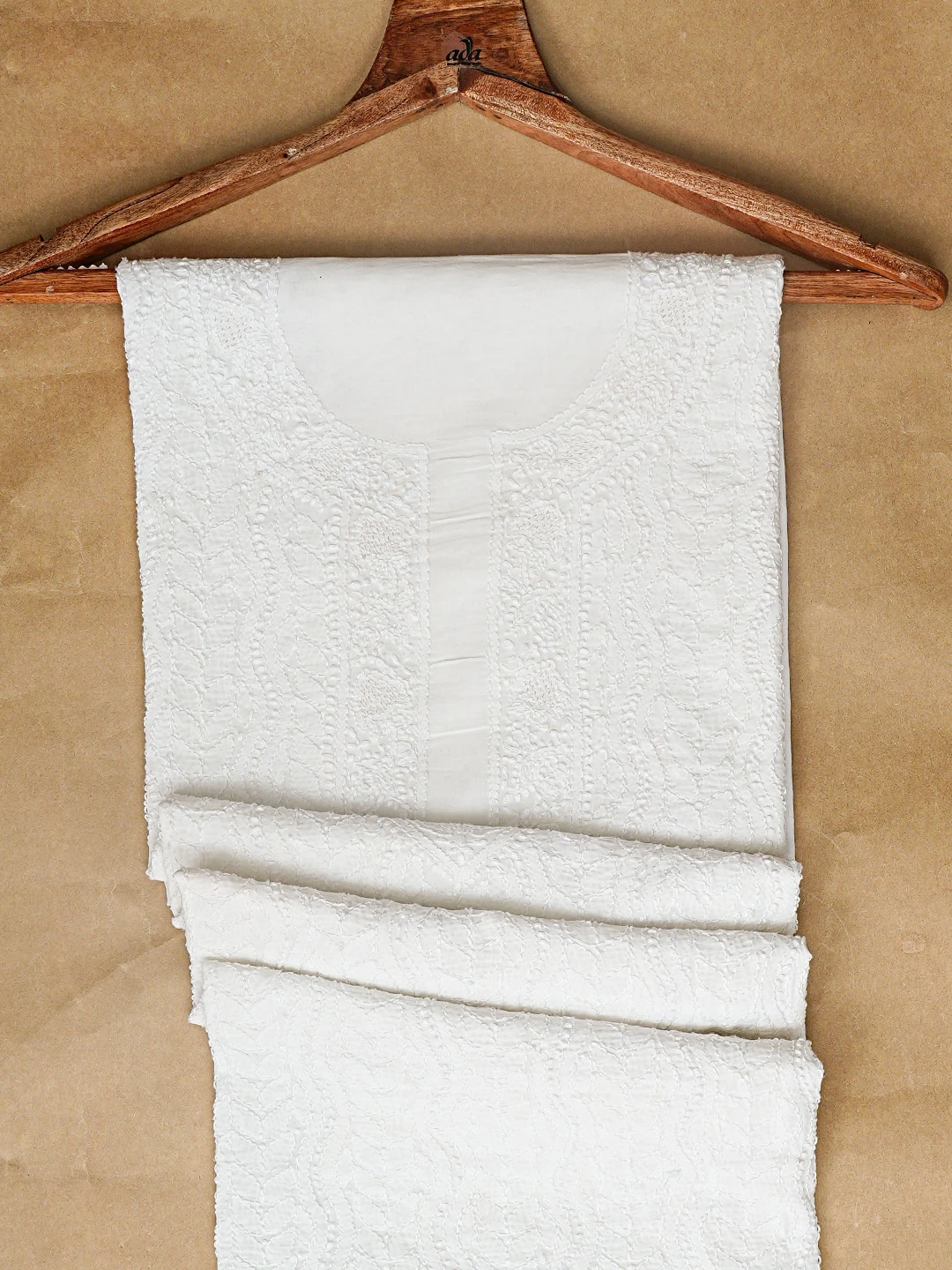 Ada Hand Embroidered White Cotton Lucknowi Chikankari Unstitched Men's Kurta Piece 01A864151