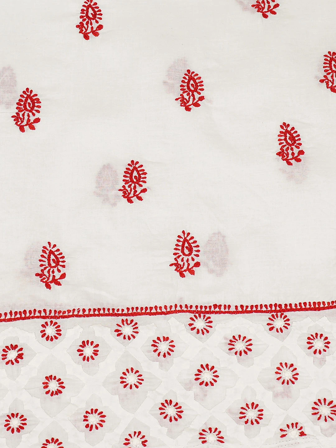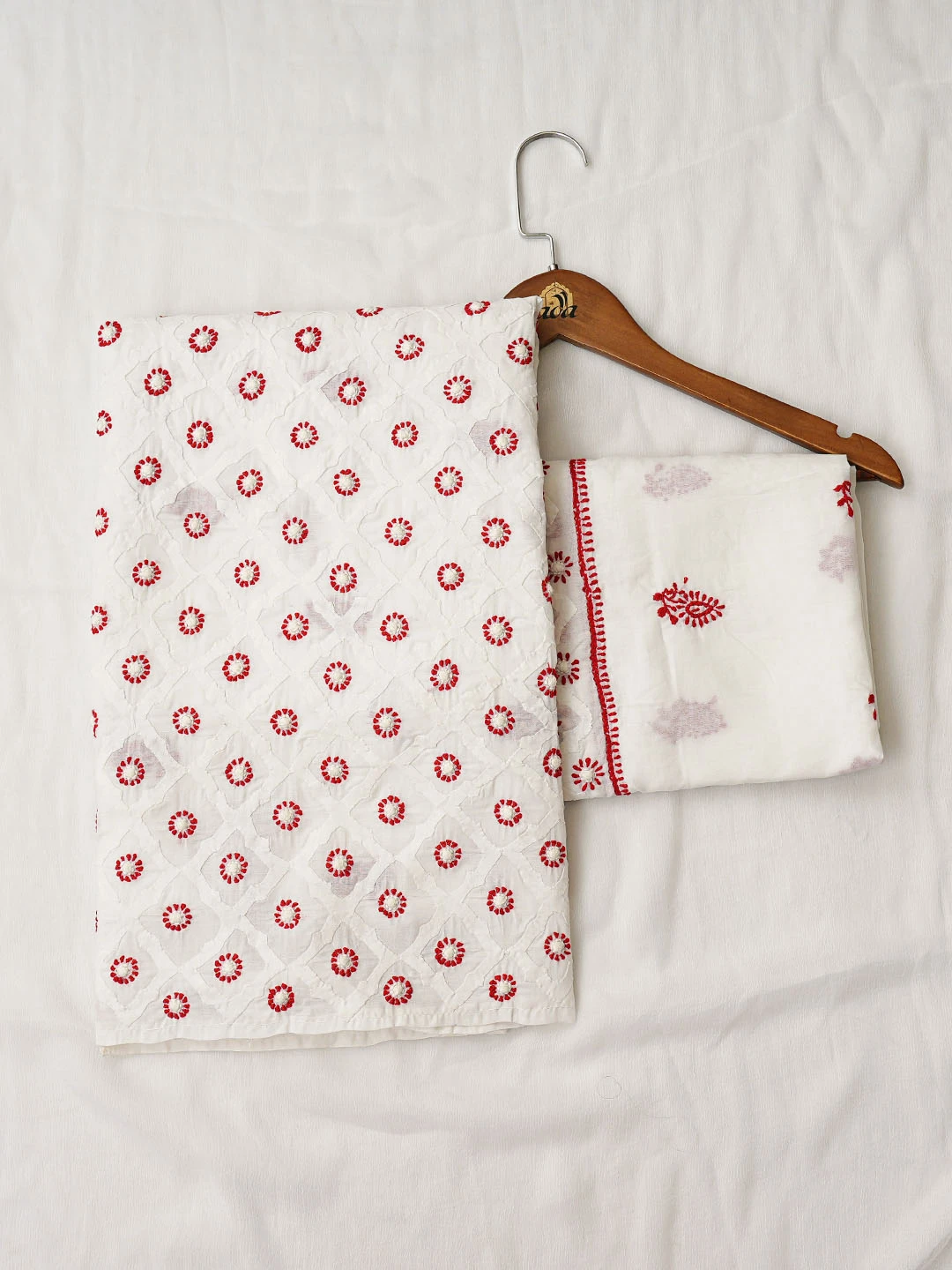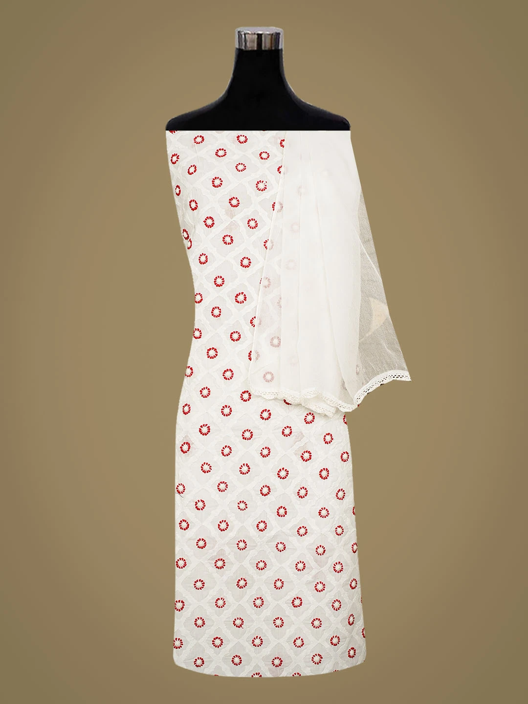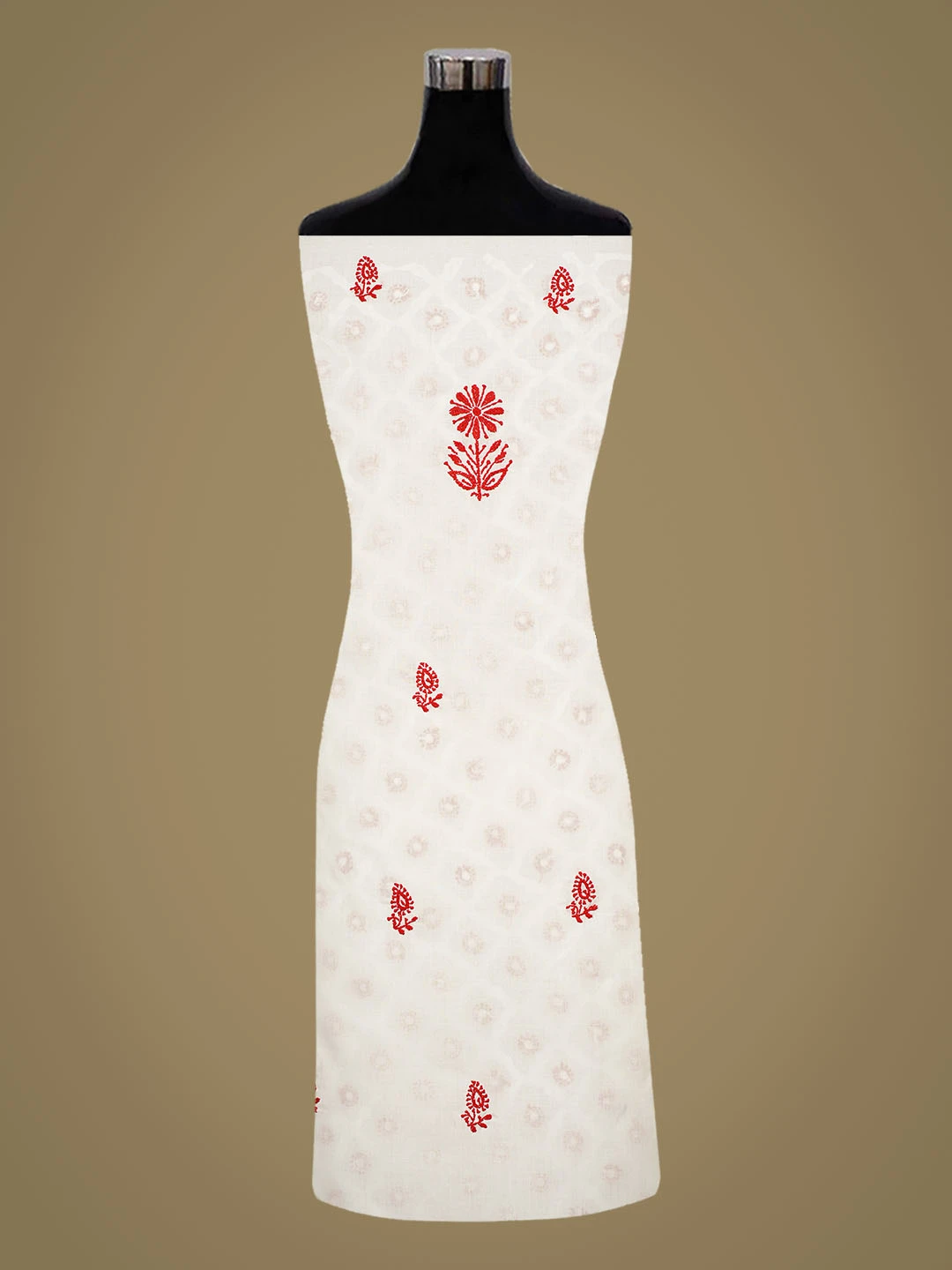 Ada Hand Embroidered White Cotton Lucknowi Chikankari Unstitched Suit Piece 01A844705