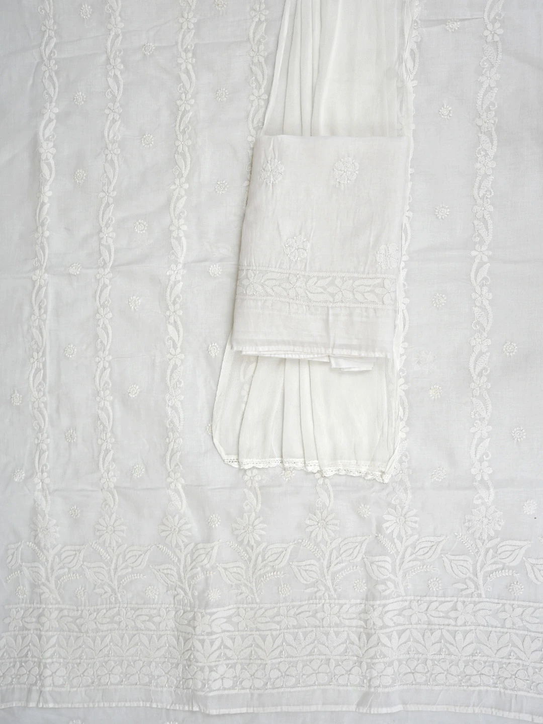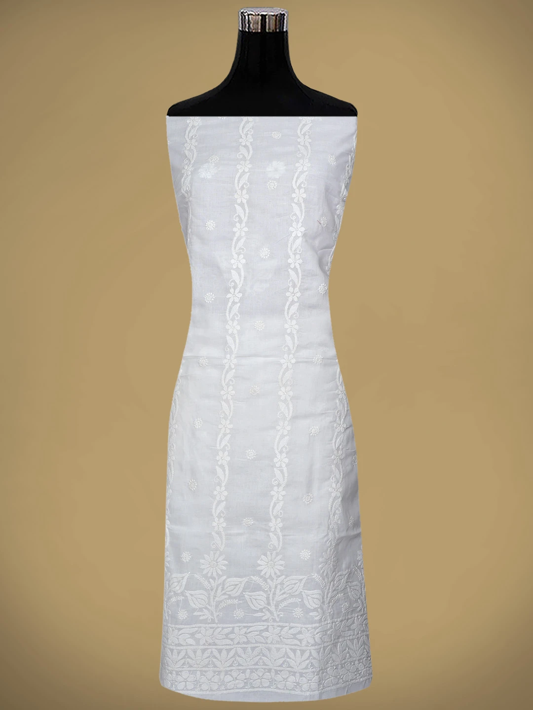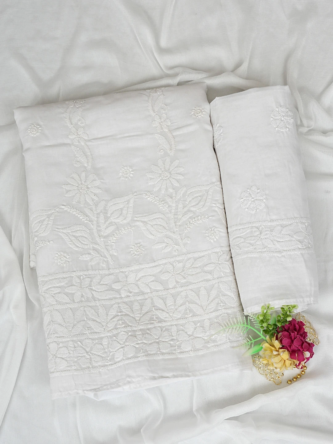 Ada Hand Embroidered White Cotton Lucknowi Chikankari Unstitched Suit Piece 01A881446