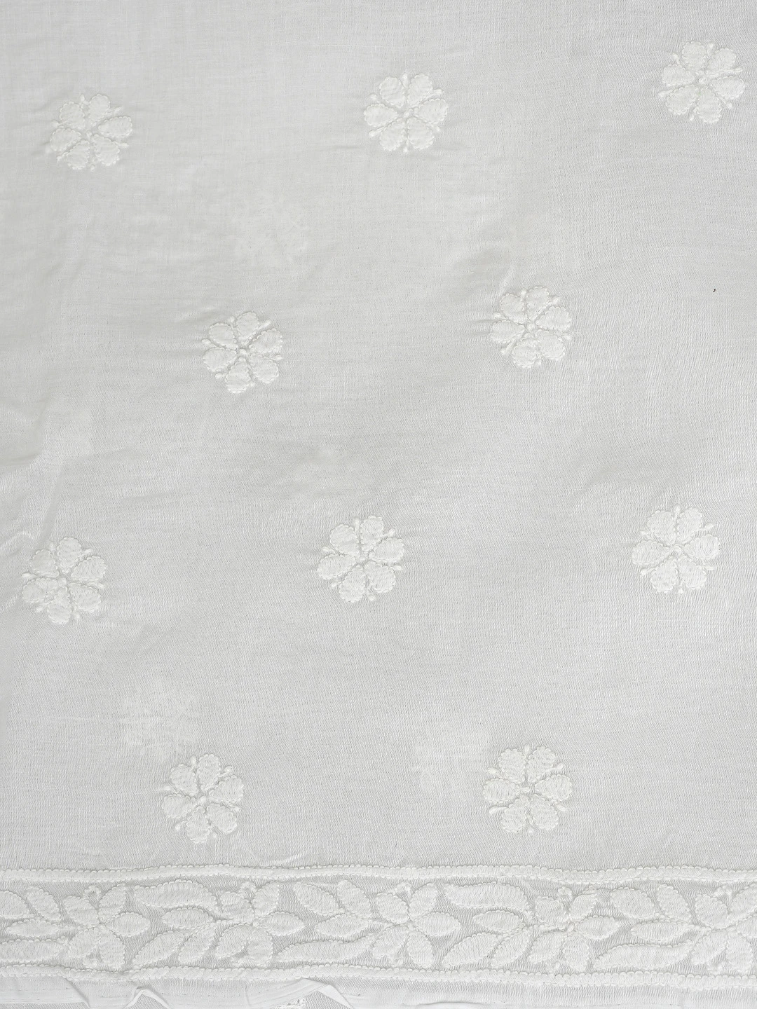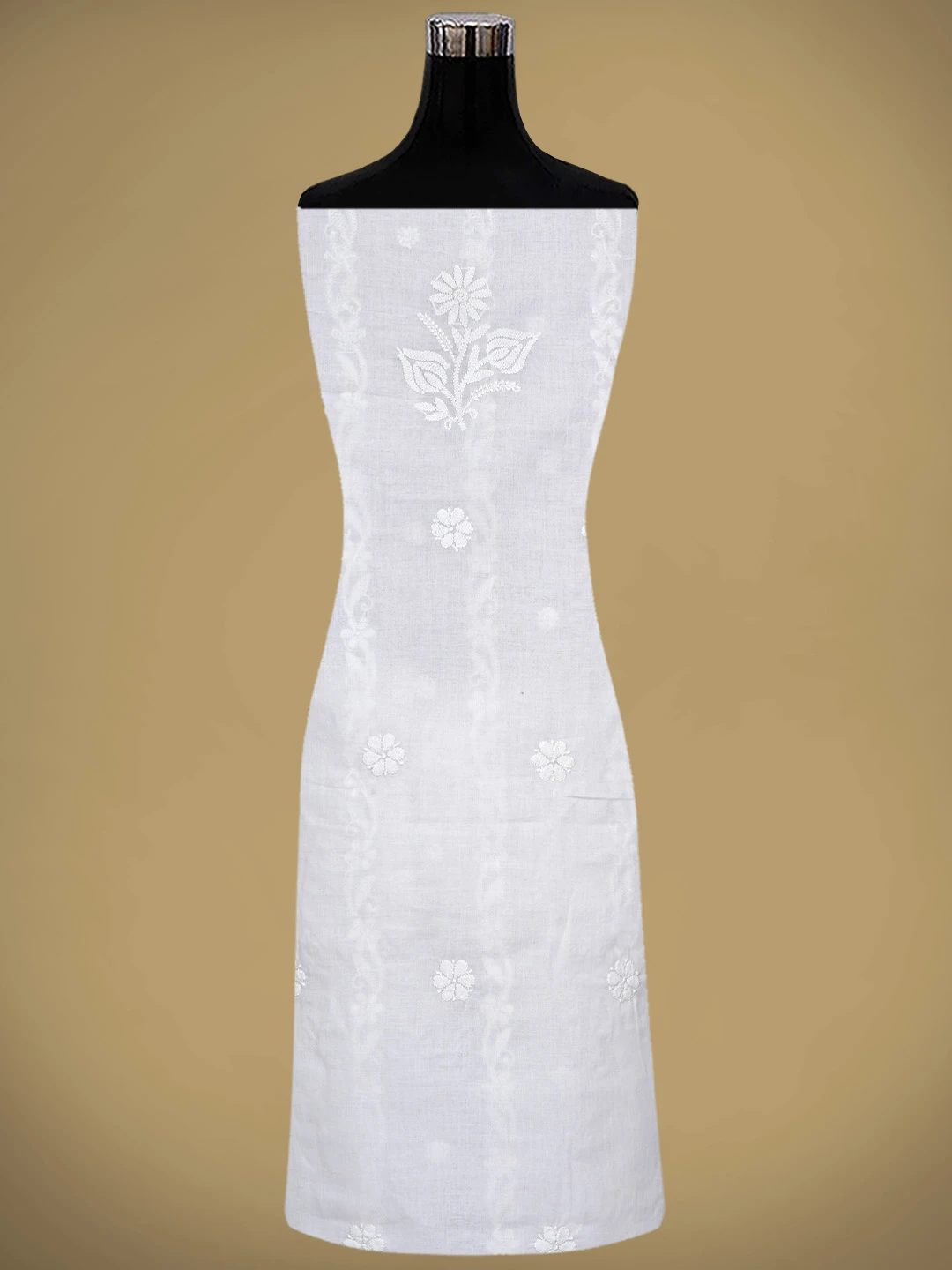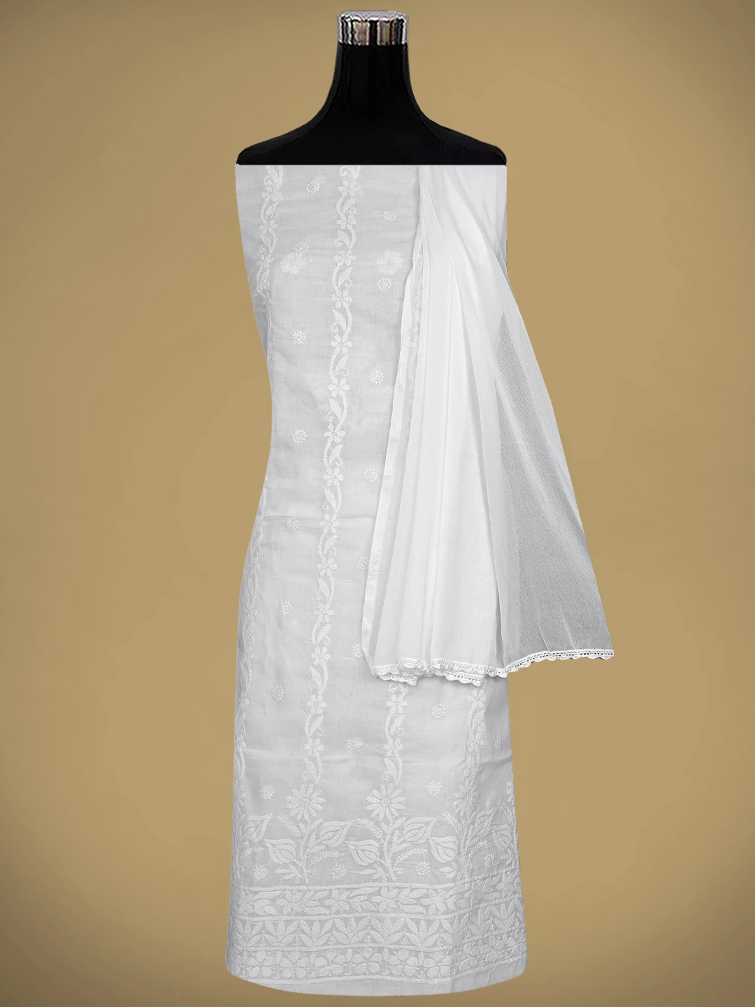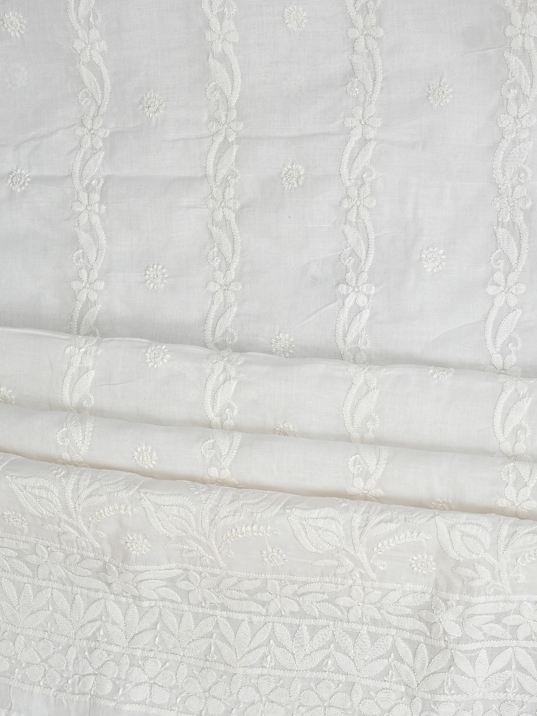 Ada Hand Embroidered White Cotton Lucknowi Chikankari Unstitched Suit Piece 01A881446