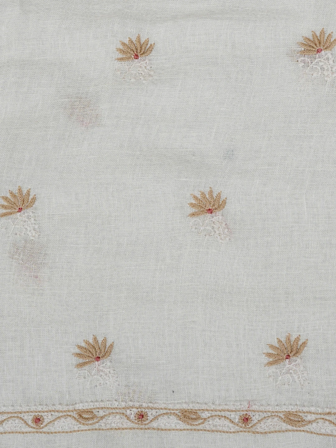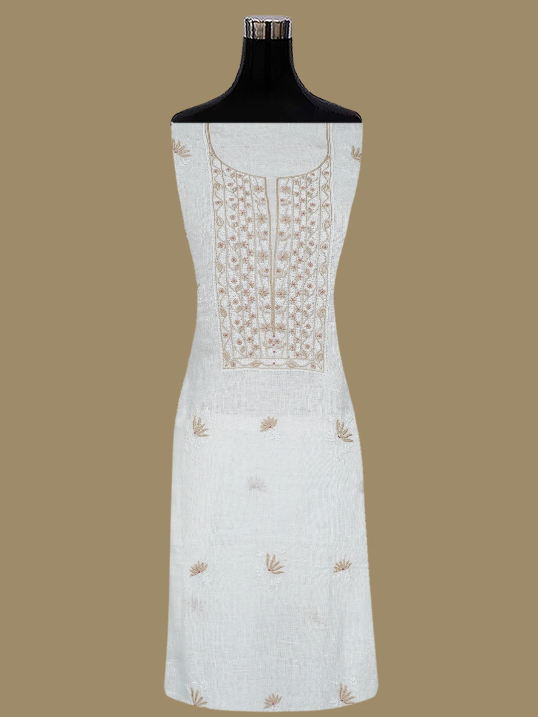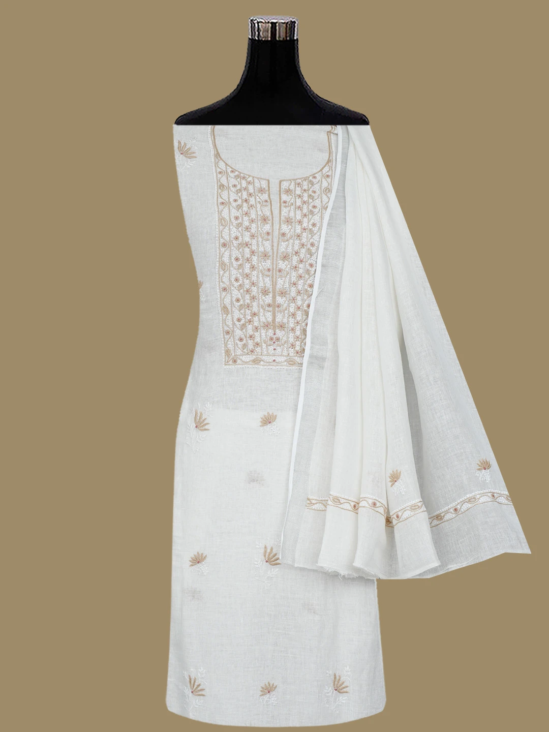 Ada Hand Embroidered White Khadi Lucknowi Chikankari Unstitched Kurta Dupatta Set 01A841574