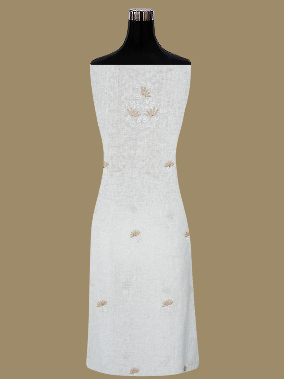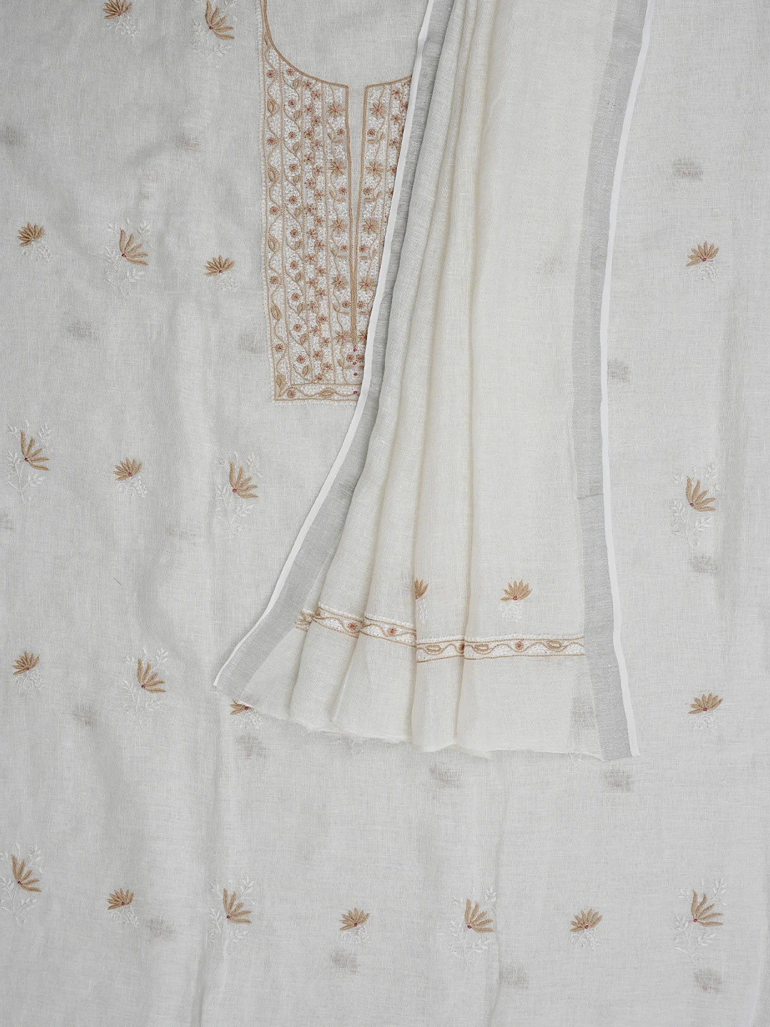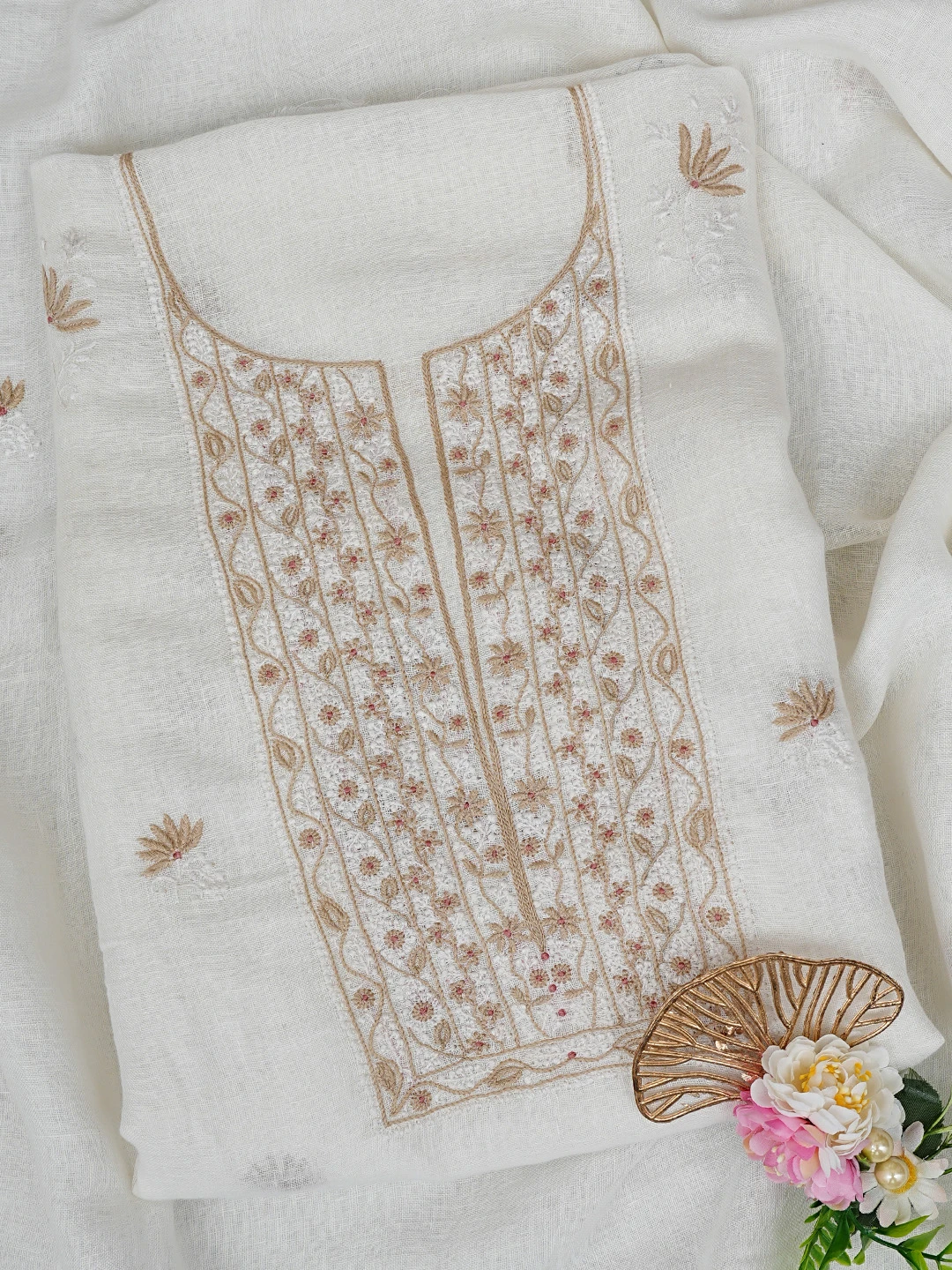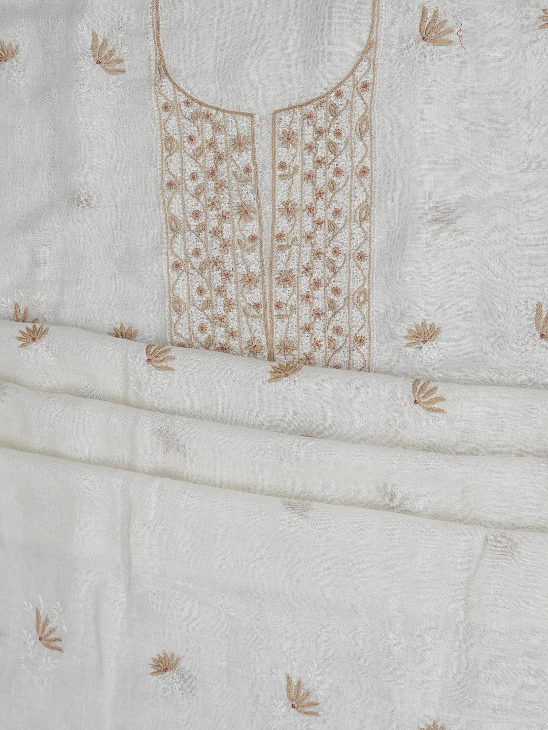 Ada Hand Embroidered White Khadi Lucknowi Chikankari Unstitched Kurta Dupatta Set 01A841574