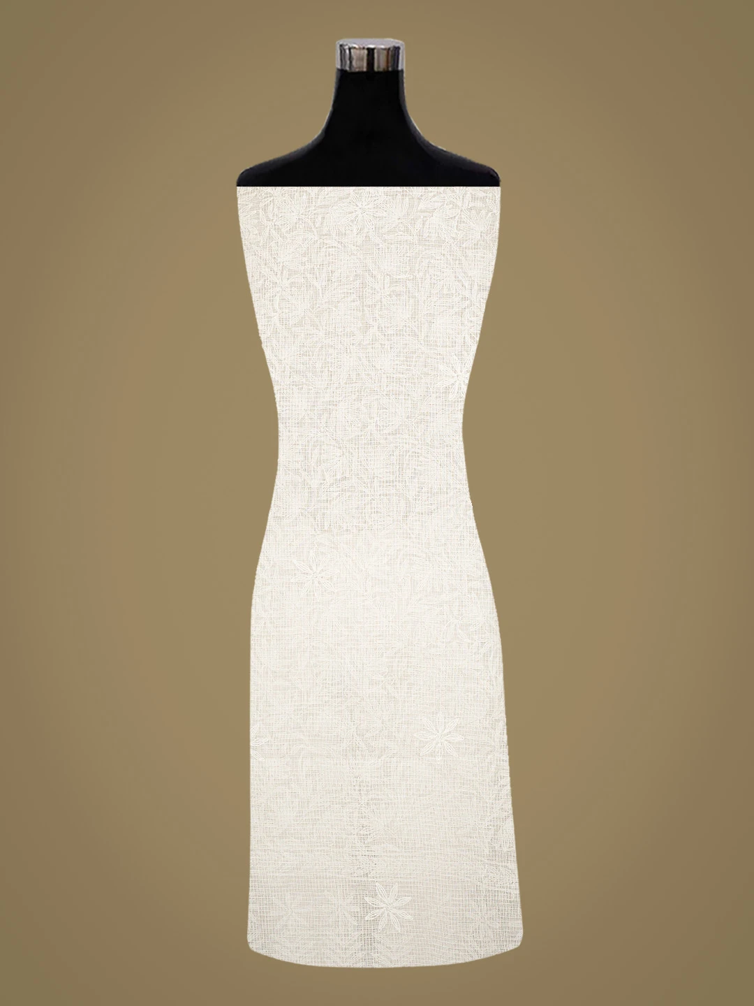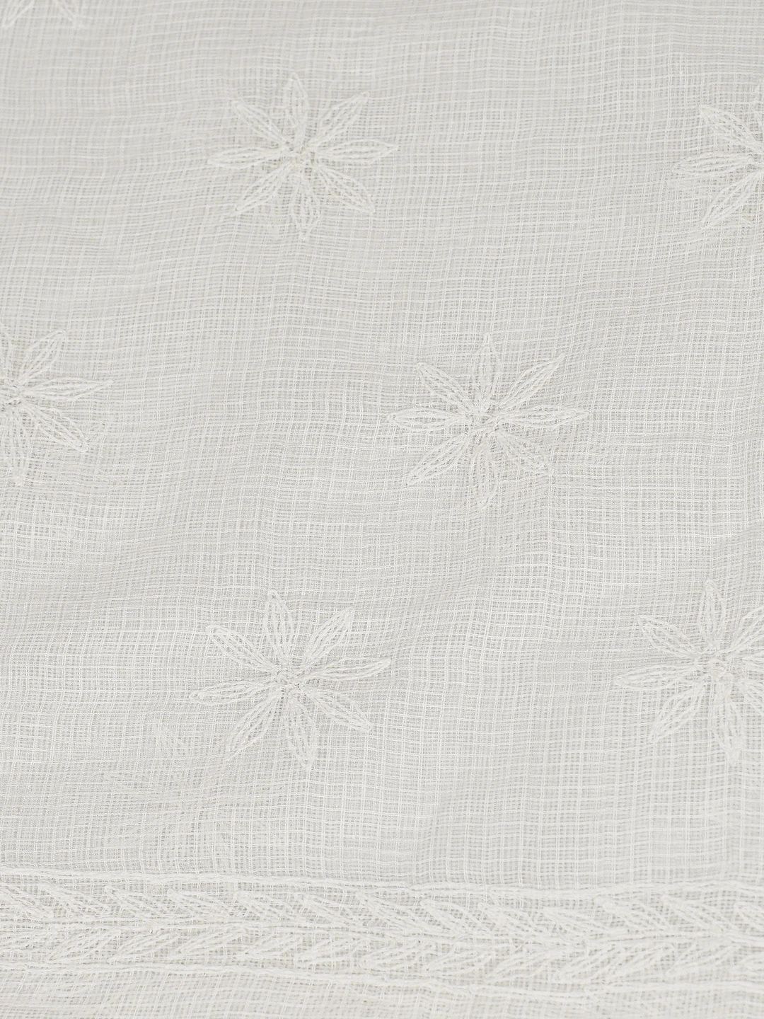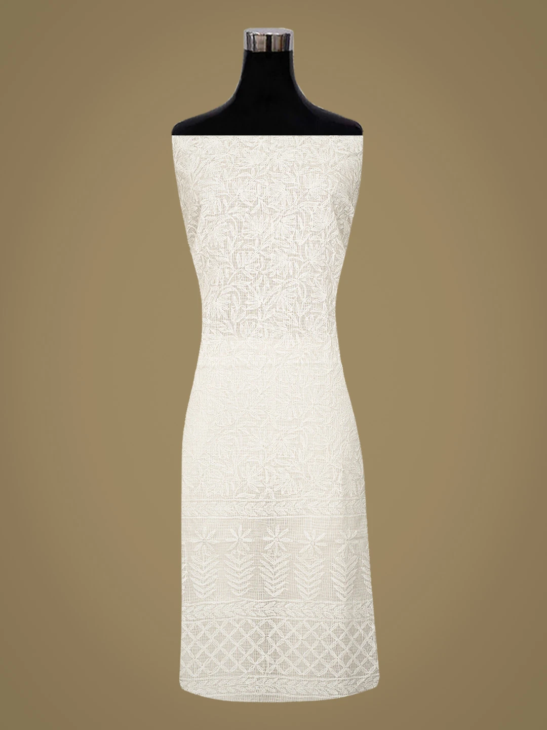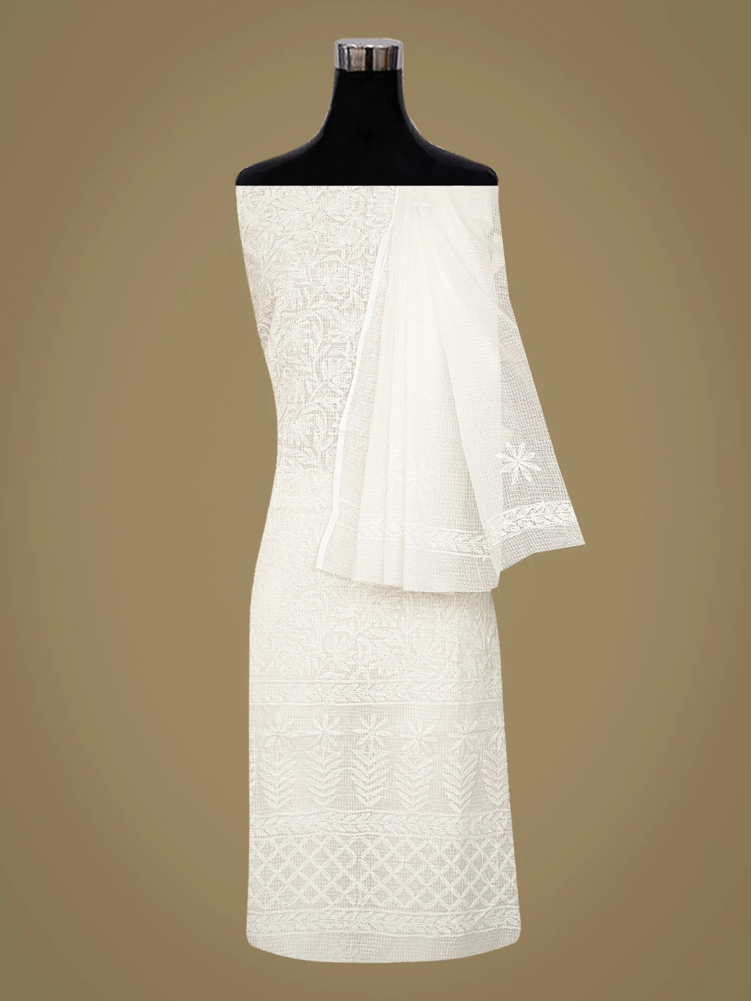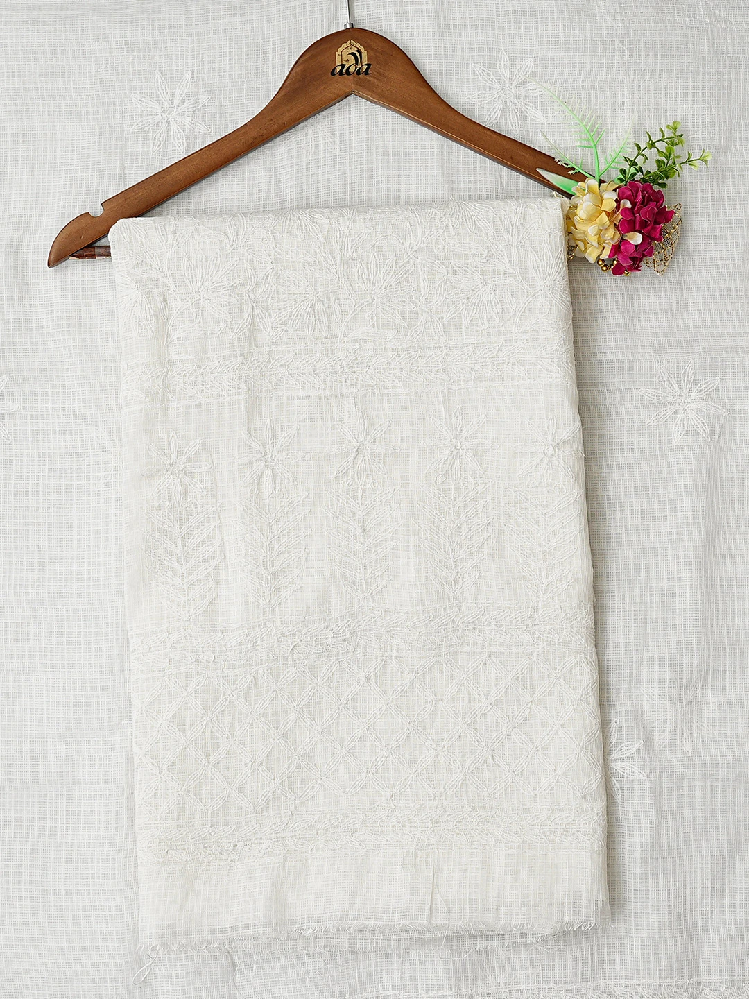 Ada Hand Embroidered White Kota Lucknowi Chikankari Unstitched Kurta Dupatta Set 01A751338