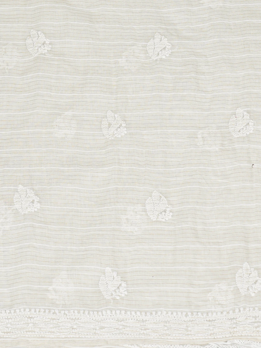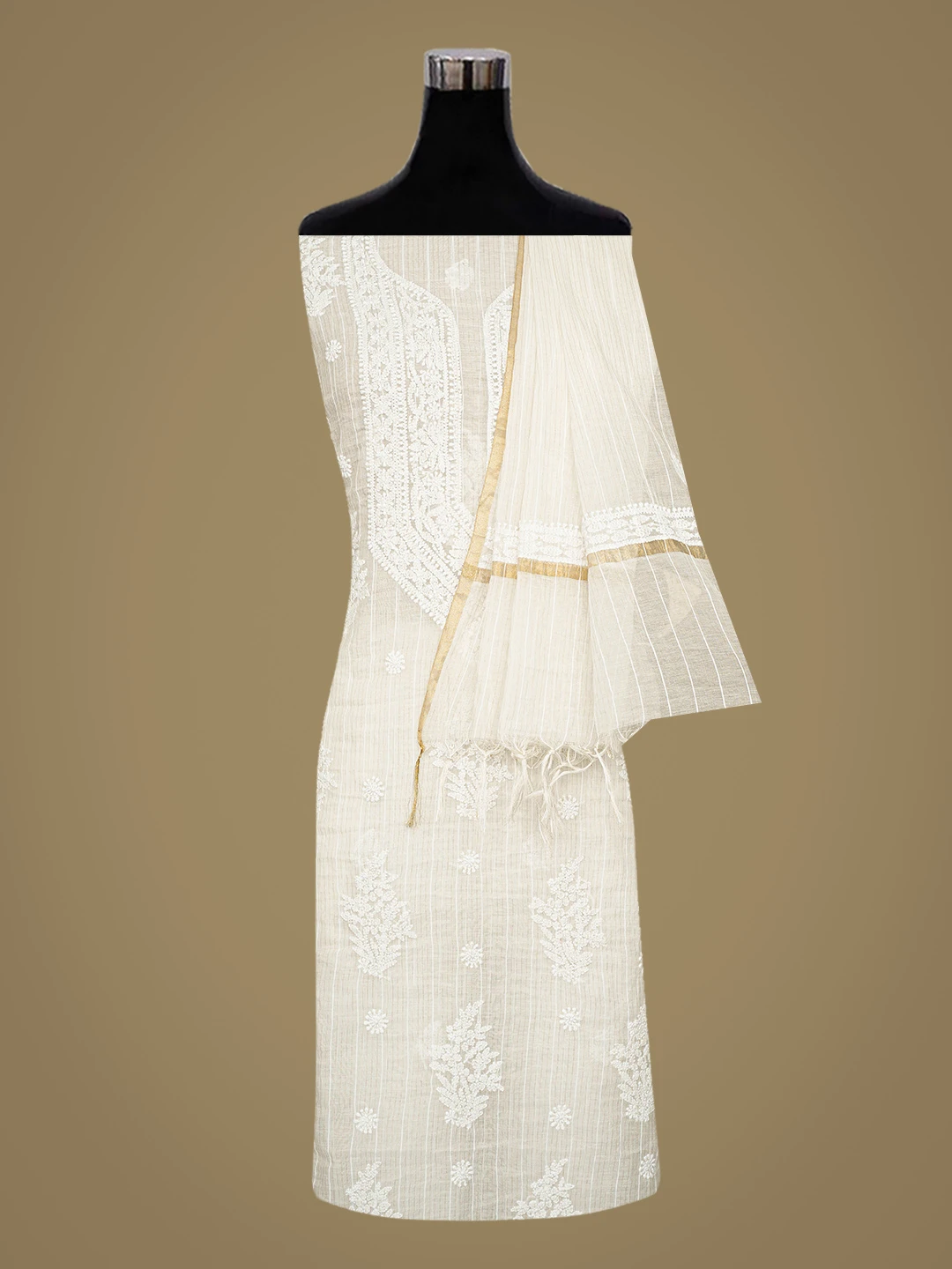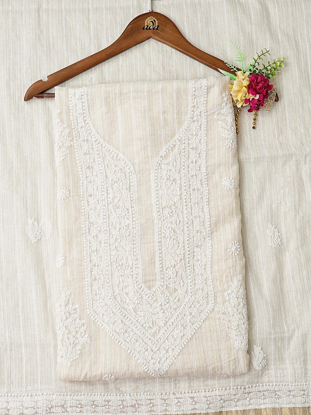 Ada Hand Embroidered White Kota Lucknowi Chikankari Unstitched Kurta Dupatta Set 01A850104