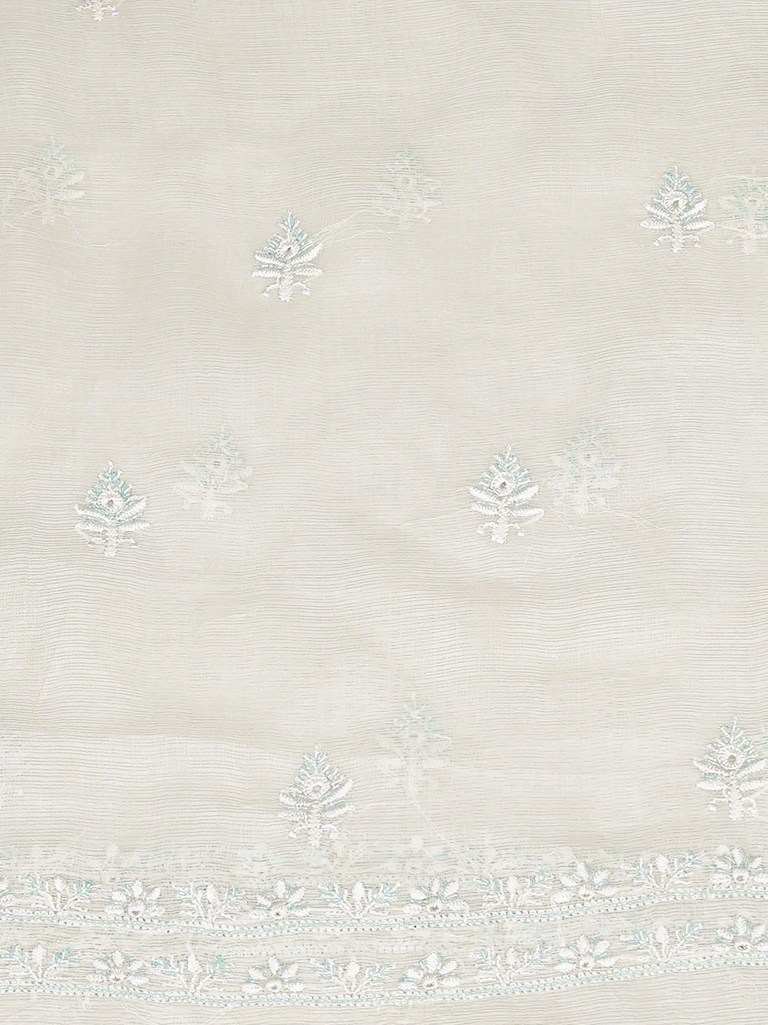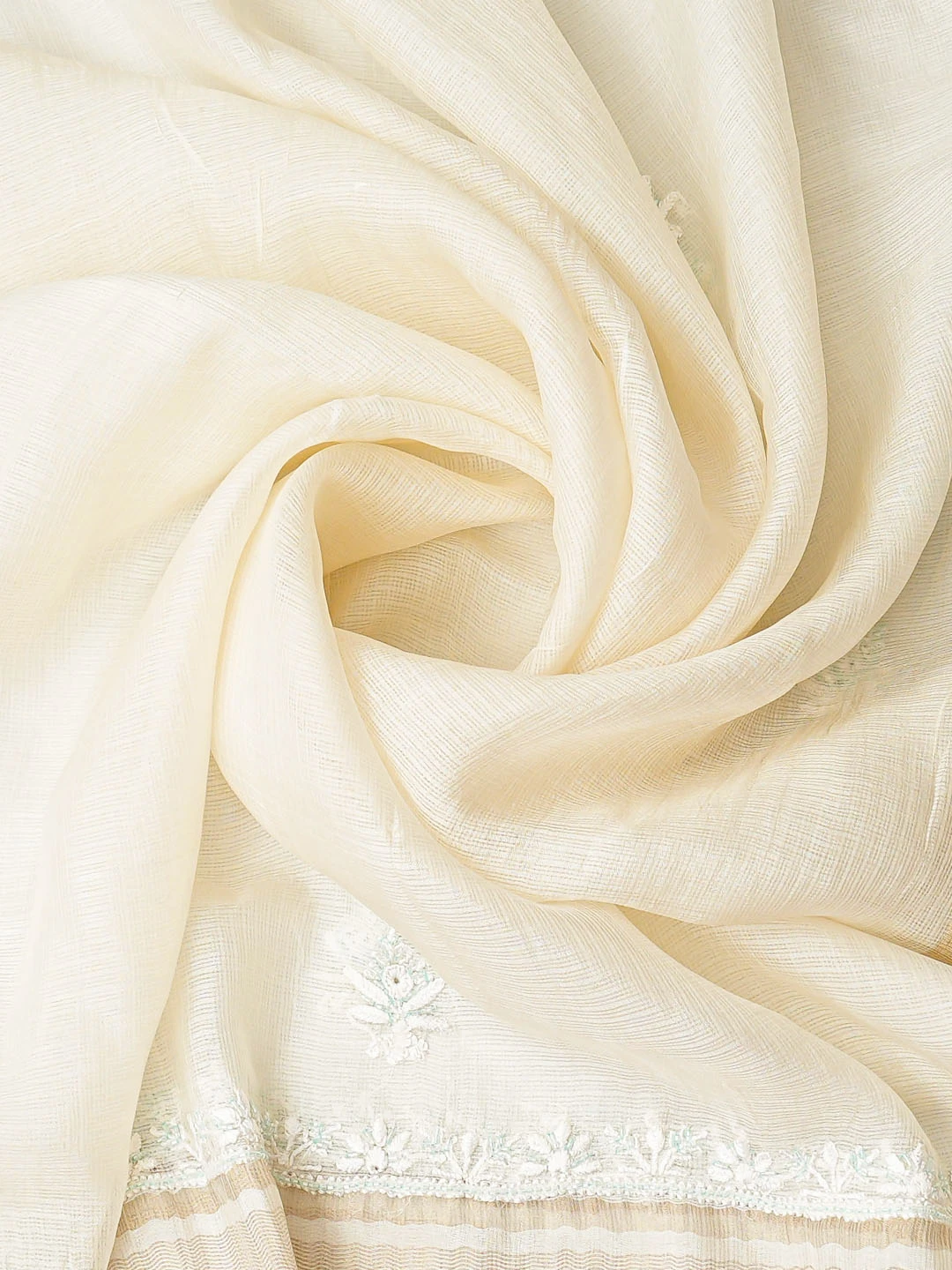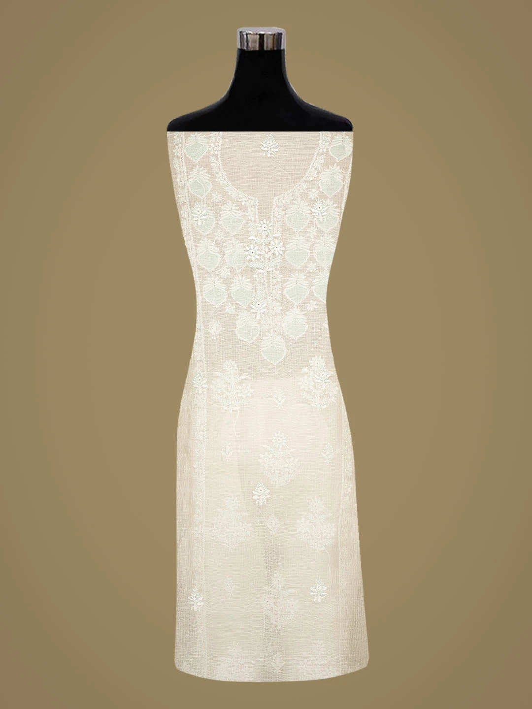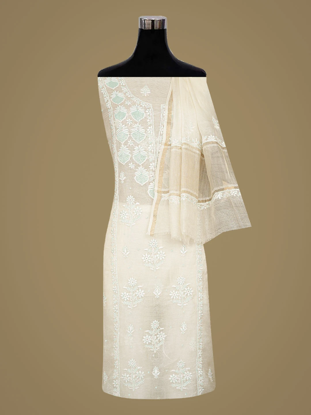 Ada Hand Embroidered White Kota Silk Lucknowi Chikankari Unstitched Kurta Dupatta Set With Cutdana Work 01A833076