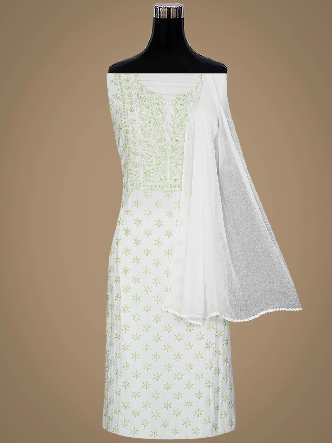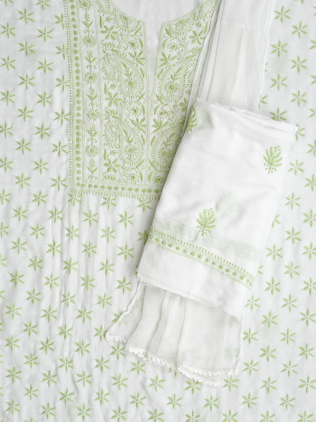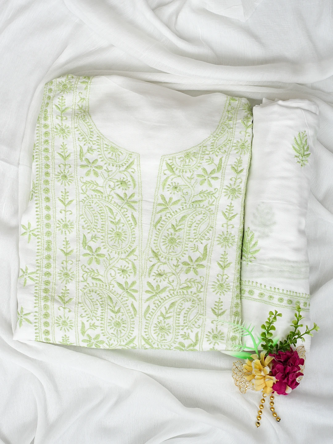Ada Hand Embroidered White Modal Lucknowi Chikankari Unstitched Suit Piece 01A700561