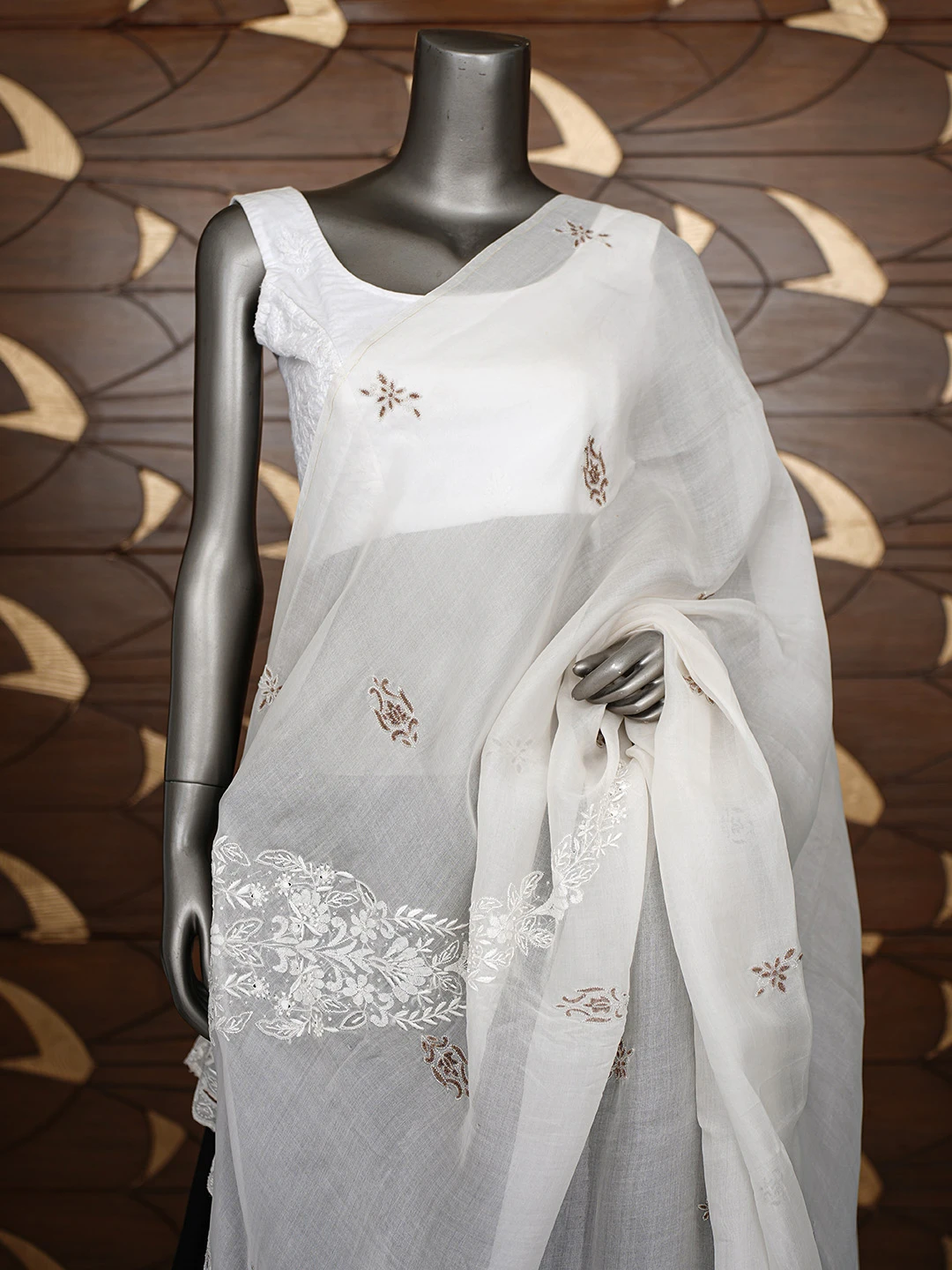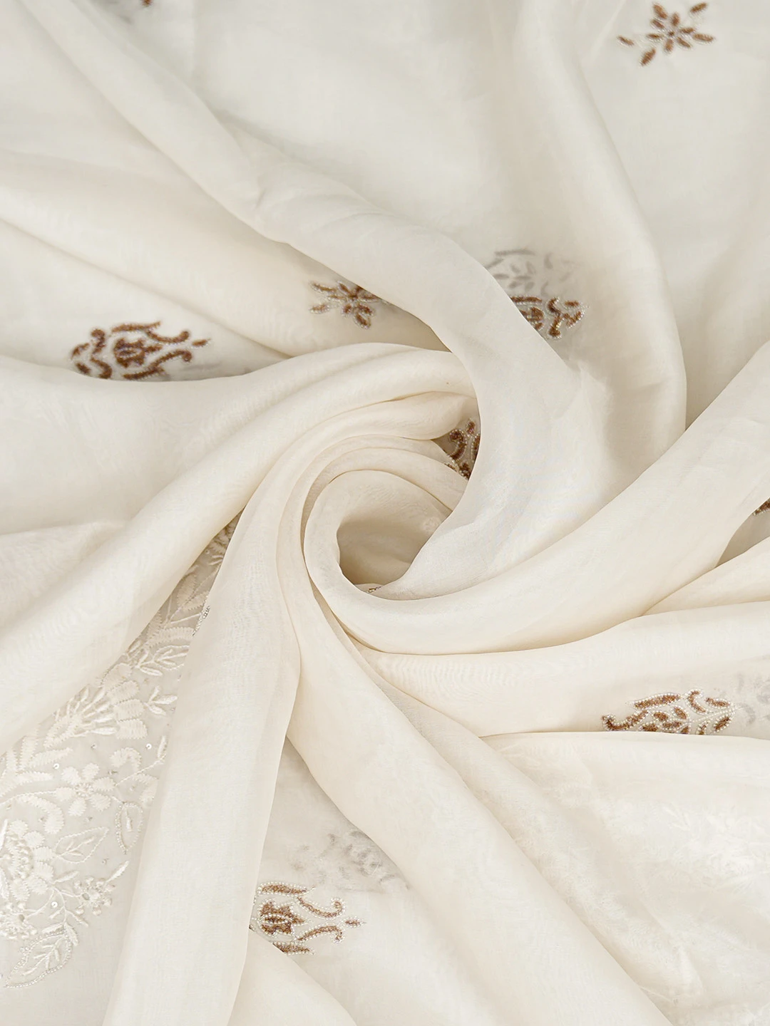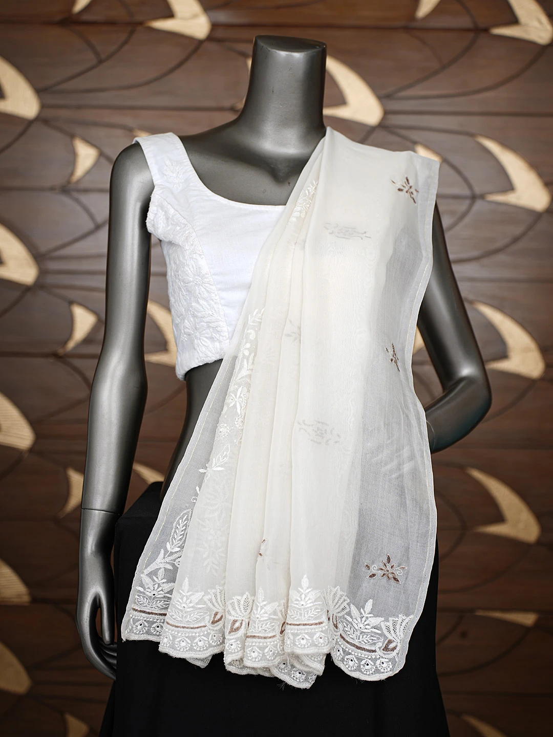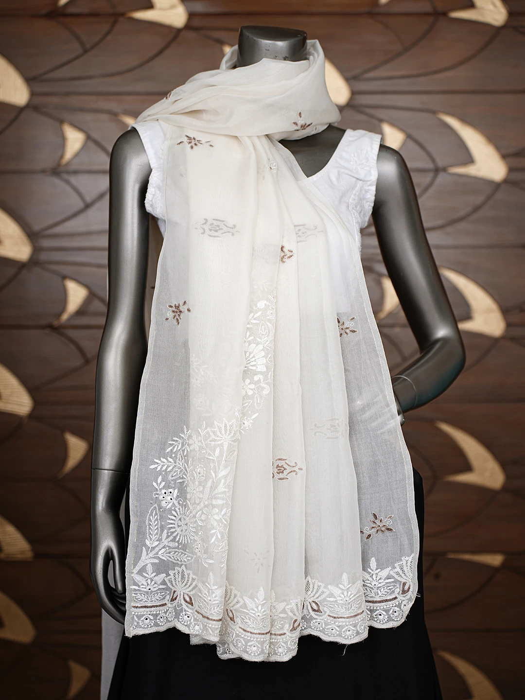 Ada Hand Embroidered White Organza Lucknowi Chikankari Dupatta With Sequinned Work 01A761529
