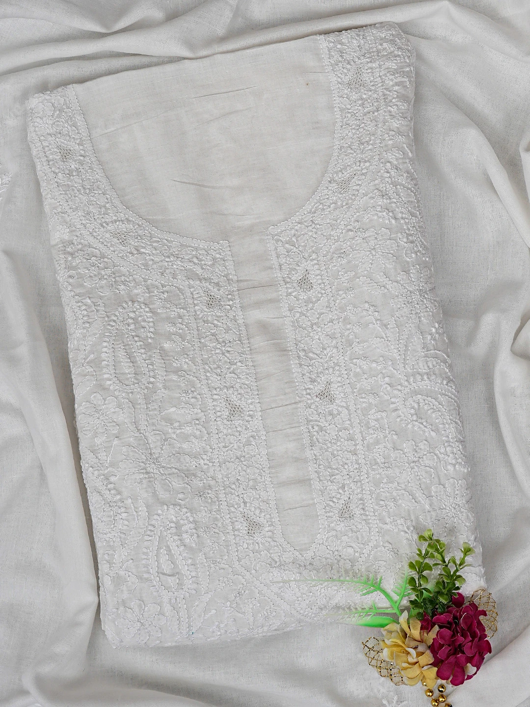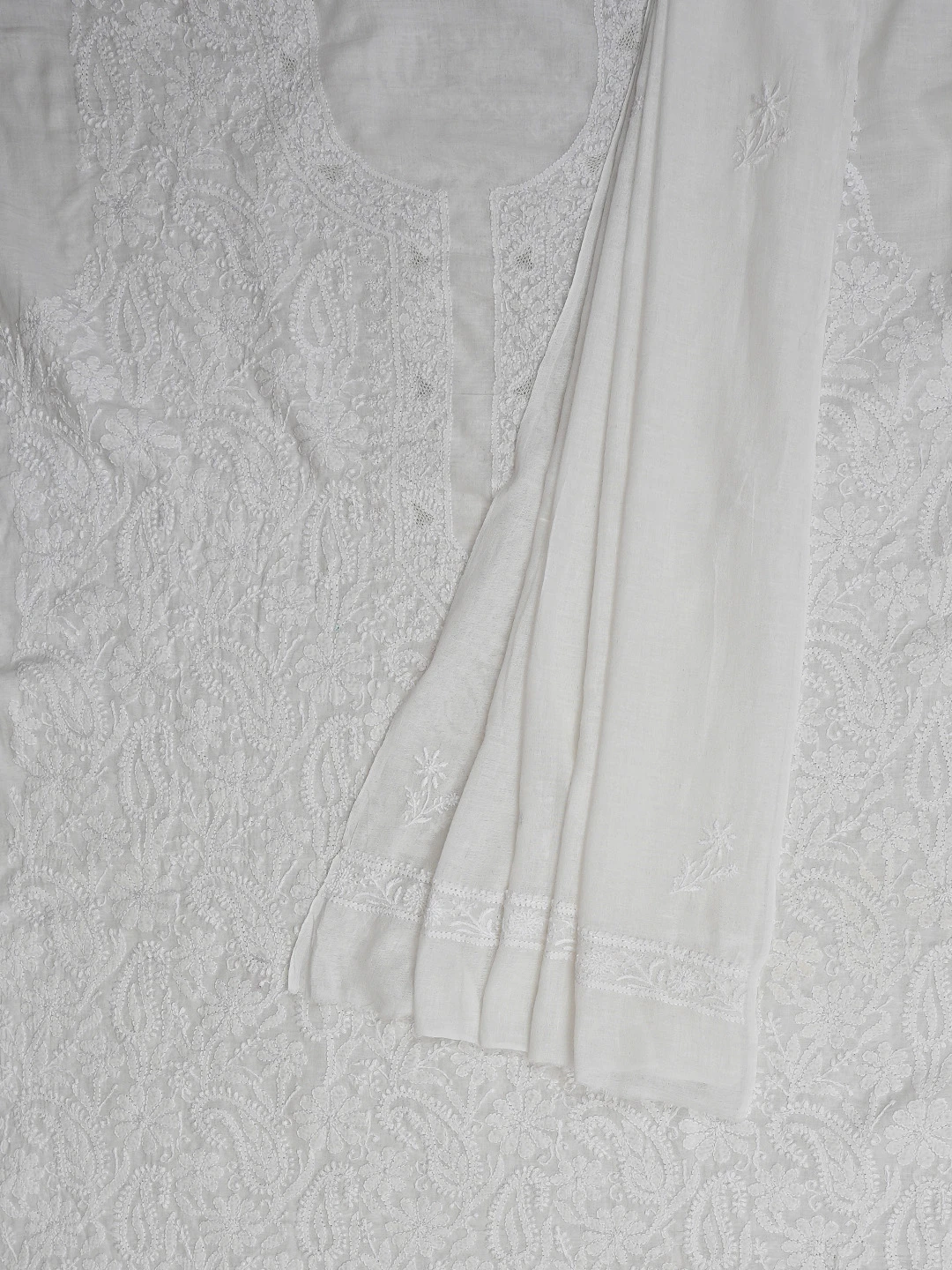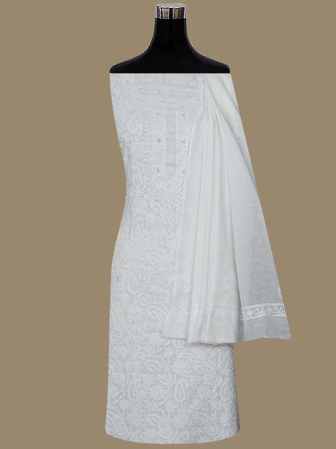 Ada Hand Embroidered White Pure Cotton Lucknowi Chikankari Unstitched Kurta Dupatta Set 01A858197